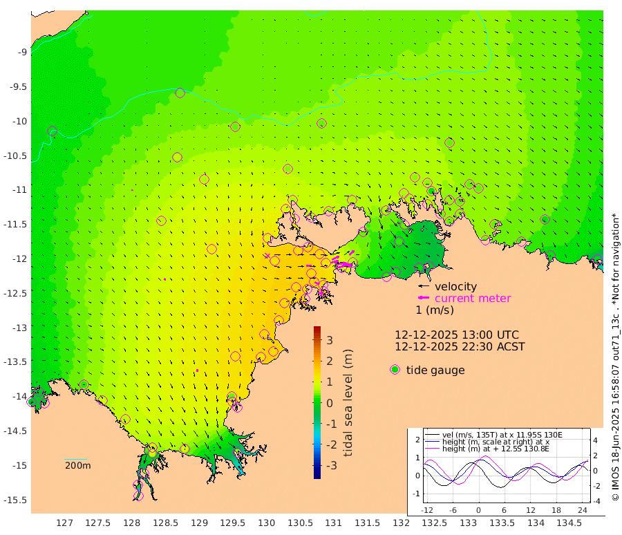 134cm/s 78T +4cm/s rms + 6cm/s 51T. Darwin_C1 52m 85cm/s 92T +4cm/s rms + 7cm/s -161T. Darwin_CW1 22m 74cm/s 74T +4cm/s rms + 8cm/s 61T. Darwin_CW2 34m 62cm/s 49T +3cm/s rms + 9cm/s 98T. Darwin_CW3 22m 105cm/s 89T +5cm/s rms + 7cm/s 88T. Darwin_C3 56m 72cm/s 65T +2cm/s rms + 9cm/s -126T. Darwin_CTbW 22m 0cm/s 18T +9cm/s rms + 2cm/s -110T. NWSLYN 196m 47cm/s 88T +1cm/s rms + 1cm/s -47T. DARBGF 30m 2cm/s 74T +7cm/s rms + 2cm/s -137T. ITFTIS 464m 10cm/s 173T +9cm/s rms + 1cm/s 74T. ITFMHB 146m 22cm/s 166T +4cm/s rms + 1cm/s -134T. ITFJBG 61m 19cm/s 143T +6cm/s rms + 4cm/s 121T. ITFFTB 108m 45cm/s 115T +4cm/s rms + 3cm/s 80T. NRSDAR 19m -25cm Carronade Island -32cm Guy Point -23cm Napier Broome Bay 33cm Lesueur Island 70cm Reveley Island 86cm Rocky Island 86cm Cape Domett 80cm Lacrosse Island 71cm Adolphus Island -5cm Pender Point -30cm Wyndham 68cm The Boxers 75cm Unnamed Shoal 36cm Loxton Shoal 99cm Pelican Island 65cm Calder Shoal 42cm Evans Shoal 61cm Quoin Island 134cm Port Keats 117cm Jones Point 45cm Catfish Island 125cm Cape Scott Offshore 134cm Cape Ford 140cm Anson Bay 54cm Goodrich Bank 136cm Peron Island North 134cm Point Jenny 135cm Native Point 144cm Fish Reef 142cm Tapa Bay 106cm Point Fawcett (Offshore) 145cm Burge Point 144cm Munkunuwa 133cm Beagle A 143cm Parsons Bank 146cm Fenton Patches 43cm Lynedoch Bank 130cm Hancox Shoal Area 146cm Nightcliff 151cm Darwin 147cm Charles Point Patches 87cm Glyde Point 30cm Chambers Bay 16cm Point Stuart 60cm Cape Hotham 30cm Christine Reef 11cm West Alligator Head -14cm East Field Island 41cm Two Hills Bay 114cm Newby Shoal 34cm Camp Point 148cm Medina Inlet South 104cm South Barlow Point 84cm St. Asaph Bay 57cm Cape Van Dieman 65cm Snake Bay 56cm Cache Point 17cm Echo Shoal 57cm Point Jahleel (Off) 62cm Cape Don 56cm Port Essington 61cm Smith Point - West 54cm NW Peacock Island 51cm North Of Jones Shoal 18cm Peacock Island 40cm Point David 58cm D'urville Point 40cm Money Shoal 38cm Copeland Island 55cm Cape Cockburn 46cm One Tree Point 38cm Hogmany Shoal 45cm New Year Island - West 44cm Grant Island 40cm Aurari Bay 33cm Cuthbert Point 41cm North Goulburn Island 15cm Paxie Shoal 15cm Entrance Island -11cm Yabooma Island