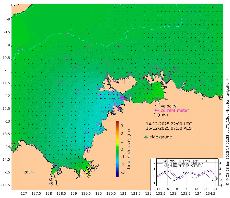 95cm/s -101T +4cm/s rms + 6cm/s 51T. Darwin_C1 52m 63cm/s -90T +4cm/s rms + 7cm/s -161T. Darwin_CW1 22m 66cm/s -106T +4cm/s rms + 8cm/s 61T. Darwin_CW2 34m 35cm/s -131T +3cm/s rms + 9cm/s 98T. Darwin_CW3 22m 97cm/s -91T +5cm/s rms + 7cm/s 88T. Darwin_C3 56m 61cm/s -115T +2cm/s rms + 9cm/s -126T. Darwin_CTbW 22m 2cm/s -118T +9cm/s rms + 2cm/s -110T. NWSLYN 196m 43cm/s -93T +1cm/s rms + 1cm/s -47T. DARBGF 30m 0cm/s -59T +7cm/s rms + 2cm/s -137T. ITFTIS 464m 11cm/s -7T +9cm/s rms + 1cm/s 74T. ITFMHB 146m 21cm/s -16T +4cm/s rms + 1cm/s -134T. ITFJBG 61m 18cm/s -39T +6cm/s rms + 4cm/s 121T. ITFFTB 108m 36cm/s -63T +4cm/s rms + 3cm/s 80T. NRSDAR 19m -11cm Carronade Island -8cm Guy Point -8cm Napier Broome Bay -63cm Lesueur Island -88cm Reveley Island -45cm Rocky Island -108cm Cape Domett -113cm Lacrosse Island -95cm Adolphus Island -28cm Pender Point -21cm Wyndham -65cm The Boxers -69cm Unnamed Shoal -29cm Loxton Shoal -122cm Pelican Island -66cm Calder Shoal -40cm Evans Shoal -103cm Quoin Island -137cm Port Keats -127cm Jones Point -139cm Catfish Island -140cm Cape Scott Offshore -124cm Cape Ford -153cm Anson Bay -46cm Goodrich Bank -146cm Peron Island North -140cm Point Jenny -137cm Native Point -151cm Fish Reef -146cm Tapa Bay -113cm Point Fawcett (Offshore) -148cm Burge Point -136cm Munkunuwa -135cm Beagle A -142cm Parsons Bank -148cm Fenton Patches -36cm Lynedoch Bank -138cm Hancox Shoal Area -158cm Nightcliff -153cm Darwin -149cm Charles Point Patches -105cm Glyde Point -75cm Chambers Bay -60cm Point Stuart -90cm Cape Hotham -66cm Christine Reef -60cm West Alligator Head -42cm East Field Island -74cm Two Hills Bay -112cm Newby Shoal -61cm Camp Point -147cm Medina Inlet South -94cm South Barlow Point -81cm St. Asaph Bay -50cm Cape Van Dieman -55cm Snake Bay -56cm Cache Point -24cm Echo Shoal -59cm Point Jahleel (Off) -73cm Cape Don -58cm Port Essington -64cm Smith Point - West -57cm NW Peacock Island -60cm North Of Jones Shoal -21cm Peacock Island -52cm Point David -62cm D'urville Point -48cm Money Shoal -51cm Copeland Island -77cm Cape Cockburn -59cm One Tree Point -58cm Hogmany Shoal -57cm New Year Island - West -55cm Grant Island -60cm Aurari Bay -56cm Cuthbert Point -61cm North Goulburn Island -49cm Paxie Shoal -55cm Entrance Island -52cm Yabooma Island