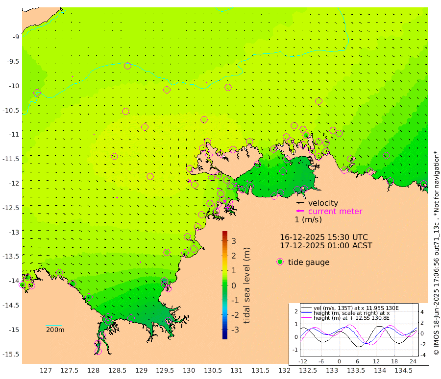 8cm/s 74T +4cm/s rms + 6cm/s 51T. Darwin_C1 52m 14cm/s -84T +4cm/s rms + 7cm/s -161T. Darwin_CW1 22m 16cm/s 75T +4cm/s rms + 8cm/s 61T. Darwin_CW2 34m 14cm/s -144T +3cm/s rms + 9cm/s 98T. Darwin_CW3 22m 11cm/s 86T +5cm/s rms + 7cm/s 88T. Darwin_C3 56m 23cm/s 63T +2cm/s rms + 9cm/s -126T. Darwin_CTbW 22m 5cm/s 128T +9cm/s rms + 2cm/s -110T. NWSLYN 196m 30cm/s 93T +1cm/s rms + 1cm/s -47T. DARBGF 30m 7cm/s 32T +7cm/s rms + 2cm/s -137T. ITFTIS 464m 7cm/s 74T +9cm/s rms + 1cm/s 74T. ITFMHB 146m 15cm/s 135T +4cm/s rms + 1cm/s -134T. ITFJBG 61m 17cm/s 113T +6cm/s rms + 4cm/s 121T. ITFFTB 108m 29cm/s 125T +4cm/s rms + 3cm/s 80T. NRSDAR 19m 31cm Carronade Island 26cm Guy Point 38cm Napier Broome Bay 36cm Lesueur Island 3cm Reveley Island 16cm Rocky Island -14cm Cape Domett -7cm Lacrosse Island -31cm Adolphus Island -64cm Pender Point -67cm Wyndham 70cm The Boxers 81cm Unnamed Shoal 64cm Loxton Shoal -19cm Pelican Island 72cm Calder Shoal 58cm Evans Shoal -62cm Quoin Island 20cm Port Keats 3cm Jones Point -58cm Catfish Island 44cm Cape Scott Offshore 35cm Cape Ford 52cm Anson Bay 66cm Goodrich Bank 52cm Peron Island North 56cm Point Jenny 59cm Native Point 53cm Fish Reef 51cm Tapa Bay 69cm Point Fawcett (Offshore) 50cm Burge Point 47cm Munkunuwa 66cm Beagle A 46cm Parsons Bank 53cm Fenton Patches 62cm Lynedoch Bank 39cm Hancox Shoal Area 52cm Nightcliff 45cm Darwin 54cm Charles Point Patches 18cm Glyde Point -14cm Chambers Bay -29cm Point Stuart 6cm Cape Hotham -8cm Christine Reef -39cm West Alligator Head -53cm East Field Island 0cm Two Hills Bay 87cm Newby Shoal 3cm Camp Point 55cm Medina Inlet South 76cm South Barlow Point 70cm St. Asaph Bay 68cm Cape Van Dieman 75cm Snake Bay 66cm Cache Point 55cm Echo Shoal 58cm Point Jahleel (Off) 46cm Cape Don 58cm Port Essington 61cm Smith Point - West 61cm NW Peacock Island 65cm North Of Jones Shoal 23cm Peacock Island 52cm Point David 62cm D'urville Point 60cm Money Shoal 48cm Copeland Island 67cm Cape Cockburn 55cm One Tree Point 51cm Hogmany Shoal 58cm New Year Island - West 54cm Grant Island 44cm Aurari Bay 35cm Cuthbert Point 48cm North Goulburn Island 25cm Paxie Shoal 20cm Entrance Island 0cm Yabooma Island