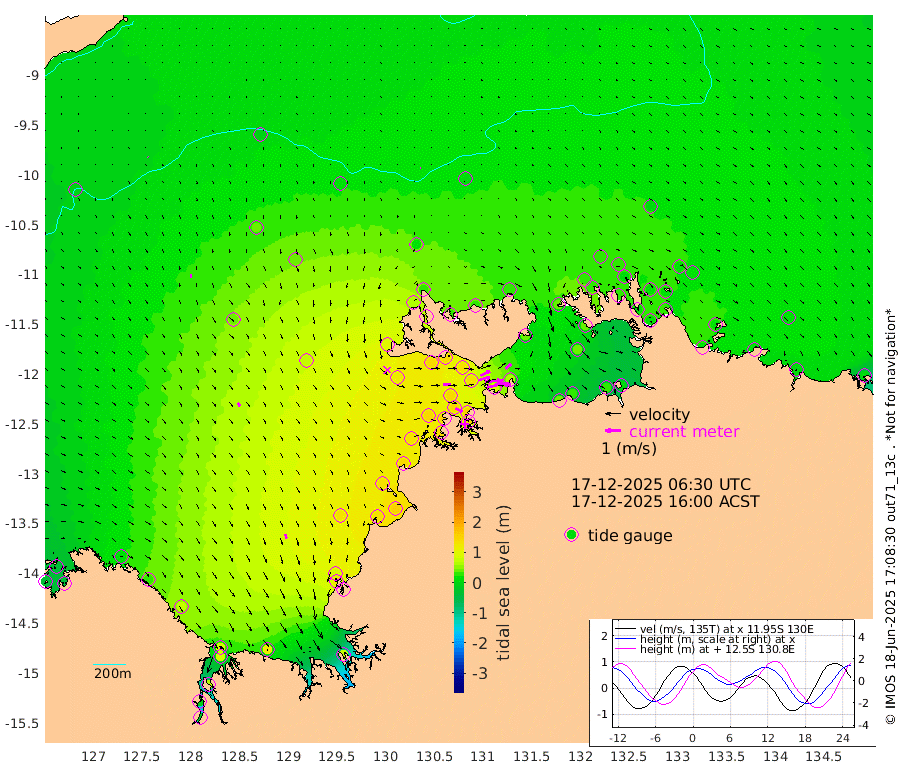117cm/s 78T +4cm/s rms + 6cm/s 51T. Darwin_C1 52m 97cm/s 90T +4cm/s rms + 7cm/s -161T. Darwin_CW1 22m 75cm/s 74T +4cm/s rms + 8cm/s 61T. Darwin_CW2 34m 47cm/s 50T +3cm/s rms + 9cm/s 98T. Darwin_CW3 22m 111cm/s 88T +5cm/s rms + 7cm/s 88T. Darwin_C3 56m 67cm/s 66T +2cm/s rms + 9cm/s -126T. Darwin_CTbW 22m 1cm/s 104T +9cm/s rms + 2cm/s -110T. NWSLYN 196m 51cm/s 88T +1cm/s rms + 1cm/s -47T. DARBGF 30m 4cm/s 166T +7cm/s rms + 2cm/s -137T. ITFTIS 464m 19cm/s 179T +9cm/s rms + 1cm/s 74T. ITFMHB 146m 27cm/s 164T +4cm/s rms + 1cm/s -134T. ITFJBG 61m 25cm/s 146T +6cm/s rms + 4cm/s 121T. ITFFTB 108m 49cm/s 116T +4cm/s rms + 3cm/s 80T. NRSDAR 19m -40cm Carronade Island -38cm Guy Point -45cm Napier Broome Bay 21cm Lesueur Island 71cm Reveley Island 24cm Rocky Island 84cm Cape Domett 89cm Lacrosse Island 57cm Adolphus Island -10cm Pender Point -32cm Wyndham 35cm The Boxers 42cm Unnamed Shoal -2cm Loxton Shoal 115cm Pelican Island 37cm Calder Shoal 14cm Evans Shoal 70cm Quoin Island 121cm Port Keats 123cm Jones Point 84cm Catfish Island 135cm Cape Scott Offshore 132cm Cape Ford 150cm Anson Bay 22cm Goodrich Bank 132cm Peron Island North 136cm Point Jenny 133cm Native Point 140cm Fish Reef 147cm Tapa Bay 98cm Point Fawcett (Offshore) 135cm Burge Point 141cm Munkunuwa 120cm Beagle A 132cm Parsons Bank 137cm Fenton Patches 7cm Lynedoch Bank 132cm Hancox Shoal Area 150cm Nightcliff 141cm Darwin 139cm Charles Point Patches 84cm Glyde Point 43cm Chambers Bay 25cm Point Stuart 63cm Cape Hotham 35cm Christine Reef 25cm West Alligator Head 0cm East Field Island 39cm Two Hills Bay 70cm Newby Shoal 34cm Camp Point 139cm Medina Inlet South 75cm South Barlow Point 65cm St. Asaph Bay 27cm Cape Van Dieman 27cm Snake Bay 29cm Cache Point -8cm Echo Shoal 32cm Point Jahleel (Off) 41cm Cape Don 27cm Port Essington 33cm Smith Point - West 23cm NW Peacock Island 25cm North Of Jones Shoal 9cm Peacock Island 18cm Point David 28cm D'urville Point 11cm Money Shoal 18cm Copeland Island 23cm Cape Cockburn 19cm One Tree Point 18cm Hogmany Shoal 16cm New Year Island - West 16cm Grant Island 21cm Aurari Bay 13cm Cuthbert Point 17cm North Goulburn Island 12cm Paxie Shoal 10cm Entrance Island 5cm Yabooma Island