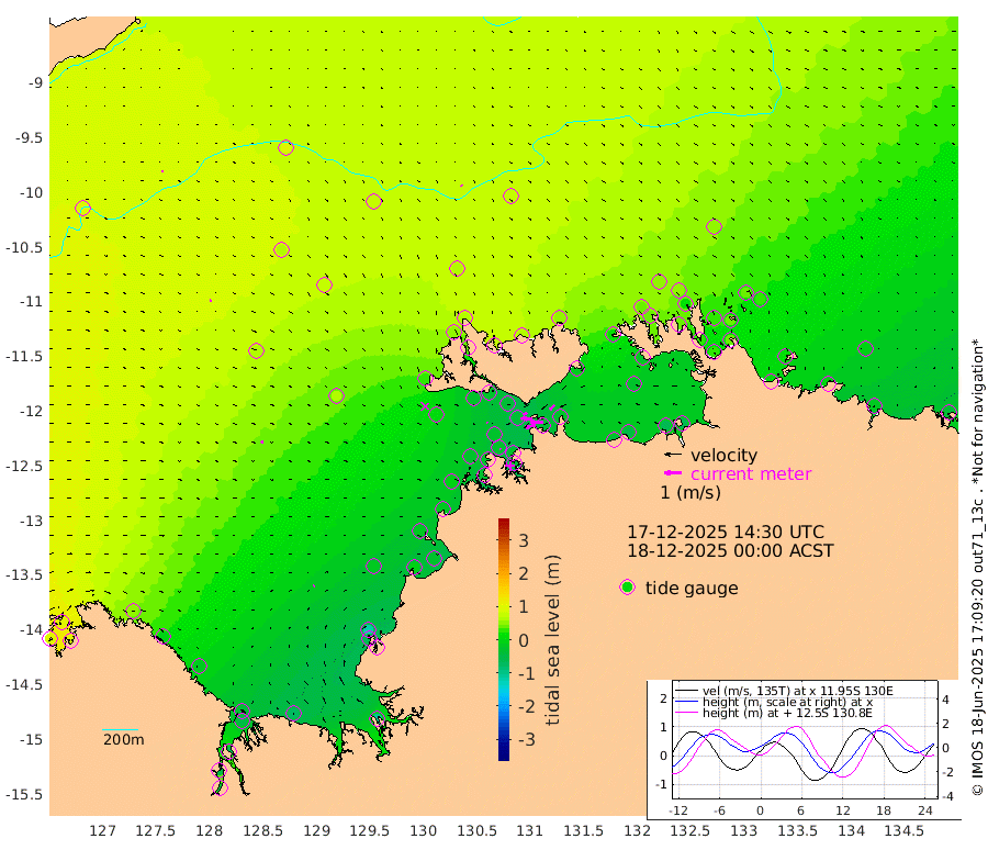 65cm/s -101T +4cm/s rms + 6cm/s 51T. Darwin_C1 52m 75cm/s -91T +4cm/s rms + 7cm/s -161T. Darwin_CW1 22m 26cm/s -106T +4cm/s rms + 8cm/s 61T. Darwin_CW2 34m 36cm/s -135T +3cm/s rms + 9cm/s 98T. Darwin_CW3 22m 52cm/s -91T +5cm/s rms + 7cm/s 88T. Darwin_C3 56m 27cm/s -115T +2cm/s rms + 9cm/s -126T. Darwin_CTbW 22m 6cm/s 133T +9cm/s rms + 2cm/s -110T. NWSLYN 196m 5cm/s 118T +1cm/s rms + 1cm/s -47T. DARBGF 30m 8cm/s 39T +7cm/s rms + 2cm/s -137T. ITFTIS 464m 9cm/s 60T +9cm/s rms + 1cm/s 74T. ITFMHB 146m 7cm/s 50T +4cm/s rms + 1cm/s -134T. ITFJBG 61m 12cm/s 84T +6cm/s rms + 4cm/s 121T. ITFFTB 108m 7cm/s 159T +4cm/s rms + 3cm/s 80T. NRSDAR 19m 94cm Carronade Island 94cm Guy Point 99cm Napier Broome Bay 54cm Lesueur Island -16cm Reveley Island -2cm Rocky Island -53cm Cape Domett -42cm Lacrosse Island -63cm Adolphus Island -46cm Pender Point -37cm Wyndham 67cm The Boxers 64cm Unnamed Shoal 90cm Loxton Shoal -78cm Pelican Island 76cm Calder Shoal 72cm Evans Shoal -105cm Quoin Island -50cm Port Keats -67cm Jones Point -116cm Catfish Island -22cm Cape Scott Offshore -4cm Cape Ford -31cm Anson Bay 67cm Goodrich Bank -17cm Peron Island North -12cm Point Jenny -9cm Native Point -23cm Fish Reef -24cm Tapa Bay 31cm Point Fawcett (Offshore) -26cm Burge Point -28cm Munkunuwa 7cm Beagle A -34cm Parsons Bank -24cm Fenton Patches 69cm Lynedoch Bank -37cm Hancox Shoal Area -32cm Nightcliff -42cm Darwin -26cm Charles Point Patches -35cm Glyde Point -40cm Chambers Bay -48cm Point Stuart -32cm Cape Hotham -28cm Christine Reef -57cm West Alligator Head -57cm East Field Island -26cm Two Hills Bay 57cm Newby Shoal -20cm Camp Point -23cm Medina Inlet South 42cm South Barlow Point 51cm St. Asaph Bay 66cm Cape Van Dieman 69cm Snake Bay 64cm Cache Point 92cm Echo Shoal 50cm Point Jahleel (Off) 21cm Cape Don 43cm Port Essington 44cm Smith Point - West 47cm NW Peacock Island 55cm North Of Jones Shoal 18cm Peacock Island 31cm Point David 43cm D'urville Point 48cm Money Shoal 26cm Copeland Island 37cm Cape Cockburn 34cm One Tree Point 33cm Hogmany Shoal 38cm New Year Island - West 34cm Grant Island 11cm Aurari Bay 1cm Cuthbert Point 20cm North Goulburn Island -6cm Paxie Shoal -14cm Entrance Island -38cm Yabooma Island
