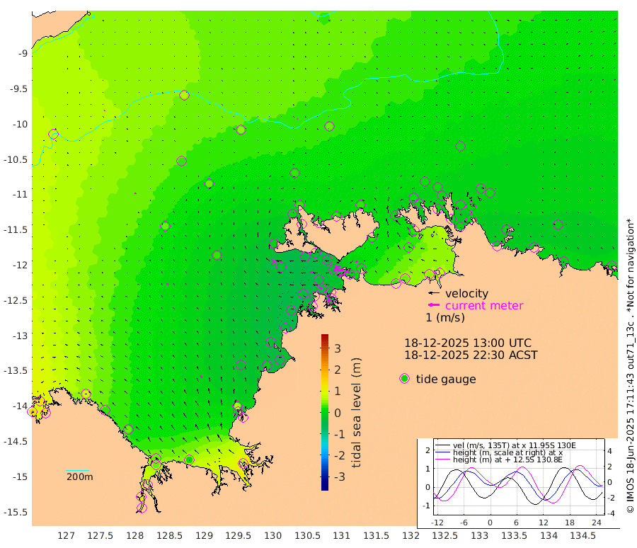 74cm/s -103T +4cm/s rms + 6cm/s 51T. Darwin_C1 52m 52cm/s -88T +4cm/s rms + 7cm/s -161T. Darwin_CW1 22m 49cm/s -110T +4cm/s rms + 8cm/s 61T. Darwin_CW2 34m 20cm/s -116T +3cm/s rms + 9cm/s 98T. Darwin_CW3 22m 49cm/s -93T +5cm/s rms + 7cm/s 88T. Darwin_C3 56m 50cm/s -115T +2cm/s rms + 9cm/s -126T. Darwin_CTbW 22m 3cm/s 99T +9cm/s rms + 2cm/s -110T. NWSLYN 196m 35cm/s -88T +1cm/s rms + 1cm/s -47T. DARBGF 30m 5cm/s 10T +7cm/s rms + 2cm/s -137T. ITFTIS 464m 10cm/s 14T +9cm/s rms + 1cm/s 74T. ITFMHB 146m 26cm/s -22T +4cm/s rms + 1cm/s -134T. ITFJBG 61m 19cm/s -27T +6cm/s rms + 4cm/s 121T. ITFFTB 108m 32cm/s -62T +4cm/s rms + 3cm/s 80T. NRSDAR 19m 132cm Carronade Island 137cm Guy Point 136cm Napier Broome Bay 95cm Lesueur Island 43cm Reveley Island 30cm Rocky Island 41cm Cape Domett 43cm Lacrosse Island 59cm Adolphus Island 121cm Pender Point 145cm Wyndham 43cm The Boxers 23cm Unnamed Shoal 67cm Loxton Shoal 6cm Pelican Island 44cm Calder Shoal 45cm Evans Shoal 59cm Quoin Island -12cm Port Keats -18cm Jones Point 61cm Catfish Island -26cm Cape Scott Offshore -1cm Cape Ford -46cm Anson Bay 29cm Goodrich Bank -28cm Peron Island North -37cm Point Jenny -36cm Native Point -39cm Fish Reef -43cm Tapa Bay -7cm Point Fawcett (Offshore) -36cm Burge Point -51cm Munkunuwa -24cm Beagle A -48cm Parsons Bank -38cm Fenton Patches 37cm Lynedoch Bank -41cm Hancox Shoal Area -49cm Nightcliff -42cm Darwin -37cm Charles Point Patches -5cm Glyde Point 31cm Chambers Bay 41cm Point Stuart 12cm Cape Hotham 31cm Christine Reef 47cm West Alligator Head 69cm East Field Island 27cm Two Hills Bay 24cm Newby Shoal 28cm Camp Point -42cm Medina Inlet South -8cm South Barlow Point 7cm St. Asaph Bay 24cm Cape Van Dieman 23cm Snake Bay 28cm Cache Point 78cm Echo Shoal 23cm Point Jahleel (Off) 10cm Cape Don 13cm Port Essington 9cm Smith Point - West 13cm NW Peacock Island 20cm North Of Jones Shoal 5cm Peacock Island 4cm Point David 6cm D'urville Point 16cm Money Shoal 1cm Copeland Island 7cm Cape Cockburn 7cm One Tree Point 17cm Hogmany Shoal 11cm New Year Island - West 9cm Grant Island -7cm Aurari Bay -4cm Cuthbert Point 2cm North Goulburn Island 0cm Paxie Shoal -3cm Entrance Island -11cm Yabooma Island