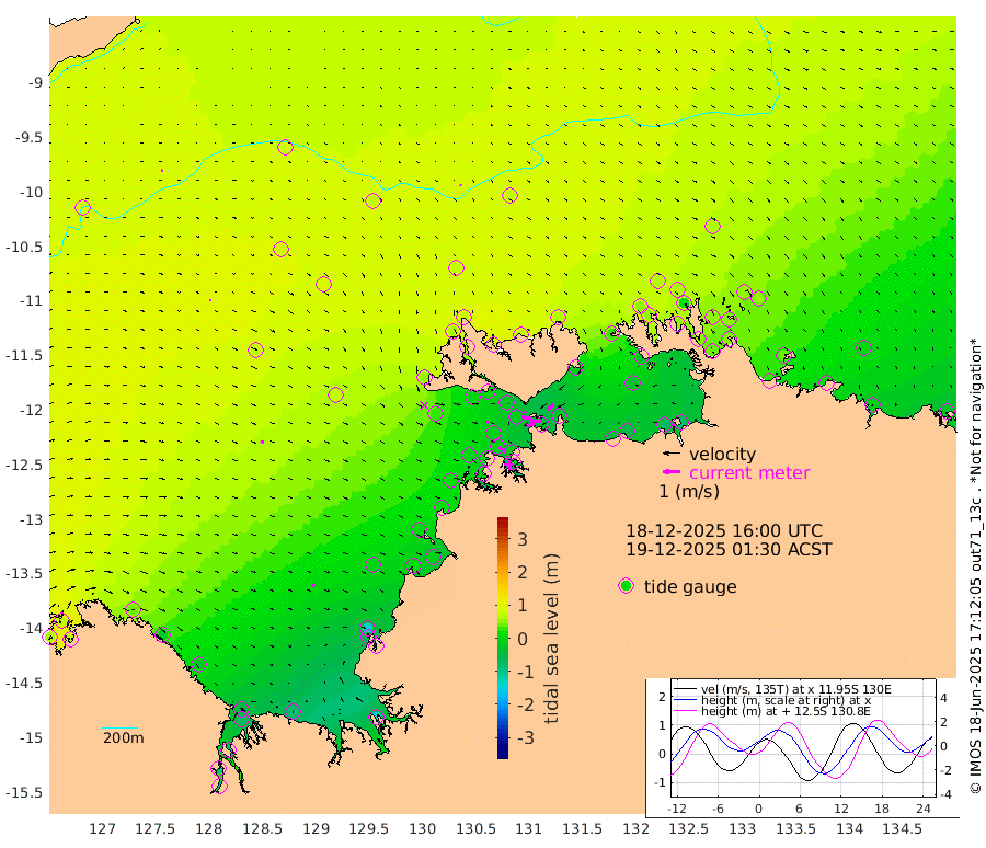 53cm/s -100T +4cm/s rms + 6cm/s 51T. Darwin_C1 52m 72cm/s -91T +4cm/s rms + 7cm/s -161T. Darwin_CW1 22m 16cm/s -106T +4cm/s rms + 8cm/s 61T. Darwin_CW2 34m 45cm/s -136T +3cm/s rms + 9cm/s 98T. Darwin_CW3 22m 44cm/s -91T +5cm/s rms + 7cm/s 88T. Darwin_C3 56m 12cm/s -113T +2cm/s rms + 9cm/s -126T. Darwin_CTbW 22m 8cm/s 136T +9cm/s rms + 2cm/s -110T. NWSLYN 196m 20cm/s 100T +1cm/s rms + 1cm/s -47T. DARBGF 30m 10cm/s 37T +7cm/s rms + 2cm/s -137T. ITFTIS 464m 10cm/s 62T +9cm/s rms + 1cm/s 74T. ITFMHB 146m 12cm/s 104T +4cm/s rms + 1cm/s -134T. ITFJBG 61m 19cm/s 100T +6cm/s rms + 4cm/s 121T. ITFFTB 108m 22cm/s 135T +4cm/s rms + 3cm/s 80T. NRSDAR 19m 69cm Carronade Island 67cm Guy Point 76cm Napier Broome Bay 42cm Lesueur Island -24cm Reveley Island -16cm Rocky Island -68cm Cape Domett -53cm Lacrosse Island -93cm Adolphus Island -92cm Pender Point -89cm Wyndham 73cm The Boxers 85cm Unnamed Shoal 85cm Loxton Shoal -84cm Pelican Island 80cm Calder Shoal 72cm Evans Shoal -141cm Quoin Island -46cm Port Keats -57cm Jones Point -146cm Catfish Island -5cm Cape Scott Offshore 19cm Cape Ford -6cm Anson Bay 75cm Goodrich Bank 3cm Peron Island North 12cm Point Jenny 16cm Native Point 0cm Fish Reef 1cm Tapa Bay 50cm Point Fawcett (Offshore) -5cm Burge Point -3cm Munkunuwa 27cm Beagle A -11cm Parsons Bank -3cm Fenton Patches 73cm Lynedoch Bank -17cm Hancox Shoal Area -10cm Nightcliff -20cm Darwin -4cm Charles Point Patches -27cm Glyde Point -50cm Chambers Bay -59cm Point Stuart -30cm Cape Hotham -38cm Christine Reef -72cm West Alligator Head -81cm East Field Island -30cm Two Hills Bay 68cm Newby Shoal -22cm Camp Point 0cm Medina Inlet South 59cm South Barlow Point 64cm St. Asaph Bay 76cm Cape Van Dieman 80cm Snake Bay 72cm Cache Point 81cm Echo Shoal 58cm Point Jahleel (Off) 29cm Cape Don 54cm Port Essington 55cm Smith Point - West 57cm NW Peacock Island 64cm North Of Jones Shoal 22cm Peacock Island 47cm Point David 56cm D'urville Point 59cm Money Shoal 41cm Copeland Island 54cm Cape Cockburn 47cm One Tree Point 50cm Hogmany Shoal 52cm New Year Island - West 48cm Grant Island 27cm Aurari Bay 15cm Cuthbert Point 34cm North Goulburn Island 9cm Paxie Shoal -1cm Entrance Island -26cm Yabooma Island