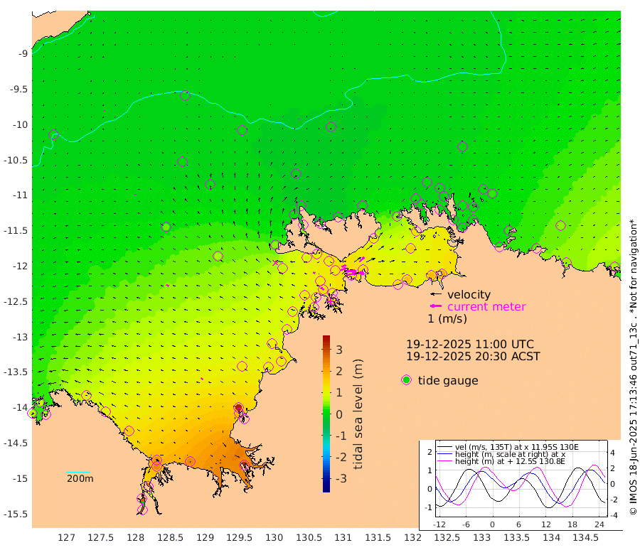 91cm/s 79T +4cm/s rms + 6cm/s 51T. Darwin_C1 52m 109cm/s 90T +4cm/s rms + 7cm/s -161T. Darwin_CW1 22m 50cm/s 72T +4cm/s rms + 8cm/s 61T. Darwin_CW2 34m 64cm/s 45T +3cm/s rms + 9cm/s 98T. Darwin_CW3 22m 99cm/s 91T +5cm/s rms + 7cm/s 88T. Darwin_C3 56m 40cm/s 67T +2cm/s rms + 9cm/s -126T. Darwin_CTbW 22m 6cm/s 3T +9cm/s rms + 2cm/s -110T. NWSLYN 196m 18cm/s -66T +1cm/s rms + 1cm/s -47T. DARBGF 30m 5cm/s -71T +7cm/s rms + 2cm/s -137T. ITFTIS 464m 7cm/s -55T +9cm/s rms + 1cm/s 74T. ITFMHB 146m 21cm/s -46T +4cm/s rms + 1cm/s -134T. ITFJBG 61m 24cm/s -55T +6cm/s rms + 4cm/s 121T. ITFFTB 108m 33cm/s -49T +4cm/s rms + 3cm/s 80T. NRSDAR 19m 68cm Carronade Island 73cm Guy Point 69cm Napier Broome Bay 121cm Lesueur Island 165cm Reveley Island 97cm Rocky Island 233cm Cape Domett 219cm Lacrosse Island 263cm Adolphus Island 273cm Pender Point 283cm Wyndham 37cm The Boxers 20cm Unnamed Shoal 8cm Loxton Shoal 227cm Pelican Island 22cm Calder Shoal 3cm Evans Shoal 326cm Quoin Island 186cm Port Keats 181cm Jones Point 329cm Catfish Island 119cm Cape Scott Offshore 111cm Cape Ford 117cm Anson Bay -2cm Goodrich Bank 107cm Peron Island North 91cm Point Jenny 88cm Native Point 106cm Fish Reef 109cm Tapa Bay 45cm Point Fawcett (Offshore) 121cm Burge Point 89cm Munkunuwa 79cm Beagle A 109cm Parsons Bank 116cm Fenton Patches -1cm Lynedoch Bank 120cm Hancox Shoal Area 122cm Nightcliff 141cm Darwin 125cm Charles Point Patches 133cm Glyde Point 153cm Chambers Bay 161cm Point Stuart 131cm Cape Hotham 136cm Christine Reef 179cm West Alligator Head 194cm East Field Island 126cm Two Hills Bay 65cm Newby Shoal 123cm Camp Point 108cm Medina Inlet South 22cm South Barlow Point 16cm St. Asaph Bay -6cm Cape Van Dieman -3cm Snake Bay 5cm Cache Point 11cm Echo Shoal 17cm Point Jahleel (Off) 49cm Cape Don 12cm Port Essington 9cm Smith Point - West 6cm NW Peacock Island 5cm North Of Jones Shoal 1cm Peacock Island 9cm Point David 4cm D'urville Point 3cm Money Shoal 10cm Copeland Island 19cm Cape Cockburn 14cm One Tree Point 27cm Hogmany Shoal 16cm New Year Island - West 16cm Grant Island 24cm Aurari Bay 37cm Cuthbert Point 25cm North Goulburn Island 50cm Paxie Shoal 52cm Entrance Island 64cm Yabooma Island