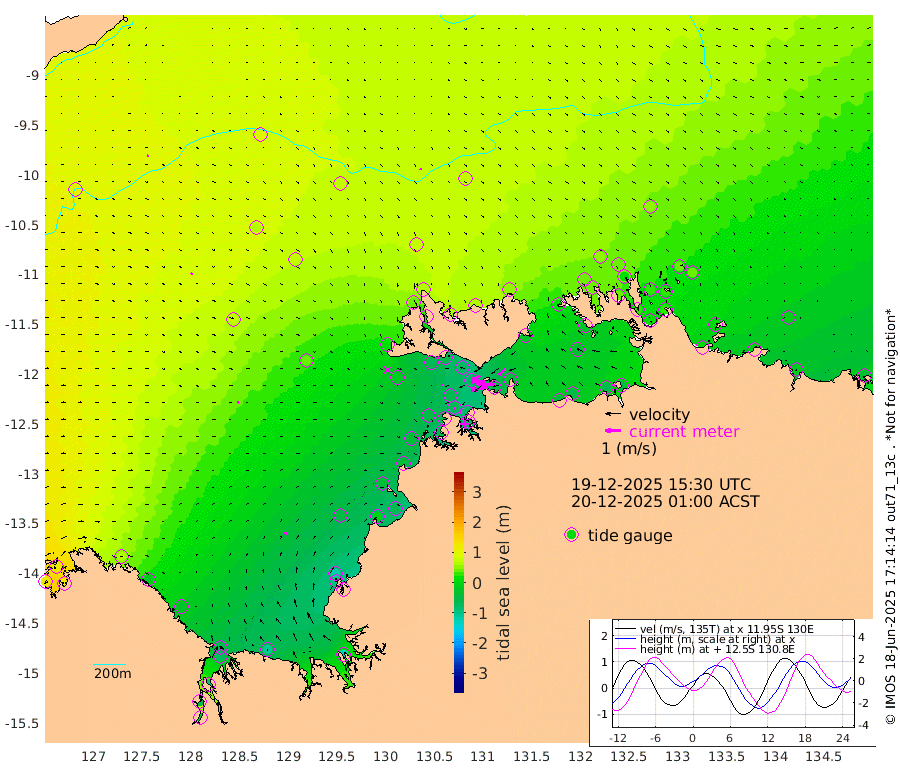 110cm/s -101T +4cm/s rms + 6cm/s 51T. Darwin_C1 52m 108cm/s -91T +4cm/s rms + 7cm/s -161T. Darwin_CW1 22m 46cm/s -106T +4cm/s rms + 8cm/s 61T. Darwin_CW2 34m 54cm/s -135T +3cm/s rms + 9cm/s 98T. Darwin_CW3 22m 77cm/s -91T +5cm/s rms + 7cm/s 88T. Darwin_C3 56m 58cm/s -115T +2cm/s rms + 9cm/s -126T. Darwin_CTbW 22m 8cm/s 137T +9cm/s rms + 2cm/s -110T. NWSLYN 196m 7cm/s -110T +1cm/s rms + 1cm/s -47T. DARBGF 30m 10cm/s 36T +7cm/s rms + 2cm/s -137T. ITFTIS 464m 11cm/s 47T +9cm/s rms + 1cm/s 74T. ITFMHB 146m 12cm/s 20T +4cm/s rms + 1cm/s -134T. ITFJBG 61m 13cm/s 65T +6cm/s rms + 4cm/s 121T. ITFFTB 108m 8cm/s -106T +4cm/s rms + 3cm/s 80T. NRSDAR 19m 116cm Carronade Island 117cm Guy Point 124cm Napier Broome Bay 61cm Lesueur Island -27cm Reveley Island -12cm Rocky Island -75cm Cape Domett -60cm Lacrosse Island -89cm Adolphus Island -45cm Pender Point -30cm Wyndham 68cm The Boxers 66cm Unnamed Shoal 96cm Loxton Shoal -104cm Pelican Island 75cm Calder Shoal 75cm Evans Shoal -134cm Quoin Island -87cm Port Keats -90cm Jones Point -122cm Catfish Island -50cm Cape Scott Offshore -7cm Cape Ford -64cm Anson Bay 68cm Goodrich Bank -44cm Peron Island North -39cm Point Jenny -35cm Native Point -51cm Fish Reef -54cm Tapa Bay 17cm Point Fawcett (Offshore) -59cm Burge Point -59cm Munkunuwa -18cm Beagle A -68cm Parsons Bank -57cm Fenton Patches 70cm Lynedoch Bank -70cm Hancox Shoal Area -74cm Nightcliff -77cm Darwin -58cm Charles Point Patches -53cm Glyde Point -49cm Chambers Bay -49cm Point Stuart -44cm Cape Hotham -39cm Christine Reef -57cm West Alligator Head -52cm East Field Island -32cm Two Hills Bay 39cm Newby Shoal -26cm Camp Point -55cm Medina Inlet South 25cm South Barlow Point 41cm St. Asaph Bay 66cm Cape Van Dieman 66cm Snake Bay 64cm Cache Point 101cm Echo Shoal 47cm Point Jahleel (Off) 12cm Cape Don 39cm Port Essington 38cm Smith Point - West 42cm NW Peacock Island 50cm North Of Jones Shoal 16cm Peacock Island 29cm Point David 37cm D'urville Point 45cm Money Shoal 22cm Copeland Island 30cm Cape Cockburn 29cm One Tree Point 37cm Hogmany Shoal 34cm New Year Island - West 30cm Grant Island 4cm Aurari Bay -4cm Cuthbert Point 13cm North Goulburn Island -9cm Paxie Shoal -18cm Entrance Island -43cm Yabooma Island