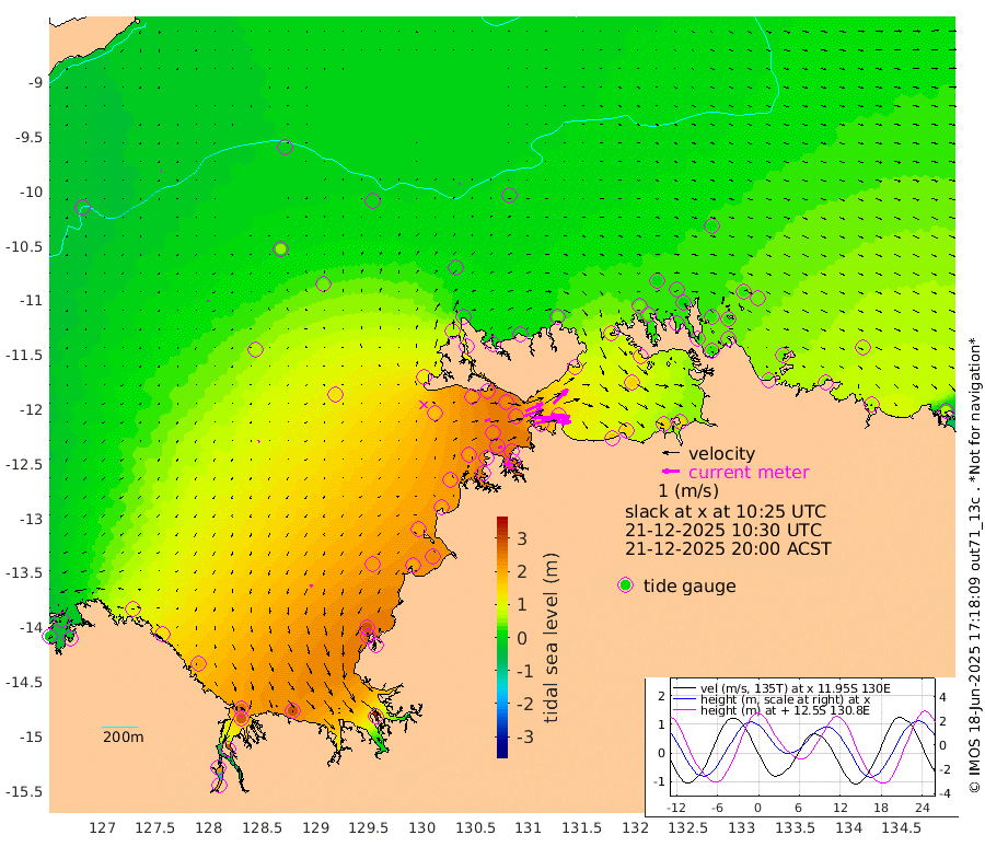 214cm/s 78T +4cm/s rms + 6cm/s 51T. Darwin_C1 52m 171cm/s 93T +4cm/s rms + 7cm/s -161T. Darwin_CW1 22m 119cm/s 72T +4cm/s rms + 8cm/s 61T. Darwin_CW2 34m 119cm/s 46T +3cm/s rms + 9cm/s 98T. Darwin_CW3 22m 182cm/s 89T +5cm/s rms + 7cm/s 88T. Darwin_C3 56m 111cm/s 66T +2cm/s rms + 9cm/s -126T. Darwin_CTbW 22m 5cm/s 2T +9cm/s rms + 2cm/s -110T. NWSLYN 196m 30cm/s 74T +1cm/s rms + 1cm/s -47T. DARBGF 30m 4cm/s -88T +7cm/s rms + 2cm/s -137T. ITFTIS 464m 10cm/s -146T +9cm/s rms + 1cm/s 74T. ITFMHB 146m 14cm/s -146T +4cm/s rms + 1cm/s -134T. ITFJBG 61m 8cm/s -115T +6cm/s rms + 4cm/s 121T. ITFFTB 108m 18cm/s 93T +4cm/s rms + 3cm/s 80T. NRSDAR 19m -2cm Carronade Island 2cm Guy Point -1cm Napier Broome Bay 97cm Lesueur Island 193cm Reveley Island 125cm Rocky Island 274cm Cape Domett 252cm Lacrosse Island 286cm Adolphus Island 221cm Pender Point 203cm Wyndham 57cm The Boxers 46cm Unnamed Shoal -1cm Loxton Shoal 291cm Pelican Island 42cm Calder Shoal 5cm Evans Shoal 335cm Quoin Island 284cm Port Keats 261cm Jones Point 288cm Catfish Island 214cm Cape Scott Offshore 201cm Cape Ford 232cm Anson Bay 15cm Goodrich Bank 201cm Peron Island North 202cm Point Jenny 200cm Native Point 212cm Fish Reef 227cm Tapa Bay 112cm Point Fawcett (Offshore) 238cm Burge Point 207cm Munkunuwa 179cm Beagle A 225cm Parsons Bank 234cm Fenton Patches 5cm Lynedoch Bank 230cm Hancox Shoal Area 250cm Nightcliff 258cm Darwin 239cm Charles Point Patches 190cm Glyde Point 158cm Chambers Bay 143cm Point Stuart 158cm Cape Hotham 149cm Christine Reef 155cm West Alligator Head 144cm East Field Island 131cm Two Hills Bay 130cm Newby Shoal 134cm Camp Point 222cm Medina Inlet South 90cm South Barlow Point 66cm St. Asaph Bay 16cm Cape Van Dieman 21cm Snake Bay 22cm Cache Point -17cm Echo Shoal 38cm Point Jahleel (Off) 79cm Cape Don 35cm Port Essington 38cm Smith Point - West 28cm NW Peacock Island 22cm North Of Jones Shoal 7cm Peacock Island 26cm Point David 32cm D'urville Point 18cm Money Shoal 28cm Copeland Island 41cm Cape Cockburn 32cm One Tree Point 36cm Hogmany Shoal 32cm New Year Island - West 34cm Grant Island 44cm Aurari Bay 54cm Cuthbert Point 43cm North Goulburn Island 59cm Paxie Shoal 62cm Entrance Island 64cm Yabooma Island