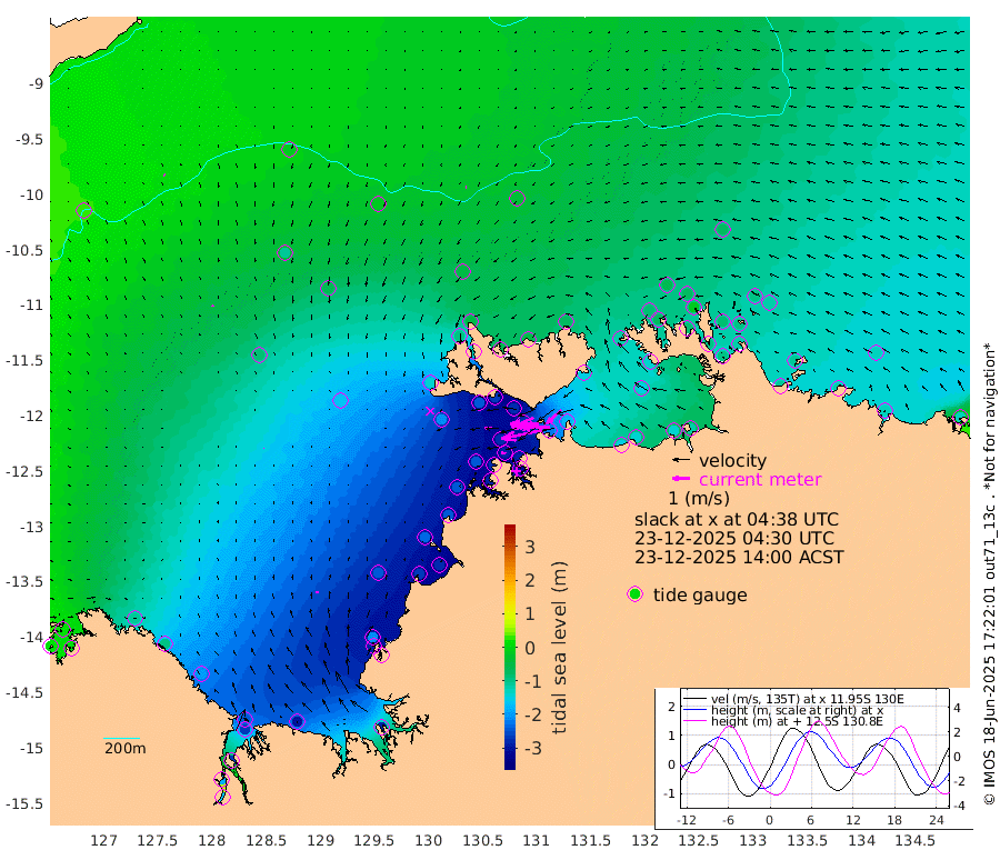 240cm/s -102T +4cm/s rms + 6cm/s 51T. Darwin_C1 52m 174cm/s -90T +4cm/s rms + 7cm/s -161T. Darwin_CW1 22m 118cm/s -107T +4cm/s rms + 8cm/s 61T. Darwin_CW2 34m 115cm/s -133T +3cm/s rms + 9cm/s 98T. Darwin_CW3 22m 168cm/s -90T +5cm/s rms + 7cm/s 88T. Darwin_C3 56m 137cm/s -115T +2cm/s rms + 9cm/s -126T. Darwin_CTbW 22m 6cm/s -85T +9cm/s rms + 2cm/s -110T. NWSLYN 196m 41cm/s -99T +1cm/s rms + 1cm/s -47T. DARBGF 30m 10cm/s 164T +7cm/s rms + 2cm/s -137T. ITFTIS 464m 7cm/s 161T +9cm/s rms + 1cm/s 74T. ITFMHB 146m 13cm/s 5T +4cm/s rms + 1cm/s -134T. ITFJBG 61m 3cm/s 98T +6cm/s rms + 4cm/s 121T. ITFFTB 108m 28cm/s -79T +4cm/s rms + 3cm/s 80T. NRSDAR 19m 16cm Carronade Island 14cm Guy Point 10cm Napier Broome Bay -104cm Lesueur Island -195cm Reveley Island -97cm Rocky Island -270cm Cape Domett -245cm Lacrosse Island -262cm Adolphus Island -186cm Pender Point -158cm Wyndham -87cm The Boxers -109cm Unnamed Shoal -12cm Loxton Shoal -294cm Pelican Island -63cm Calder Shoal -20cm Evans Shoal -292cm Quoin Island -311cm Port Keats -288cm Jones Point -206cm Catfish Island -240cm Cape Scott Offshore -266cm Cape Ford -270cm Anson Bay -49cm Goodrich Bank -235cm Peron Island North -243cm Point Jenny -244cm Native Point -246cm Fish Reef -273cm Tapa Bay -145cm Point Fawcett (Offshore) -283cm Burge Point -245cm Munkunuwa -213cm Beagle A -275cm Parsons Bank -272cm Fenton Patches -35cm Lynedoch Bank -275cm Hancox Shoal Area -288cm Nightcliff -307cm Darwin -290cm Charles Point Patches -218cm Glyde Point -155cm Chambers Bay -139cm Point Stuart -176cm Cape Hotham -151cm Christine Reef -143cm West Alligator Head -121cm East Field Island -141cm Two Hills Bay -169cm Newby Shoal -153cm Camp Point -264cm Medina Inlet South -131cm South Barlow Point -96cm St. Asaph Bay -54cm Cape Van Dieman -64cm Snake Bay -56cm Cache Point 23cm Echo Shoal -70cm Point Jahleel (Off) -115cm Cape Don -79cm Port Essington -79cm Smith Point - West -75cm NW Peacock Island -57cm North Of Jones Shoal -21cm Peacock Island -93cm Point David -82cm D'urville Point -71cm Money Shoal -92cm Copeland Island -116cm Cape Cockburn -90cm One Tree Point -117cm Hogmany Shoal -96cm New Year Island - West -100cm Grant Island -106cm Aurari Bay -123cm Cuthbert Point -110cm North Goulburn Island -132cm Paxie Shoal -131cm Entrance Island -129cm Yabooma Island