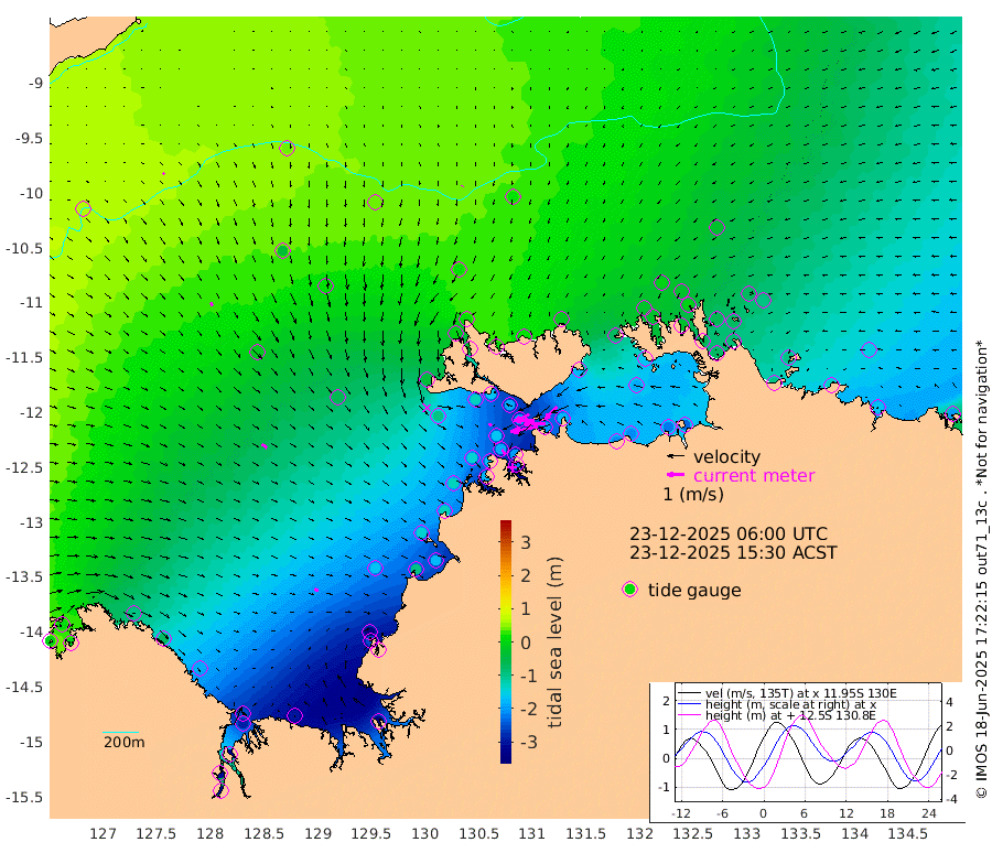 160cm/s -101T +4cm/s rms + 6cm/s 51T. Darwin_C1 52m 125cm/s -92T +4cm/s rms + 7cm/s -161T. Darwin_CW1 22m 64cm/s -105T +4cm/s rms + 8cm/s 61T. Darwin_CW2 34m 101cm/s -137T +3cm/s rms + 9cm/s 98T. Darwin_CW3 22m 119cm/s -90T +5cm/s rms + 7cm/s 88T. Darwin_C3 56m 88cm/s -116T +2cm/s rms + 9cm/s -126T. Darwin_CTbW 22m 5cm/s -136T +9cm/s rms + 2cm/s -110T. NWSLYN 196m 19cm/s 114T +1cm/s rms + 1cm/s -47T. DARBGF 30m 12cm/s 132T +7cm/s rms + 2cm/s -137T. ITFTIS 464m 22cm/s 156T +9cm/s rms + 1cm/s 74T. ITFMHB 146m 23cm/s 124T +4cm/s rms + 1cm/s -134T. ITFJBG 61m 37cm/s 127T +6cm/s rms + 4cm/s 121T. ITFFTB 108m 30cm/s 141T +4cm/s rms + 3cm/s 80T. NRSDAR 19m 1cm Carronade Island -3cm Guy Point -5cm Napier Broome Bay -100cm Lesueur Island -183cm Reveley Island -76cm Rocky Island -285cm Cape Domett -254cm Lacrosse Island -320cm Adolphus Island -307cm Pender Point -311cm Wyndham -19cm The Boxers -36cm Unnamed Shoal 41cm Loxton Shoal -299cm Pelican Island 15cm Calder Shoal 38cm Evans Shoal -401cm Quoin Island -260cm Port Keats -248cm Jones Point -374cm Catfish Island -161cm Cape Scott Offshore -101cm Cape Ford -180cm Anson Bay 20cm Goodrich Bank -143cm Peron Island North -131cm Point Jenny -131cm Native Point -141cm Fish Reef -165cm Tapa Bay -42cm Point Fawcett (Offshore) -175cm Burge Point -130cm Munkunuwa -98cm Beagle A -180cm Parsons Bank -166cm Fenton Patches 18cm Lynedoch Bank -194cm Hancox Shoal Area -192cm Nightcliff -219cm Darwin -191cm Charles Point Patches -192cm Glyde Point -203cm Chambers Bay -206cm Point Stuart -178cm Cape Hotham -182cm Christine Reef -223cm West Alligator Head -233cm East Field Island -167cm Two Hills Bay -65cm Newby Shoal -172cm Camp Point -158cm Medina Inlet South -28cm South Barlow Point -2cm St. Asaph Bay 21cm Cape Van Dieman 9cm Snake Bay 12cm Cache Point 59cm Echo Shoal -13cm Point Jahleel (Off) -77cm Cape Don -28cm Port Essington -23cm Smith Point - West -26cm NW Peacock Island -6cm North Of Jones Shoal -5cm Peacock Island -66cm Point David -30cm D'urville Point -33cm Money Shoal -69cm Copeland Island -84cm Cape Cockburn -61cm One Tree Point -95cm Hogmany Shoal -69cm New Year Island - West -74cm Grant Island -100cm Aurari Bay -128cm Cuthbert Point -99cm North Goulburn Island -153cm Paxie Shoal -164cm Entrance Island -197cm Yabooma Island