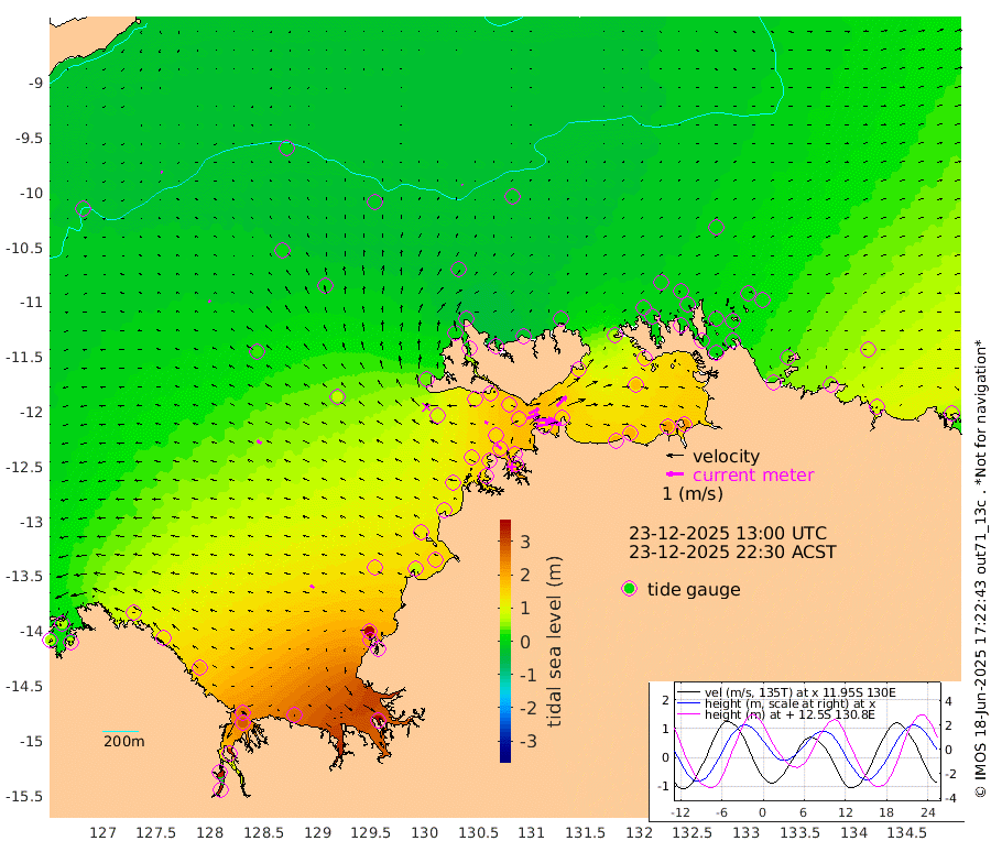 117cm/s 79T +4cm/s rms + 6cm/s 51T. Darwin_C1 52m 94cm/s 92T +4cm/s rms + 7cm/s -161T. Darwin_CW1 22m 73cm/s 70T +4cm/s rms + 8cm/s 61T. Darwin_CW2 34m 80cm/s 47T +3cm/s rms + 9cm/s 98T. Darwin_CW3 22m 119cm/s 90T +5cm/s rms + 7cm/s 88T. Darwin_C3 56m 64cm/s 66T +2cm/s rms + 9cm/s -126T. Darwin_CTbW 22m 6cm/s -8T +9cm/s rms + 2cm/s -110T. NWSLYN 196m 22cm/s -64T +1cm/s rms + 1cm/s -47T. DARBGF 30m 7cm/s -77T +7cm/s rms + 2cm/s -137T. ITFTIS 464m 10cm/s -56T +9cm/s rms + 1cm/s 74T. ITFMHB 146m 24cm/s -51T +4cm/s rms + 1cm/s -134T. ITFJBG 61m 30cm/s -58T +6cm/s rms + 4cm/s 121T. ITFFTB 108m 40cm/s -47T +4cm/s rms + 3cm/s 80T. NRSDAR 19m 58cm Carronade Island 63cm Guy Point 67cm Napier Broome Bay 116cm Lesueur Island 181cm Reveley Island 132cm Rocky Island 277cm Cape Domett 249cm Lacrosse Island 322cm Adolphus Island 326cm Pender Point 338cm Wyndham 30cm The Boxers 6cm Unnamed Shoal -9cm Loxton Shoal 269cm Pelican Island 7cm Calder Shoal -16cm Evans Shoal 395cm Quoin Island 228cm Port Keats 205cm Jones Point 389cm Catfish Island 137cm Cape Scott Offshore 68cm Cape Ford 141cm Anson Bay -19cm Goodrich Bank 115cm Peron Island North 108cm Point Jenny 105cm Native Point 117cm Fish Reef 127cm Tapa Bay 36cm Point Fawcett (Offshore) 144cm Burge Point 102cm Munkunuwa 88cm Beagle A 134cm Parsons Bank 139cm Fenton Patches -14cm Lynedoch Bank 148cm Hancox Shoal Area 157cm Nightcliff 169cm Darwin 145cm Charles Point Patches 157cm Glyde Point 188cm Chambers Bay 185cm Point Stuart 148cm Cape Hotham 172cm Christine Reef 207cm West Alligator Head 223cm East Field Island 145cm Two Hills Bay 74cm Newby Shoal 146cm Camp Point 126cm Medina Inlet South 18cm South Barlow Point 3cm St. Asaph Bay -23cm Cape Van Dieman -18cm Snake Bay -12cm Cache Point -13cm Echo Shoal 6cm Point Jahleel (Off) 56cm Cape Don 6cm Port Essington 4cm Smith Point - West 1cm NW Peacock Island -5cm North Of Jones Shoal -2cm Peacock Island 8cm Point David 1cm D'urville Point 1cm Money Shoal 10cm Copeland Island 20cm Cape Cockburn 14cm One Tree Point 21cm Hogmany Shoal 17cm New Year Island - West 18cm Grant Island 33cm Aurari Bay 55cm Cuthbert Point 35cm North Goulburn Island 69cm Paxie Shoal 81cm Entrance Island 100cm Yabooma Island