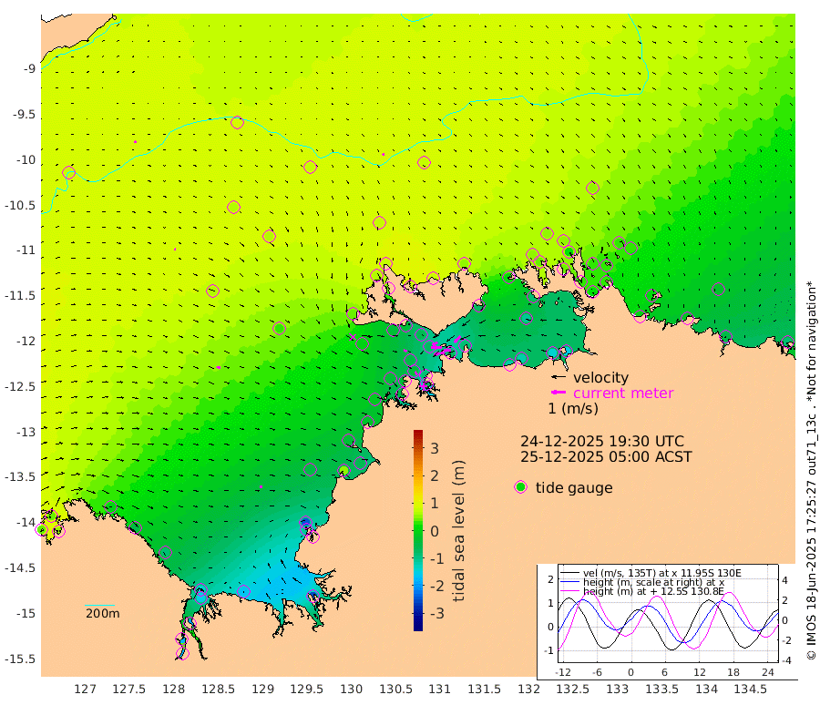 77cm/s -100T +4cm/s rms + 6cm/s 51T. Darwin_C1 52m 48cm/s -93T +4cm/s rms + 7cm/s -161T. Darwin_CW1 22m 34cm/s -107T +4cm/s rms + 8cm/s 61T. Darwin_CW2 34m 58cm/s -137T +3cm/s rms + 9cm/s 98T. Darwin_CW3 22m 63cm/s -91T +5cm/s rms + 7cm/s 88T. Darwin_C3 56m 40cm/s -116T +2cm/s rms + 9cm/s -126T. Darwin_CTbW 22m 13cm/s 148T +9cm/s rms + 2cm/s -110T. NWSLYN 196m 21cm/s 105T +1cm/s rms + 1cm/s -47T. DARBGF 30m 12cm/s 43T +7cm/s rms + 2cm/s -137T. ITFTIS 464m 12cm/s 69T +9cm/s rms + 1cm/s 74T. ITFMHB 146m 17cm/s 105T +4cm/s rms + 1cm/s -134T. ITFJBG 61m 25cm/s 103T +6cm/s rms + 4cm/s 121T. ITFFTB 108m 25cm/s 139T +4cm/s rms + 3cm/s 80T. NRSDAR 19m 39cm Carronade Island 37cm Guy Point 46cm Napier Broome Bay -10cm Lesueur Island -86cm Reveley Island -45cm Rocky Island -152cm Cape Domett -137cm Lacrosse Island -194cm Adolphus Island -178cm Pender Point -186cm Wyndham 60cm The Boxers 63cm Unnamed Shoal 83cm Loxton Shoal -159cm Pelican Island 65cm Calder Shoal 75cm Evans Shoal -253cm Quoin Island -117cm Port Keats -109cm Jones Point -236cm Catfish Island -54cm Cape Scott Offshore 49cm Cape Ford -58cm Anson Bay 76cm Goodrich Bank -38cm Peron Island North -26cm Point Jenny -22cm Native Point -35cm Fish Reef -42cm Tapa Bay 36cm Point Fawcett (Offshore) -55cm Burge Point -37cm Munkunuwa -10cm Beagle A -61cm Parsons Bank -56cm Fenton Patches 70cm Lynedoch Bank -72cm Hancox Shoal Area -83cm Nightcliff -74cm Darwin -42cm Charles Point Patches -78cm Glyde Point -118cm Chambers Bay -118cm Point Stuart -84cm Cape Hotham -102cm Christine Reef -138cm West Alligator Head -150cm East Field Island -82cm Two Hills Bay 27cm Newby Shoal -71cm Camp Point -40cm Medina Inlet South 45cm South Barlow Point 57cm St. Asaph Bay 78cm Cape Van Dieman 73cm Snake Bay 70cm Cache Point 78cm Echo Shoal 46cm Point Jahleel (Off) 5cm Cape Don 49cm Port Essington 44cm Smith Point - West 46cm NW Peacock Island 53cm North Of Jones Shoal 17cm Peacock Island 28cm Point David 43cm D'urville Point 49cm Money Shoal 21cm Copeland Island 25cm Cape Cockburn 28cm One Tree Point 32cm Hogmany Shoal 27cm New Year Island - West 24cm Grant Island -5cm Aurari Bay -15cm Cuthbert Point 3cm North Goulburn Island -25cm Paxie Shoal -52cm Entrance Island -85cm Yabooma Island