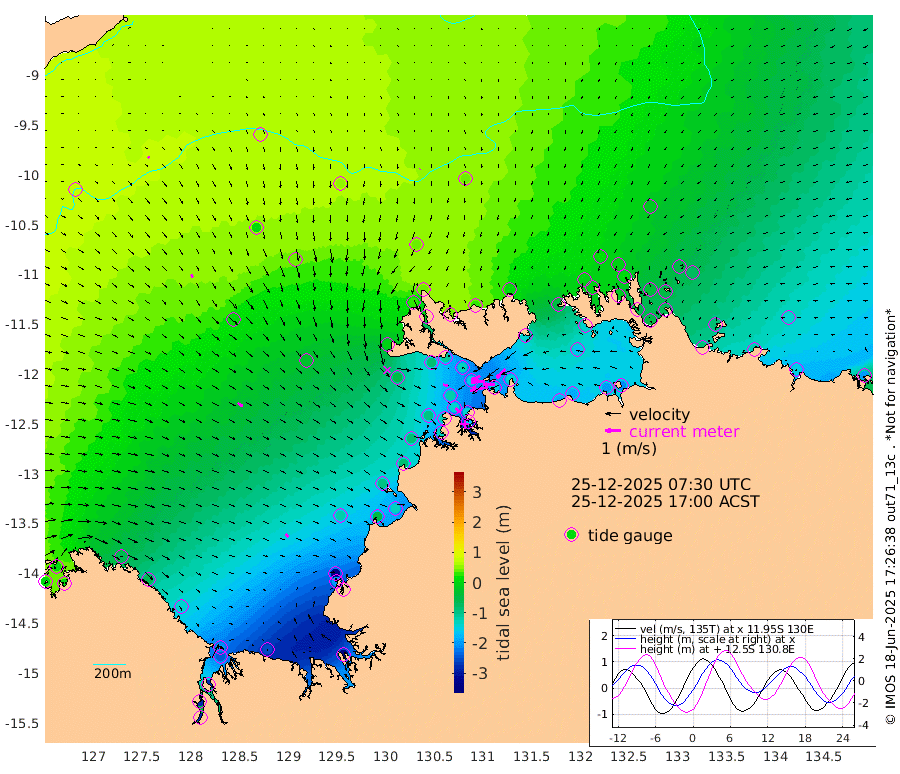 114cm/s -101T +4cm/s rms + 6cm/s 51T. Darwin_C1 52m 74cm/s -92T +4cm/s rms + 7cm/s -161T. Darwin_CW1 22m 47cm/s -105T +4cm/s rms + 8cm/s 61T. Darwin_CW2 34m 80cm/s -137T +3cm/s rms + 9cm/s 98T. Darwin_CW3 22m 91cm/s -90T +5cm/s rms + 7cm/s 88T. Darwin_C3 56m 62cm/s -116T +2cm/s rms + 9cm/s -126T. Darwin_CTbW 22m 3cm/s -132T +9cm/s rms + 2cm/s -110T. NWSLYN 196m 27cm/s 105T +1cm/s rms + 1cm/s -47T. DARBGF 30m 11cm/s 119T +7cm/s rms + 2cm/s -137T. ITFTIS 464m 20cm/s 150T +9cm/s rms + 1cm/s 74T. ITFMHB 146m 26cm/s 127T +4cm/s rms + 1cm/s -134T. ITFJBG 61m 37cm/s 125T +6cm/s rms + 4cm/s 121T. ITFFTB 108m 36cm/s 136T +4cm/s rms + 3cm/s 80T. NRSDAR 19m 8cm Carronade Island 2cm Guy Point 1cm Napier Broome Bay -64cm Lesueur Island -143cm Reveley Island -59cm Rocky Island -238cm Cape Domett -204cm Lacrosse Island -276cm Adolphus Island -278cm Pender Point -285cm Wyndham 9cm The Boxers 0cm Unnamed Shoal 59cm Loxton Shoal -249cm Pelican Island 40cm Calder Shoal 54cm Evans Shoal -348cm Quoin Island -205cm Port Keats -195cm Jones Point -330cm Catfish Island -114cm Cape Scott Offshore -45cm Cape Ford -129cm Anson Bay 40cm Goodrich Bank -94cm Peron Island North -89cm Point Jenny -88cm Native Point -92cm Fish Reef -116cm Tapa Bay -6cm Point Fawcett (Offshore) -126cm Burge Point -86cm Munkunuwa -55cm Beagle A -134cm Parsons Bank -116cm Fenton Patches 36cm Lynedoch Bank -149cm Hancox Shoal Area -143cm Nightcliff -163cm Darwin -136cm Charles Point Patches -152cm Glyde Point -182cm Chambers Bay -182cm Point Stuart -145cm Cape Hotham -163cm Christine Reef -200cm West Alligator Head -212cm East Field Island -141cm Two Hills Bay -27cm Newby Shoal -145cm Camp Point -107cm Medina Inlet South 4cm South Barlow Point 26cm St. Asaph Bay 41cm Cape Van Dieman 34cm Snake Bay 33cm Cache Point 73cm Echo Shoal 9cm Point Jahleel (Off) -55cm Cape Don -8cm Port Essington -4cm Smith Point - West -8cm NW Peacock Island 13cm North Of Jones Shoal 2cm Peacock Island -48cm Point David -12cm D'urville Point -16cm Money Shoal -52cm Copeland Island -61cm Cape Cockburn -42cm One Tree Point -74cm Hogmany Shoal -48cm New Year Island - West -55cm Grant Island -80cm Aurari Bay -114cm Cuthbert Point -82cm North Goulburn Island -137cm Paxie Shoal -155cm Entrance Island -193cm Yabooma Island