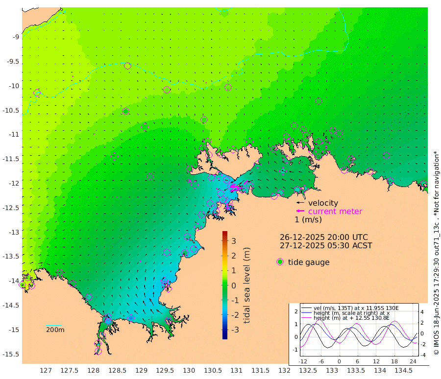 121cm/s -101T +4cm/s rms + 6cm/s 51T. Darwin_C1 52m 72cm/s -91T +4cm/s rms + 7cm/s -161T. Darwin_CW1 22m 62cm/s -106T +4cm/s rms + 8cm/s 61T. Darwin_CW2 34m 64cm/s -136T +3cm/s rms + 9cm/s 98T. Darwin_CW3 22m 97cm/s -91T +5cm/s rms + 7cm/s 88T. Darwin_C3 56m 69cm/s -115T +2cm/s rms + 9cm/s -126T. Darwin_CTbW 22m 10cm/s 156T +9cm/s rms + 2cm/s -110T. NWSLYN 196m 9cm/s -118T +1cm/s rms + 1cm/s -47T. DARBGF 30m 9cm/s 51T +7cm/s rms + 2cm/s -137T. ITFTIS 464m 10cm/s 55T +9cm/s rms + 1cm/s 74T. ITFMHB 146m 12cm/s 48T +4cm/s rms + 1cm/s -134T. ITFJBG 61m 14cm/s 81T +6cm/s rms + 4cm/s 121T. ITFFTB 108m 8cm/s -124T +4cm/s rms + 3cm/s 80T. NRSDAR 19m 44cm Carronade Island 43cm Guy Point 53cm Napier Broome Bay -34cm Lesueur Island -117cm Reveley Island -50cm Rocky Island -174cm Cape Domett -160cm Lacrosse Island -193cm Adolphus Island -137cm Pender Point -131cm Wyndham 15cm The Boxers 1cm Unnamed Shoal 59cm Loxton Shoal -192cm Pelican Island 21cm Calder Shoal 43cm Evans Shoal -222cm Quoin Island -173cm Port Keats -166cm Jones Point -178cm Catfish Island -116cm Cape Scott Offshore -77cm Cape Ford -129cm Anson Bay 31cm Goodrich Bank -112cm Peron Island North -108cm Point Jenny -106cm Native Point -114cm Fish Reef -128cm Tapa Bay -31cm Point Fawcett (Offshore) -137cm Burge Point -116cm Munkunuwa -90cm Beagle A -142cm Parsons Bank -139cm Fenton Patches 36cm Lynedoch Bank -147cm Hancox Shoal Area -159cm Nightcliff -153cm Darwin -125cm Charles Point Patches -124cm Glyde Point -126cm Chambers Bay -118cm Point Stuart -116cm Cape Hotham -114cm Christine Reef -131cm West Alligator Head -127cm East Field Island -100cm Two Hills Bay -42cm Newby Shoal -91cm Camp Point -118cm Medina Inlet South -20cm South Barlow Point 1cm St. Asaph Bay 29cm Cape Van Dieman 23cm Snake Bay 23cm Cache Point 66cm Echo Shoal 2cm Point Jahleel (Off) -37cm Cape Don 2cm Port Essington -6cm Smith Point - West -3cm NW Peacock Island 13cm North Of Jones Shoal 3cm Peacock Island -23cm Point David -9cm D'urville Point 7cm Money Shoal -27cm Copeland Island -35cm Cape Cockburn -17cm One Tree Point -31cm Hogmany Shoal -22cm New Year Island - West -27cm Grant Island -49cm Aurari Bay -59cm Cuthbert Point -45cm North Goulburn Island -61cm Paxie Shoal -91cm Entrance Island -111cm Yabooma Island