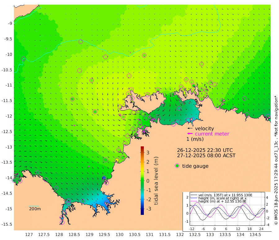 51cm/s 79T +4cm/s rms + 6cm/s 51T. Darwin_C1 52m 41cm/s 86T +4cm/s rms + 7cm/s -161T. Darwin_CW1 22m 16cm/s 75T +4cm/s rms + 8cm/s 61T. Darwin_CW2 34m 8cm/s 164T +3cm/s rms + 9cm/s 98T. Darwin_CW3 22m 7cm/s 72T +5cm/s rms + 7cm/s 88T. Darwin_C3 56m 33cm/s 62T +2cm/s rms + 9cm/s -126T. Darwin_CTbW 22m 12cm/s 150T +9cm/s rms + 2cm/s -110T. NWSLYN 196m 42cm/s 95T +1cm/s rms + 1cm/s -47T. DARBGF 30m 6cm/s 49T +7cm/s rms + 2cm/s -137T. ITFTIS 464m 8cm/s 133T +9cm/s rms + 1cm/s 74T. ITFMHB 146m 31cm/s 145T +4cm/s rms + 1cm/s -134T. ITFJBG 61m 28cm/s 126T +6cm/s rms + 4cm/s 121T. ITFFTB 108m 44cm/s 124T +4cm/s rms + 3cm/s 80T. NRSDAR 19m -64cm Carronade Island -64cm Guy Point -66cm Napier Broome Bay -59cm Lesueur Island -58cm Reveley Island -46cm Rocky Island -98cm Cape Domett -97cm Lacrosse Island -145cm Adolphus Island -189cm Pender Point -227cm Wyndham 33cm The Boxers 46cm Unnamed Shoal 34cm Loxton Shoal -77cm Pelican Island 40cm Calder Shoal 46cm Evans Shoal -195cm Quoin Island -23cm Port Keats -23cm Jones Point -240cm Catfish Island 16cm Cape Scott Offshore 121cm Cape Ford 28cm Anson Bay 58cm Goodrich Bank 36cm Peron Island North 46cm Point Jenny 49cm Native Point 41cm Fish Reef 44cm Tapa Bay 65cm Point Fawcett (Offshore) 34cm Burge Point 58cm Munkunuwa 42cm Beagle A 41cm Parsons Bank 25cm Fenton Patches 44cm Lynedoch Bank 22cm Hancox Shoal Area 14cm Nightcliff 26cm Darwin 45cm Charles Point Patches -25cm Glyde Point -95cm Chambers Bay -105cm Point Stuart -46cm Cape Hotham -82cm Christine Reef -125cm West Alligator Head -158cm East Field Island -62cm Two Hills Bay 33cm Newby Shoal -57cm Camp Point 46cm Medina Inlet South 72cm South Barlow Point 66cm St. Asaph Bay 64cm Cape Van Dieman 63cm Snake Bay 55cm Cache Point 11cm Echo Shoal 41cm Point Jahleel (Off) 21cm Cape Don 52cm Port Essington 51cm Smith Point - West 49cm NW Peacock Island 47cm North Of Jones Shoal 17cm Peacock Island 43cm Point David 53cm D'urville Point 46cm Money Shoal 40cm Copeland Island 46cm Cape Cockburn 40cm One Tree Point 47cm Hogmany Shoal 34cm New Year Island - West 38cm Grant Island 18cm Aurari Bay 14cm Cuthbert Point 28cm North Goulburn Island 2cm Paxie Shoal -16cm Entrance Island -42cm Yabooma Island