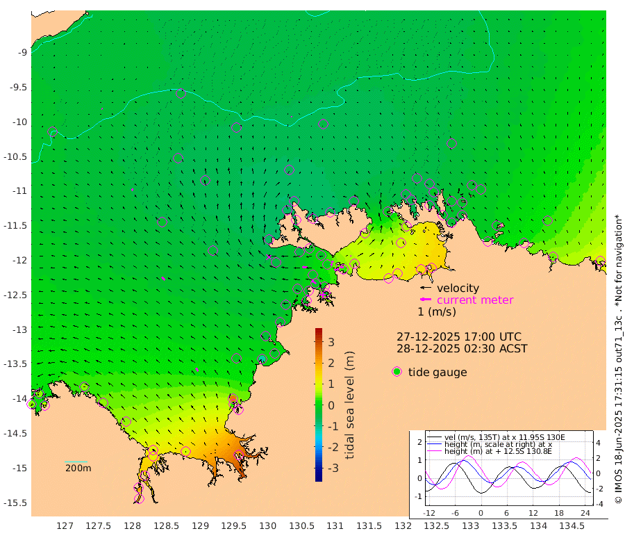 41cm/s -101T +4cm/s rms + 6cm/s 51T. Darwin_C1 52m 28cm/s -90T +4cm/s rms + 7cm/s -161T. Darwin_CW1 22m 17cm/s -109T +4cm/s rms + 8cm/s 61T. Darwin_CW2 34m 5cm/s -27T +3cm/s rms + 9cm/s 98T. Darwin_CW3 22m 7cm/s -114T +5cm/s rms + 7cm/s 88T. Darwin_C3 56m 22cm/s -118T +2cm/s rms + 9cm/s -126T. Darwin_CTbW 22m 6cm/s -30T +9cm/s rms + 2cm/s -110T. NWSLYN 196m 48cm/s -85T +1cm/s rms + 1cm/s -47T. DARBGF 30m 5cm/s -67T +7cm/s rms + 2cm/s -137T. ITFTIS 464m 17cm/s -20T +9cm/s rms + 1cm/s 74T. ITFMHB 146m 34cm/s -32T +4cm/s rms + 1cm/s -134T. ITFJBG 61m 36cm/s -48T +6cm/s rms + 4cm/s 121T. ITFFTB 108m 50cm/s -55T +4cm/s rms + 3cm/s 80T. NRSDAR 19m 55cm Carronade Island 55cm Guy Point 69cm Napier Broome Bay 46cm Lesueur Island 55cm Reveley Island 50cm Rocky Island 107cm Cape Domett 94cm Lacrosse Island 146cm Adolphus Island 214cm Pender Point 246cm Wyndham -33cm The Boxers -40cm Unnamed Shoal -42cm Loxton Shoal 83cm Pelican Island -52cm Calder Shoal -56cm Evans Shoal 207cm Quoin Island 36cm Port Keats 32cm Jones Point 243cm Catfish Island -17cm Cape Scott Offshore -119cm Cape Ford -23cm Anson Bay -63cm Goodrich Bank -41cm Peron Island North -44cm Point Jenny -45cm Native Point -42cm Fish Reef -40cm Tapa Bay -71cm Point Fawcett (Offshore) -25cm Burge Point -54cm Munkunuwa -51cm Beagle A -31cm Parsons Bank -27cm Fenton Patches -47cm Lynedoch Bank -16cm Hancox Shoal Area -15cm Nightcliff -14cm Darwin -33cm Charles Point Patches 33cm Glyde Point 98cm Chambers Bay 112cm Point Stuart 48cm Cape Hotham 88cm Christine Reef 130cm West Alligator Head 163cm East Field Island 65cm Two Hills Bay -36cm Newby Shoal 68cm Camp Point -39cm Medina Inlet South -75cm South Barlow Point -75cm St. Asaph Bay -68cm Cape Van Dieman -66cm Snake Bay -61cm Cache Point -31cm Echo Shoal -48cm Point Jahleel (Off) -14cm Cape Don -48cm Port Essington -53cm Smith Point - West -49cm NW Peacock Island -50cm North Of Jones Shoal -17cm Peacock Island -32cm Point David -52cm D'urville Point -37cm Money Shoal -29cm Copeland Island -35cm Cape Cockburn -30cm One Tree Point -32cm Hogmany Shoal -24cm New Year Island - West -26cm Grant Island -8cm Aurari Bay 8cm Cuthbert Point -13cm North Goulburn Island 31cm Paxie Shoal 40cm Entrance Island 70cm Yabooma Island