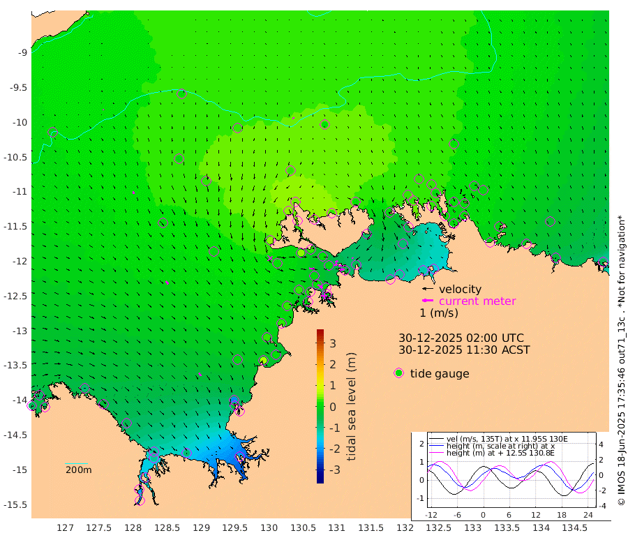 34cm/s 77T +4cm/s rms + 6cm/s 51T. Darwin_C1 52m 3cm/s 143T +4cm/s rms + 7cm/s -161T. Darwin_CW1 22m 31cm/s 73T +4cm/s rms + 8cm/s 61T. Darwin_CW2 34m 12cm/s -175T +3cm/s rms + 9cm/s 98T. Darwin_CW3 22m 25cm/s 83T +5cm/s rms + 7cm/s 88T. Darwin_C3 56m 27cm/s 65T +2cm/s rms + 9cm/s -126T. Darwin_CTbW 22m 9cm/s 161T +9cm/s rms + 2cm/s -110T. NWSLYN 196m 48cm/s 94T +1cm/s rms + 1cm/s -47T. DARBGF 30m 6cm/s 144T +7cm/s rms + 2cm/s -137T. ITFTIS 464m 22cm/s 173T +9cm/s rms + 1cm/s 74T. ITFMHB 146m 32cm/s 152T +4cm/s rms + 1cm/s -134T. ITFJBG 61m 35cm/s 140T +6cm/s rms + 4cm/s 121T. ITFFTB 108m 51cm/s 122T +4cm/s rms + 3cm/s 80T. NRSDAR 19m -72cm Carronade Island -70cm Guy Point -76cm Napier Broome Bay -81cm Lesueur Island -67cm Reveley Island -36cm Rocky Island -105cm Cape Domett -103cm Lacrosse Island -148cm Adolphus Island -193cm Pender Point -228cm Wyndham 7cm The Boxers 6cm Unnamed Shoal 15cm Loxton Shoal -84cm Pelican Island 23cm Calder Shoal 31cm Evans Shoal -191cm Quoin Island -46cm Port Keats -45cm Jones Point -203cm Catfish Island 6cm Cape Scott Offshore 59cm Cape Ford 13cm Anson Bay 33cm Goodrich Bank 23cm Peron Island North 29cm Point Jenny 29cm Native Point 24cm Fish Reef 23cm Tapa Bay 48cm Point Fawcett (Offshore) 9cm Burge Point 45cm Munkunuwa 21cm Beagle A 21cm Parsons Bank 1cm Fenton Patches 20cm Lynedoch Bank 3cm Hancox Shoal Area 2cm Nightcliff -2cm Darwin 11cm Charles Point Patches -44cm Glyde Point -90cm Chambers Bay -107cm Point Stuart -56cm Cape Hotham -83cm Christine Reef -121cm West Alligator Head -156cm East Field Island -66cm Two Hills Bay 3cm Newby Shoal -76cm Camp Point 25cm Medina Inlet South 49cm South Barlow Point 47cm St. Asaph Bay 39cm Cape Van Dieman 35cm Snake Bay 32cm Cache Point 0cm Echo Shoal 22cm Point Jahleel (Off) 3cm Cape Don 26cm Port Essington 31cm Smith Point - West 25cm NW Peacock Island 28cm North Of Jones Shoal 10cm Peacock Island 12cm Point David 29cm D'urville Point 15cm Money Shoal 10cm Copeland Island 13cm Cape Cockburn 13cm One Tree Point 7cm Hogmany Shoal 2cm New Year Island - West 7cm Grant Island -10cm Aurari Bay -15cm Cuthbert Point 2cm North Goulburn Island -30cm Paxie Shoal -37cm Entrance Island -57cm Yabooma Island