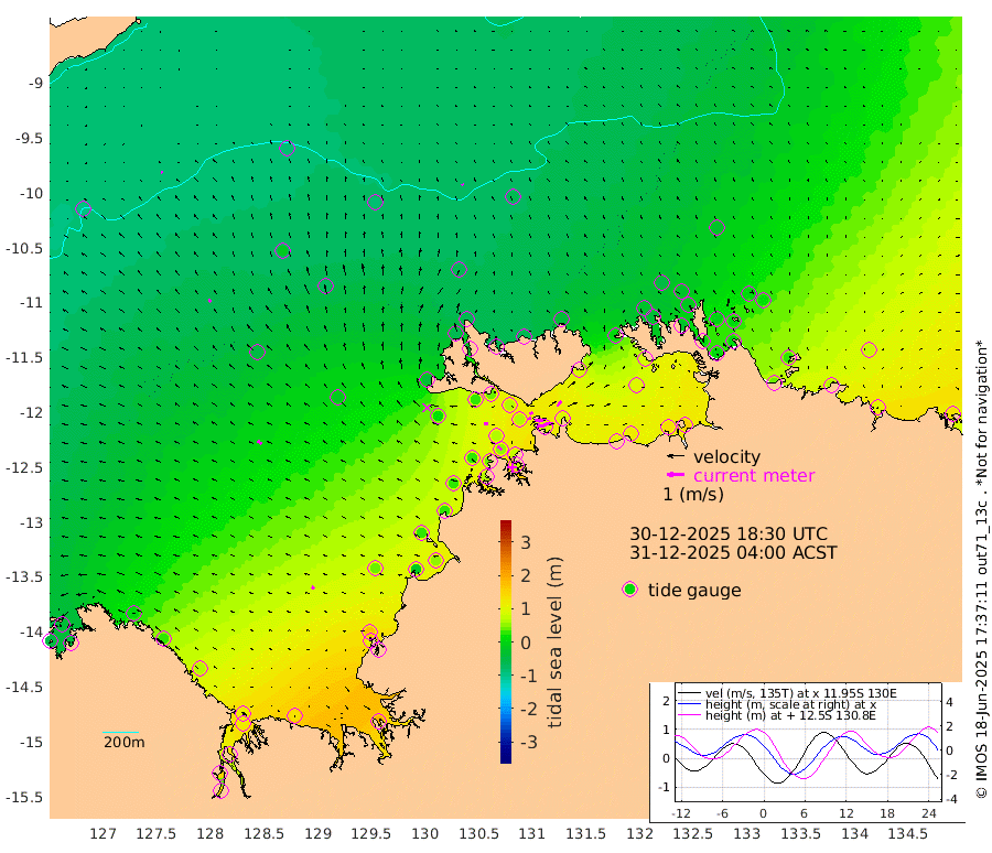 46cm/s 78T +4cm/s rms + 6cm/s 51T. Darwin_C1 52m 41cm/s 91T +4cm/s rms + 7cm/s -161T. Darwin_CW1 22m 20cm/s 71T +4cm/s rms + 8cm/s 61T. Darwin_CW2 34m 41cm/s 39T +3cm/s rms + 9cm/s 98T. Darwin_CW3 22m 44cm/s 91T +5cm/s rms + 7cm/s 88T. Darwin_C3 56m 20cm/s 65T +2cm/s rms + 9cm/s -126T. Darwin_CTbW 22m 9cm/s -28T +9cm/s rms + 2cm/s -110T. NWSLYN 196m 26cm/s -81T +1cm/s rms + 1cm/s -47T. DARBGF 30m 8cm/s -71T +7cm/s rms + 2cm/s -137T. ITFTIS 464m 19cm/s -26T +9cm/s rms + 1cm/s 74T. ITFMHB 146m 17cm/s -52T +4cm/s rms + 1cm/s -134T. ITFJBG 61m 29cm/s -55T +6cm/s rms + 4cm/s 121T. ITFFTB 108m 29cm/s -50T +4cm/s rms + 3cm/s 80T. NRSDAR 19m -39cm Carronade Island -46cm Guy Point -35cm Napier Broome Bay 9cm Lesueur Island 66cm Reveley Island 28cm Rocky Island 120cm Cape Domett 106cm Lacrosse Island 138cm Adolphus Island 146cm Pender Point 156cm Wyndham -47cm The Boxers -15cm Unnamed Shoal -90cm Loxton Shoal 124cm Pelican Island -69cm Calder Shoal -83cm Evans Shoal 184cm Quoin Island 98cm Port Keats 106cm Jones Point 172cm Catfish Island 35cm Cape Scott Offshore -12cm Cape Ford 47cm Anson Bay -67cm Goodrich Bank 25cm Peron Island North 27cm Point Jenny 27cm Native Point 33cm Fish Reef 42cm Tapa Bay -40cm Point Fawcett (Offshore) 60cm Burge Point 29cm Munkunuwa 11cm Beagle A 61cm Parsons Bank 57cm Fenton Patches -62cm Lynedoch Bank 67cm Hancox Shoal Area 68cm Nightcliff 75cm Darwin 45cm Charles Point Patches 84cm Glyde Point 102cm Chambers Bay 119cm Point Stuart 85cm Cape Hotham 94cm Christine Reef 133cm West Alligator Head 147cm East Field Island 81cm Two Hills Bay -14cm Newby Shoal 83cm Camp Point 36cm Medina Inlet South -42cm South Barlow Point -60cm St. Asaph Bay -66cm Cape Van Dieman -60cm Snake Bay -62cm Cache Point -95cm Echo Shoal -41cm Point Jahleel (Off) 5cm Cape Don -32cm Port Essington -35cm Smith Point - West -30cm NW Peacock Island -51cm North Of Jones Shoal -15cm Peacock Island 7cm Point David -27cm D'urville Point -24cm Money Shoal 11cm Copeland Island 10cm Cape Cockburn -2cm One Tree Point 13cm Hogmany Shoal 7cm New Year Island - West 10cm Grant Island 39cm Aurari Bay 57cm Cuthbert Point 29cm North Goulburn Island 74cm Paxie Shoal 94cm Entrance Island 126cm Yabooma Island