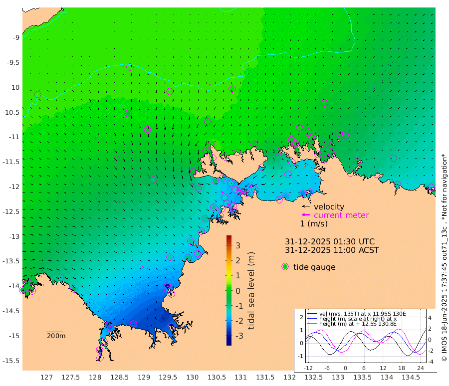 75cm/s -101T +4cm/s rms + 6cm/s 51T. Darwin_C1 52m 81cm/s -92T +4cm/s rms + 7cm/s -161T. Darwin_CW1 22m 27cm/s -104T +4cm/s rms + 8cm/s 61T. Darwin_CW2 34m 59cm/s -142T +3cm/s rms + 9cm/s 98T. Darwin_CW3 22m 66cm/s -88T +5cm/s rms + 7cm/s 88T. Darwin_C3 56m 37cm/s -116T +2cm/s rms + 9cm/s -126T. Darwin_CTbW 22m 10cm/s 175T +9cm/s rms + 2cm/s -110T. NWSLYN 196m 25cm/s 105T +1cm/s rms + 1cm/s -47T. DARBGF 30m 10cm/s 138T +7cm/s rms + 2cm/s -137T. ITFTIS 464m 19cm/s 165T +9cm/s rms + 1cm/s 74T. ITFMHB 146m 23cm/s 138T +4cm/s rms + 1cm/s -134T. ITFJBG 61m 31cm/s 134T +6cm/s rms + 4cm/s 121T. ITFFTB 108m 32cm/s 129T +4cm/s rms + 3cm/s 80T. NRSDAR 19m -58cm Carronade Island -56cm Guy Point -59cm Napier Broome Bay -123cm Lesueur Island -161cm Reveley Island -73cm Rocky Island -234cm Cape Domett -221cm Lacrosse Island -269cm Adolphus Island -265cm Pender Point -287cm Wyndham -27cm The Boxers -36cm Unnamed Shoal 25cm Loxton Shoal -230cm Pelican Island -1cm Calder Shoal 28cm Evans Shoal -317cm Quoin Island -197cm Port Keats -191cm Jones Point -303cm Catfish Island -116cm Cape Scott Offshore -98cm Cape Ford -123cm Anson Bay 14cm Goodrich Bank -102cm Peron Island North -103cm Point Jenny -102cm Native Point -110cm Fish Reef -121cm Tapa Bay -28cm Point Fawcett (Offshore) -142cm Burge Point -85cm Munkunuwa -95cm Beagle A -126cm Parsons Bank -145cm Fenton Patches 13cm Lynedoch Bank -142cm Hancox Shoal Area -149cm Nightcliff -158cm Darwin -135cm Charles Point Patches -158cm Glyde Point -177cm Chambers Bay -186cm Point Stuart -153cm Cape Hotham -168cm Christine Reef -203cm West Alligator Head -225cm East Field Island -144cm Two Hills Bay -81cm Newby Shoal -153cm Camp Point -110cm Medina Inlet South -15cm South Barlow Point 0cm St. Asaph Bay 17cm Cape Van Dieman 12cm Snake Bay 6cm Cache Point 24cm Echo Shoal -12cm Point Jahleel (Off) -58cm Cape Don -14cm Port Essington -13cm Smith Point - West -15cm NW Peacock Island 1cm North Of Jones Shoal -1cm Peacock Island -39cm Point David -17cm D'urville Point -20cm Money Shoal -42cm Copeland Island -56cm Cape Cockburn -35cm One Tree Point -60cm Hogmany Shoal -48cm New Year Island - West -48cm Grant Island -70cm Aurari Bay -89cm Cuthbert Point -62cm North Goulburn Island -103cm Paxie Shoal -121cm Entrance Island -147cm Yabooma Island