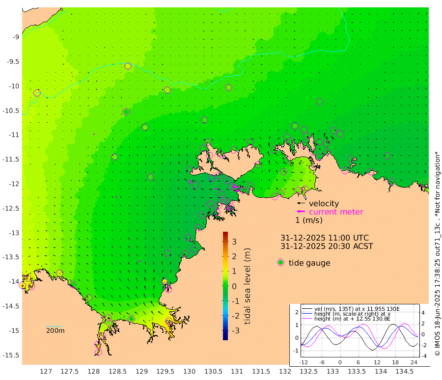 61cm/s -103T +4cm/s rms + 6cm/s 51T. Darwin_C1 52m 24cm/s -85T +4cm/s rms + 7cm/s -161T. Darwin_CW1 22m 42cm/s -110T +4cm/s rms + 8cm/s 61T. Darwin_CW2 34m 14cm/s -101T +3cm/s rms + 9cm/s 98T. Darwin_CW3 22m 41cm/s -94T +5cm/s rms + 7cm/s 88T. Darwin_C3 56m 43cm/s -116T +2cm/s rms + 9cm/s -126T. Darwin_CTbW 22m 3cm/s 68T +9cm/s rms + 2cm/s -110T. NWSLYN 196m 28cm/s -88T +1cm/s rms + 1cm/s -47T. DARBGF 30m 5cm/s 17T +7cm/s rms + 2cm/s -137T. ITFTIS 464m 10cm/s 18T +9cm/s rms + 1cm/s 74T. ITFMHB 146m 25cm/s -17T +4cm/s rms + 1cm/s -134T. ITFJBG 61m 18cm/s -22T +6cm/s rms + 4cm/s 121T. ITFFTB 108m 28cm/s -61T +4cm/s rms + 3cm/s 80T. NRSDAR 19m 119cm Carronade Island 125cm Guy Point 119cm Napier Broome Bay 93cm Lesueur Island 38cm Reveley Island 22cm Rocky Island 44cm Cape Domett 47cm Lacrosse Island 79cm Adolphus Island 118cm Pender Point 145cm Wyndham 44cm The Boxers 11cm Unnamed Shoal 69cm Loxton Shoal 20cm Pelican Island 43cm Calder Shoal 46cm Evans Shoal 89cm Quoin Island 0cm Port Keats -14cm Jones Point 96cm Catfish Island -14cm Cape Scott Offshore -21cm Cape Ford -30cm Anson Bay 31cm Goodrich Bank -24cm Peron Island North -32cm Point Jenny -32cm Native Point -33cm Fish Reef -36cm Tapa Bay -3cm Point Fawcett (Offshore) -35cm Burge Point -52cm Munkunuwa -16cm Beagle A -48cm Parsons Bank -28cm Fenton Patches 39cm Lynedoch Bank -33cm Hancox Shoal Area -35cm Nightcliff -32cm Darwin -21cm Charles Point Patches -2cm Glyde Point 31cm Chambers Bay 30cm Point Stuart 7cm Cape Hotham 30cm Christine Reef 35cm West Alligator Head 59cm East Field Island 19cm Two Hills Bay 25cm Newby Shoal 29cm Camp Point -34cm Medina Inlet South -3cm South Barlow Point 12cm St. Asaph Bay 24cm Cape Van Dieman 23cm Snake Bay 28cm Cache Point 85cm Echo Shoal 22cm Point Jahleel (Off) 9cm Cape Don 13cm Port Essington 10cm Smith Point - West 12cm NW Peacock Island 24cm North Of Jones Shoal 6cm Peacock Island -4cm Point David 6cm D'urville Point 19cm Money Shoal -6cm Copeland Island -3cm Cape Cockburn 3cm One Tree Point 3cm Hogmany Shoal 7cm New Year Island - West 1cm Grant Island -9cm Aurari Bay -11cm Cuthbert Point -7cm North Goulburn Island -9cm Paxie Shoal -18cm Entrance Island -22cm Yabooma Island