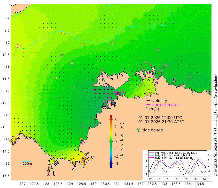 80cm/s -103T +4cm/s rms + 6cm/s 51T. Darwin_C1 52m 41cm/s -87T +4cm/s rms + 7cm/s -161T. Darwin_CW1 22m 49cm/s -110T +4cm/s rms + 8cm/s 61T. Darwin_CW2 34m 20cm/s -108T +3cm/s rms + 9cm/s 98T. Darwin_CW3 22m 43cm/s -94T +5cm/s rms + 7cm/s 88T. Darwin_C3 56m 54cm/s -116T +2cm/s rms + 9cm/s -126T. Darwin_CTbW 22m 3cm/s 90T +9cm/s rms + 2cm/s -110T. NWSLYN 196m 37cm/s -87T +1cm/s rms + 1cm/s -47T. DARBGF 30m 6cm/s 10T +7cm/s rms + 2cm/s -137T. ITFTIS 464m 13cm/s 13T +9cm/s rms + 1cm/s 74T. ITFMHB 146m 31cm/s -20T +4cm/s rms + 1cm/s -134T. ITFJBG 61m 24cm/s -27T +6cm/s rms + 4cm/s 121T. ITFFTB 108m 36cm/s -60T +4cm/s rms + 3cm/s 80T. NRSDAR 19m 138cm Carronade Island 146cm Guy Point 143cm Napier Broome Bay 104cm Lesueur Island 44cm Reveley Island 29cm Rocky Island 56cm Cape Domett 55cm Lacrosse Island 95cm Adolphus Island 150cm Pender Point 182cm Wyndham 48cm The Boxers 11cm Unnamed Shoal 76cm Loxton Shoal 24cm Pelican Island 45cm Calder Shoal 49cm Evans Shoal 110cm Quoin Island -1cm Port Keats -18cm Jones Point 120cm Catfish Island -20cm Cape Scott Offshore -39cm Cape Ford -38cm Anson Bay 31cm Goodrich Bank -32cm Peron Island North -41cm Point Jenny -41cm Native Point -44cm Fish Reef -45cm Tapa Bay -9cm Point Fawcett (Offshore) -43cm Burge Point -64cm Munkunuwa -27cm Beagle A -55cm Parsons Bank -40cm Fenton Patches 42cm Lynedoch Bank -40cm Hancox Shoal Area -44cm Nightcliff -39cm Darwin -29cm Charles Point Patches -2cm Glyde Point 42cm Chambers Bay 42cm Point Stuart 10cm Cape Hotham 40cm Christine Reef 48cm West Alligator Head 75cm East Field Island 26cm Two Hills Bay 24cm Newby Shoal 37cm Camp Point -43cm Medina Inlet South -8cm South Barlow Point 8cm St. Asaph Bay 23cm Cape Van Dieman 23cm Snake Bay 29cm Cache Point 93cm Echo Shoal 22cm Point Jahleel (Off) 12cm Cape Don 14cm Port Essington 11cm Smith Point - West 14cm NW Peacock Island 27cm North Of Jones Shoal 7cm Peacock Island -1cm Point David 6cm D'urville Point 23cm Money Shoal -3cm Copeland Island 2cm Cape Cockburn 7cm One Tree Point 9cm Hogmany Shoal 11cm New Year Island - West 5cm Grant Island -6cm Aurari Bay -5cm Cuthbert Point -1cm North Goulburn Island 1cm Paxie Shoal -7cm Entrance Island -9cm Yabooma Island