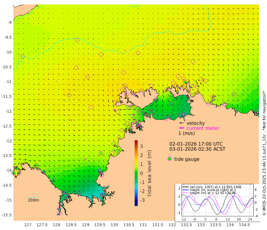 3cm/s 78T +4cm/s rms + 6cm/s 51T. Darwin_C1 52m 27cm/s -85T +4cm/s rms + 7cm/s -161T. Darwin_CW1 22m 4cm/s 98T +4cm/s rms + 8cm/s 61T. Darwin_CW2 34m 35cm/s -142T +3cm/s rms + 9cm/s 98T. Darwin_CW3 22m 17cm/s -89T +5cm/s rms + 7cm/s 88T. Darwin_C3 56m 24cm/s 59T +2cm/s rms + 9cm/s -126T. Darwin_CTbW 22m 11cm/s 140T +9cm/s rms + 2cm/s -110T. NWSLYN 196m 43cm/s 96T +1cm/s rms + 1cm/s -47T. DARBGF 30m 11cm/s 33T +7cm/s rms + 2cm/s -137T. ITFTIS 464m 11cm/s 73T +9cm/s rms + 1cm/s 74T. ITFMHB 146m 26cm/s 131T +4cm/s rms + 1cm/s -134T. ITFJBG 61m 30cm/s 113T +6cm/s rms + 4cm/s 121T. ITFFTB 108m 43cm/s 128T +4cm/s rms + 3cm/s 80T. NRSDAR 19m 21cm Carronade Island 12cm Guy Point 27cm Napier Broome Bay 23cm Lesueur Island -29cm Reveley Island -15cm Rocky Island -73cm Cape Domett -59cm Lacrosse Island -113cm Adolphus Island -150cm Pender Point -159cm Wyndham 89cm The Boxers 112cm Unnamed Shoal 80cm Loxton Shoal -66cm Pelican Island 90cm Calder Shoal 82cm Evans Shoal -160cm Quoin Island -19cm Port Keats -16cm Jones Point -113cm Catfish Island 36cm Cape Scott Offshore 93cm Cape Ford 45cm Anson Bay 95cm Goodrich Bank 58cm Peron Island North 60cm Point Jenny 62cm Native Point 61cm Fish Reef 51cm Tapa Bay 96cm Point Fawcett (Offshore) 43cm Burge Point 48cm Munkunuwa 72cm Beagle A 43cm Parsons Bank 44cm Fenton Patches 86cm Lynedoch Bank 28cm Hancox Shoal Area 28cm Nightcliff 37cm Darwin 58cm Charles Point Patches 5cm Glyde Point -51cm Chambers Bay -56cm Point Stuart -8cm Cape Hotham -44cm Christine Reef -74cm West Alligator Head -97cm East Field Island -15cm Two Hills Bay 93cm Newby Shoal -17cm Camp Point 56cm Medina Inlet South 99cm South Barlow Point 95cm St. Asaph Bay 100cm Cape Van Dieman 104cm Snake Bay 97cm Cache Point 68cm Echo Shoal 81cm Point Jahleel (Off) 60cm Cape Don 91cm Port Essington 90cm Smith Point - West 91cm NW Peacock Island 92cm North Of Jones Shoal 33cm Peacock Island 84cm Point David 94cm D'urville Point 90cm Money Shoal 78cm Copeland Island 104cm Cape Cockburn 85cm One Tree Point 95cm Hogmany Shoal 86cm New Year Island - West 84cm Grant Island 67cm Aurari Bay 60cm Cuthbert Point 72cm North Goulburn Island 42cm Paxie Shoal 30cm Entrance Island 3cm Yabooma Island