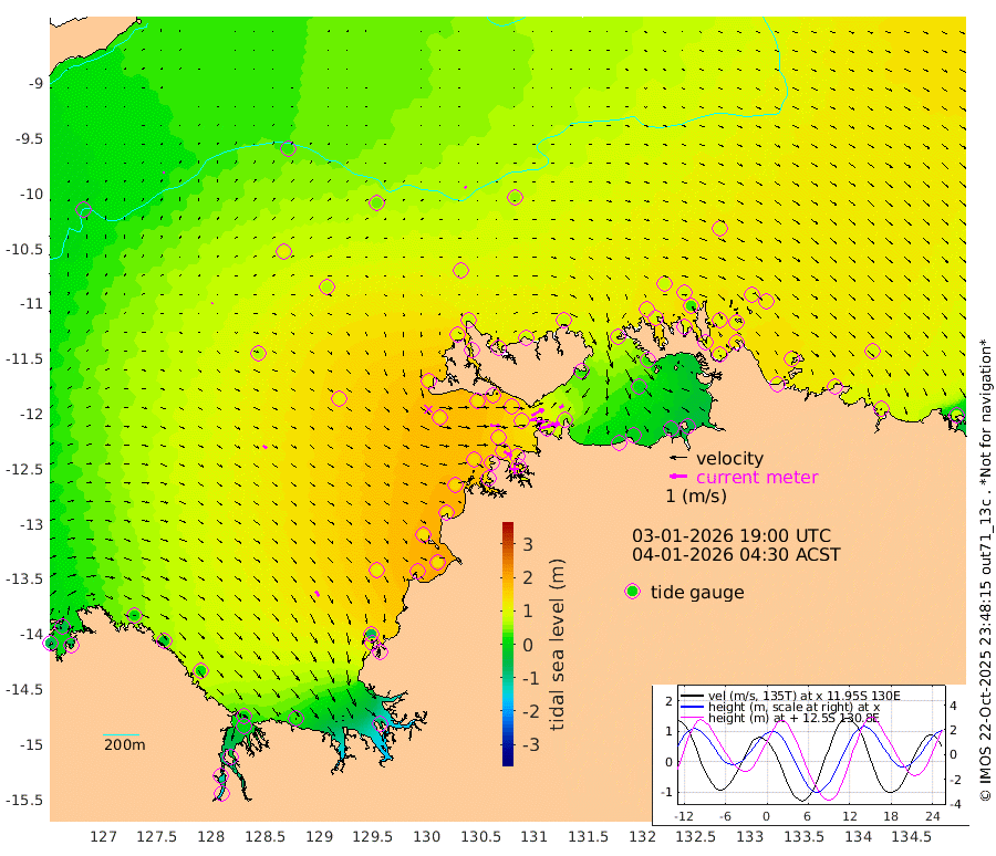114cm/s 78T +4cm/s rms + 6cm/s 51T. Darwin_C1 52m 69cm/s 83T +4cm/s rms + 7cm/s -161T. Darwin_CW1 22m 41cm/s 77T +4cm/s rms + 8cm/s 61T. Darwin_CW2 34m 28cm/s 59T +3cm/s rms + 9cm/s 98T. Darwin_CW3 22m 40cm/s 87T +5cm/s rms + 7cm/s 88T. Darwin_C3 56m 78cm/s 62T +2cm/s rms + 9cm/s -126T. Darwin_CTbW 22m 9cm/s 134T +9cm/s rms + 2cm/s -110T. NWSLYN 196m 54cm/s 92T +1cm/s rms + 1cm/s -47T. DARBGF 30m 10cm/s 15T +7cm/s rms + 2cm/s -137T. ITFTIS 464m 7cm/s 61T +9cm/s rms + 1cm/s 74T. ITFMHB 146m 34cm/s 149T +4cm/s rms + 1cm/s -134T. ITFJBG 61m 27cm/s 122T +6cm/s rms + 4cm/s 121T. ITFFTB 108m 52cm/s 121T +4cm/s rms + 3cm/s 80T. NRSDAR 19m -55cm Carronade Island -65cm Guy Point -54cm Napier Broome Bay 2cm Lesueur Island 16cm Reveley Island -15cm Rocky Island 4cm Cape Domett 8cm Lacrosse Island -44cm Adolphus Island -121cm Pender Point -148cm Wyndham 67cm The Boxers 109cm Unnamed Shoal 23cm Loxton Shoal 32cm Pelican Island 59cm Calder Shoal 42cm Evans Shoal -70cm Quoin Island 84cm Port Keats 89cm Jones Point -58cm Catfish Island 107cm Cape Scott Offshore 179cm Cape Ford 133cm Anson Bay 69cm Goodrich Bank 131cm Peron Island North 135cm Point Jenny 136cm Native Point 143cm Fish Reef 140cm Tapa Bay 119cm Point Fawcett (Offshore) 140cm Burge Point 134cm Munkunuwa 130cm Beagle A 142cm Parsons Bank 134cm Fenton Patches 54cm Lynedoch Bank 123cm Hancox Shoal Area 127cm Nightcliff 143cm Darwin 149cm Charles Point Patches 77cm Glyde Point -3cm Chambers Bay -7cm Point Stuart 52cm Cape Hotham 0cm Christine Reef -23cm West Alligator Head -55cm East Field Island 28cm Two Hills Bay 107cm Newby Shoal 26cm Camp Point 141cm Medina Inlet South 115cm South Barlow Point 94cm St. Asaph Bay 78cm Cape Van Dieman 85cm Snake Bay 76cm Cache Point -2cm Echo Shoal 72cm Point Jahleel (Off) 79cm Cape Don 90cm Port Essington 89cm Smith Point - West 89cm NW Peacock Island 78cm North Of Jones Shoal 30cm Peacock Island 100cm Point David 96cm D'urville Point 86cm Money Shoal 98cm Copeland Island 126cm Cape Cockburn 97cm One Tree Point 115cm Hogmany Shoal 97cm New Year Island - West 99cm Grant Island 98cm Aurari Bay 99cm Cuthbert Point 100cm North Goulburn Island 88cm Paxie Shoal 80cm Entrance Island 69cm Yabooma Island
