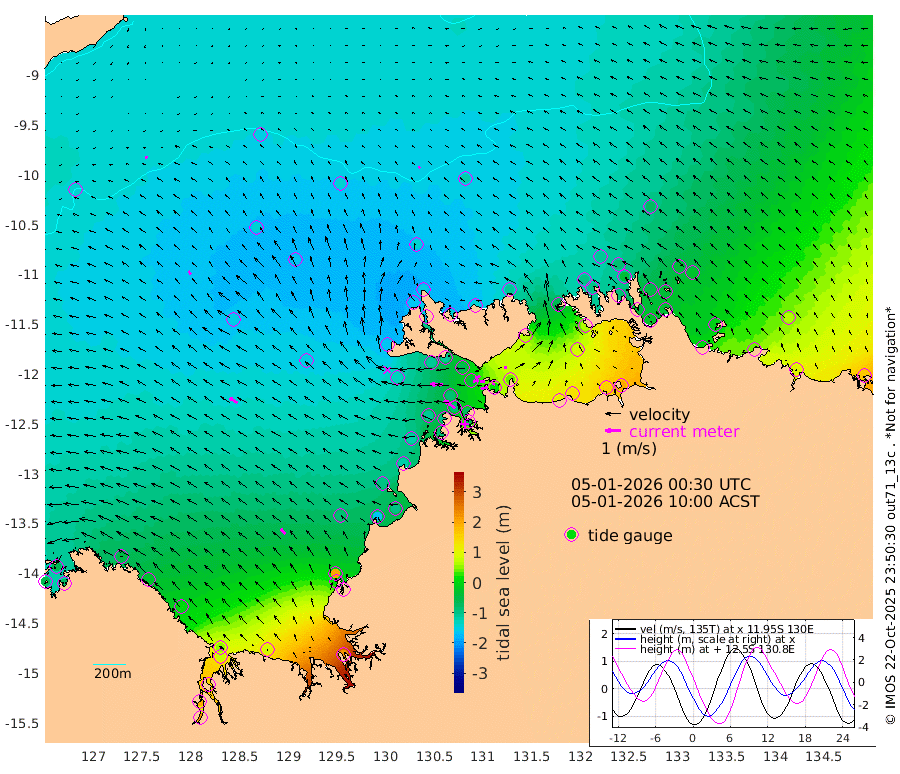 48cm/s -104T +4cm/s rms + 6cm/s 51T. Darwin_C1 52m 18cm/s -77T +4cm/s rms + 7cm/s -161T. Darwin_CW1 22m 33cm/s -104T +4cm/s rms + 8cm/s 61T. Darwin_CW2 34m 15cm/s 9T +3cm/s rms + 9cm/s 98T. Darwin_CW3 22m 30cm/s -94T +5cm/s rms + 7cm/s 88T. Darwin_C3 56m 36cm/s -116T +2cm/s rms + 9cm/s -126T. Darwin_CTbW 22m 14cm/s -35T +9cm/s rms + 2cm/s -110T. NWSLYN 196m 80cm/s -88T +1cm/s rms + 1cm/s -47T. DARBGF 30m 15cm/s -114T +7cm/s rms + 2cm/s -137T. ITFTIS 464m 26cm/s -40T +9cm/s rms + 1cm/s 74T. ITFMHB 146m 43cm/s -39T +4cm/s rms + 1cm/s -134T. ITFJBG 61m 57cm/s -57T +6cm/s rms + 4cm/s 121T. ITFFTB 108m 86cm/s -55T +4cm/s rms + 3cm/s 80T. NRSDAR 19m -65cm Carronade Island -62cm Guy Point -76cm Napier Broome Bay -49cm Lesueur Island 9cm Reveley Island -31cm Rocky Island 78cm Cape Domett 52cm Lacrosse Island 152cm Adolphus Island 198cm Pender Point 227cm Wyndham -147cm The Boxers -143cm Unnamed Shoal -152cm Loxton Shoal 81cm Pelican Island -166cm Calder Shoal -142cm Evans Shoal 217cm Quoin Island 4cm Port Keats 18cm Jones Point 201cm Catfish Island -86cm Cape Scott Offshore -161cm Cape Ford -91cm Anson Bay -141cm Goodrich Bank -100cm Peron Island North -116cm Point Jenny -119cm Native Point -109cm Fish Reef -101cm Tapa Bay -166cm Point Fawcett (Offshore) -84cm Burge Point -111cm Munkunuwa -132cm Beagle A -64cm Parsons Bank -84cm Fenton Patches -123cm Lynedoch Bank -44cm Hancox Shoal Area -69cm Nightcliff -56cm Darwin -90cm Charles Point Patches 12cm Glyde Point 104cm Chambers Bay 129cm Point Stuart 43cm Cape Hotham 86cm Christine Reef 152cm West Alligator Head 193cm East Field Island 61cm Two Hills Bay -155cm Newby Shoal 57cm Camp Point -106cm Medina Inlet South -159cm South Barlow Point -164cm St. Asaph Bay -147cm Cape Van Dieman -146cm Snake Bay -138cm Cache Point -140cm Echo Shoal -109cm Point Jahleel (Off) -57cm Cape Don -93cm Port Essington -97cm Smith Point - West -86cm NW Peacock Island -110cm North Of Jones Shoal -35cm Peacock Island -36cm Point David -85cm D'urville Point -72cm Money Shoal -25cm Copeland Island -41cm Cape Cockburn -48cm One Tree Point -25cm Hogmany Shoal -42cm New Year Island - West -34cm Grant Island 7cm Aurari Bay 40cm Cuthbert Point -1cm North Goulburn Island 58cm Paxie Shoal 99cm Entrance Island 164cm Yabooma Island