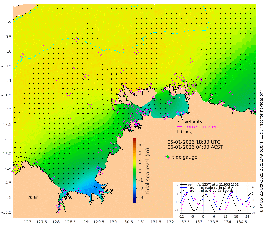 59cm/s -101T +4cm/s rms + 6cm/s 51T. Darwin_C1 52m 54cm/s -90T +4cm/s rms + 7cm/s -161T. Darwin_CW1 22m 31cm/s -108T +4cm/s rms + 8cm/s 61T. Darwin_CW2 34m 68cm/s -139T +3cm/s rms + 9cm/s 98T. Darwin_CW3 22m 65cm/s -91T +5cm/s rms + 7cm/s 88T. Darwin_C3 56m 16cm/s -113T +2cm/s rms + 9cm/s -126T. Darwin_CTbW 22m 16cm/s 146T +9cm/s rms + 2cm/s -110T. NWSLYN 196m 39cm/s 100T +1cm/s rms + 1cm/s -47T. DARBGF 30m 14cm/s 46T +7cm/s rms + 2cm/s -137T. ITFTIS 464m 15cm/s 82T +9cm/s rms + 1cm/s 74T. ITFMHB 146m 27cm/s 115T +4cm/s rms + 1cm/s -134T. ITFJBG 61m 36cm/s 108T +6cm/s rms + 4cm/s 121T. ITFFTB 108m 42cm/s 133T +4cm/s rms + 3cm/s 80T. NRSDAR 19m 46cm Carronade Island 44cm Guy Point 55cm Napier Broome Bay -1cm Lesueur Island -95cm Reveley Island -65cm Rocky Island -173cm Cape Domett -147cm Lacrosse Island -222cm Adolphus Island -224cm Pender Point -229cm Wyndham 83cm The Boxers 92cm Unnamed Shoal 108cm Loxton Shoal -177cm Pelican Island 94cm Calder Shoal 98cm Evans Shoal -276cm Quoin Island -121cm Port Keats -125cm Jones Point -229cm Catfish Island -31cm Cape Scott Offshore 5cm Cape Ford -29cm Anson Bay 99cm Goodrich Bank -19cm Peron Island North -11cm Point Jenny -7cm Native Point -22cm Fish Reef -28cm Tapa Bay 66cm Point Fawcett (Offshore) -49cm Burge Point -25cm Munkunuwa 6cm Beagle A -52cm Parsons Bank -49cm Fenton Patches 94cm Lynedoch Bank -63cm Hancox Shoal Area -60cm Nightcliff -65cm Darwin -29cm Charles Point Patches -81cm Glyde Point -128cm Chambers Bay -139cm Point Stuart -88cm Cape Hotham -113cm Christine Reef -163cm West Alligator Head -183cm East Field Island -87cm Two Hills Bay 50cm Newby Shoal -78cm Camp Point -24cm Medina Inlet South 74cm South Barlow Point 86cm St. Asaph Bay 102cm Cape Van Dieman 103cm Snake Bay 94cm Cache Point 105cm Echo Shoal 68cm Point Jahleel (Off) 21cm Cape Don 70cm Port Essington 67cm Smith Point - West 68cm NW Peacock Island 86cm North Of Jones Shoal 29cm Peacock Island 48cm Point David 66cm D'urville Point 73cm Money Shoal 40cm Copeland Island 52cm Cape Cockburn 52cm One Tree Point 46cm Hogmany Shoal 50cm New Year Island - West 43cm Grant Island 16cm Aurari Bay -6cm Cuthbert Point 21cm North Goulburn Island -13cm Paxie Shoal -50cm Entrance Island -84cm Yabooma Island