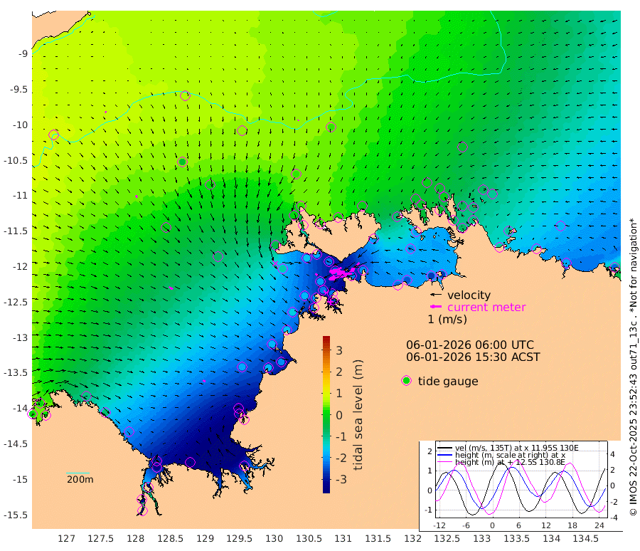 169cm/s -101T +4cm/s rms + 6cm/s 51T. Darwin_C1 52m 136cm/s -92T +4cm/s rms + 7cm/s -161T. Darwin_CW1 22m 76cm/s -106T +4cm/s rms + 8cm/s 61T. Darwin_CW2 34m 112cm/s -137T +3cm/s rms + 9cm/s 98T. Darwin_CW3 22m 144cm/s -90T +5cm/s rms + 7cm/s 88T. Darwin_C3 56m 84cm/s -116T +2cm/s rms + 9cm/s -126T. Darwin_CTbW 22m 5cm/s -138T +9cm/s rms + 2cm/s -110T. NWSLYN 196m 22cm/s 117T +1cm/s rms + 1cm/s -47T. DARBGF 30m 13cm/s 126T +7cm/s rms + 2cm/s -137T. ITFTIS 464m 22cm/s 148T +9cm/s rms + 1cm/s 74T. ITFMHB 146m 26cm/s 115T +4cm/s rms + 1cm/s -134T. ITFJBG 61m 40cm/s 123T +6cm/s rms + 4cm/s 121T. ITFFTB 108m 34cm/s 140T +4cm/s rms + 3cm/s 80T. NRSDAR 19m 10cm Carronade Island 7cm Guy Point 4cm Napier Broome Bay -97cm Lesueur Island -211cm Reveley Island -84cm Rocky Island -327cm Cape Domett -289cm Lacrosse Island -352cm Adolphus Island -342cm Pender Point -338cm Wyndham -10cm The Boxers -28cm Unnamed Shoal 60cm Loxton Shoal -336cm Pelican Island 21cm Calder Shoal 48cm Evans Shoal -438cm Quoin Island -299cm Port Keats -293cm Jones Point -392cm Catfish Island -184cm Cape Scott Offshore -175cm Cape Ford -203cm Anson Bay 31cm Goodrich Bank -175cm Peron Island North -160cm Point Jenny -157cm Native Point -177cm Fish Reef -194cm Tapa Bay -54cm Point Fawcett (Offshore) -222cm Burge Point -168cm Munkunuwa -119cm Beagle A -222cm Parsons Bank -199cm Fenton Patches 31cm Lynedoch Bank -226cm Hancox Shoal Area -222cm Nightcliff -258cm Darwin -222cm Charles Point Patches -223cm Glyde Point -231cm Chambers Bay -242cm Point Stuart -211cm Cape Hotham -208cm Christine Reef -262cm West Alligator Head -269cm East Field Island -196cm Two Hills Bay -75cm Newby Shoal -193cm Camp Point -191cm Medina Inlet South -33cm South Barlow Point 0cm St. Asaph Bay 30cm Cape Van Dieman 19cm Snake Bay 18cm Cache Point 83cm Echo Shoal -10cm Point Jahleel (Off) -89cm Cape Don -29cm Port Essington -21cm Smith Point - West -24cm NW Peacock Island -1cm North Of Jones Shoal -4cm Peacock Island -70cm Point David -29cm D'urville Point -30cm Money Shoal -74cm Copeland Island -98cm Cape Cockburn -67cm One Tree Point -105cm Hogmany Shoal -69cm New Year Island - West -79cm Grant Island -104cm Aurari Bay -143cm Cuthbert Point -112cm North Goulburn Island -172cm Paxie Shoal -190cm Entrance Island -232cm Yabooma Island