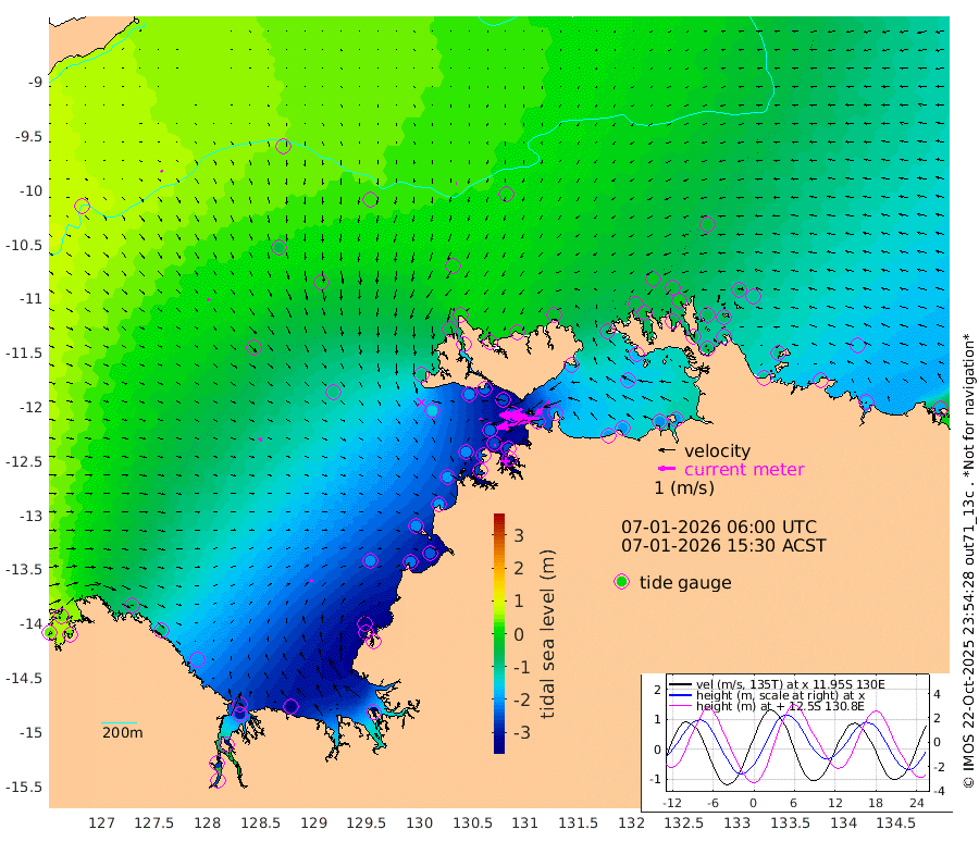 204cm/s -101T +4cm/s rms + 6cm/s 51T. Darwin_C1 52m 153cm/s -91T +4cm/s rms + 7cm/s -161T. Darwin_CW1 22m 100cm/s -106T +4cm/s rms + 8cm/s 61T. Darwin_CW2 34m 111cm/s -135T +3cm/s rms + 9cm/s 98T. Darwin_CW3 22m 168cm/s -90T +5cm/s rms + 7cm/s 88T. Darwin_C3 56m 110cm/s -115T +2cm/s rms + 9cm/s -126T. Darwin_CTbW 22m 4cm/s -105T +9cm/s rms + 2cm/s -110T. NWSLYN 196m 15cm/s -125T +1cm/s rms + 1cm/s -47T. DARBGF 30m 11cm/s 131T +7cm/s rms + 2cm/s -137T. ITFTIS 464m 13cm/s 140T +9cm/s rms + 1cm/s 74T. ITFMHB 146m 14cm/s 72T +4cm/s rms + 1cm/s -134T. ITFJBG 61m 22cm/s 114T +6cm/s rms + 4cm/s 121T. ITFFTB 108m 11cm/s -146T +4cm/s rms + 3cm/s 80T. NRSDAR 19m 42cm Carronade Island 42cm Guy Point 36cm Napier Broome Bay -76cm Lesueur Island -197cm Reveley Island -89cm Rocky Island -298cm Cape Domett -264cm Lacrosse Island -299cm Adolphus Island -261cm Pender Point -239cm Wyndham -30cm The Boxers -56cm Unnamed Shoal 44cm Loxton Shoal -317cm Pelican Island -4cm Calder Shoal 28cm Evans Shoal -372cm Quoin Island -302cm Port Keats -297cm Jones Point -325cm Catfish Island -211cm Cape Scott Offshore -214cm Cape Ford -237cm Anson Bay 8cm Goodrich Bank -209cm Peron Island North -194cm Point Jenny -192cm Native Point -213cm Fish Reef -228cm Tapa Bay -94cm Point Fawcett (Offshore) -249cm Burge Point -212cm Munkunuwa -153cm Beagle A -252cm Parsons Bank -225cm Fenton Patches 14cm Lynedoch Bank -247cm Hancox Shoal Area -248cm Nightcliff -284cm Darwin -252cm Charles Point Patches -219cm Glyde Point -194cm Chambers Bay -198cm Point Stuart -197cm Cape Hotham -171cm Christine Reef -212cm West Alligator Head -200cm East Field Island -173cm Two Hills Bay -98cm Newby Shoal -167cm Camp Point -229cm Medina Inlet South -72cm South Barlow Point -36cm St. Asaph Bay 3cm Cape Van Dieman -9cm Snake Bay -4cm Cache Point 75cm Echo Shoal -28cm Point Jahleel (Off) -97cm Cape Don -46cm Port Essington -39cm Smith Point - West -38cm NW Peacock Island -19cm North Of Jones Shoal -10cm Peacock Island -76cm Point David -45cm D'urville Point -38cm Money Shoal -78cm Copeland Island -103cm Cape Cockburn -74cm One Tree Point -104cm Hogmany Shoal -74cm New Year Island - West -82cm Grant Island -102cm Aurari Bay -130cm Cuthbert Point -110cm North Goulburn Island -153cm Paxie Shoal -162cm Entrance Island -188cm Yabooma Island