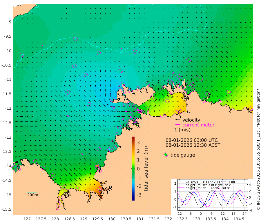 77cm/s -103T +4cm/s rms + 6cm/s 51T. Darwin_C1 52m 55cm/s -86T +4cm/s rms + 7cm/s -161T. Darwin_CW1 22m 48cm/s -109T +4cm/s rms + 8cm/s 61T. Darwin_CW2 34m 17cm/s -93T +3cm/s rms + 9cm/s 98T. Darwin_CW3 22m 49cm/s -93T +5cm/s rms + 7cm/s 88T. Darwin_C3 56m 45cm/s -117T +2cm/s rms + 9cm/s -126T. Darwin_CTbW 22m 10cm/s -33T +9cm/s rms + 2cm/s -110T. NWSLYN 196m 67cm/s -88T +1cm/s rms + 1cm/s -47T. DARBGF 30m 13cm/s -124T +7cm/s rms + 2cm/s -137T. ITFTIS 464m 15cm/s -51T +9cm/s rms + 1cm/s 74T. ITFMHB 146m 39cm/s -36T +4cm/s rms + 1cm/s -134T. ITFJBG 61m 44cm/s -58T +6cm/s rms + 4cm/s 121T. ITFFTB 108m 67cm/s -57T +4cm/s rms + 3cm/s 80T. NRSDAR 19m 6cm Carronade Island 10cm Guy Point -3cm Napier Broome Bay -12cm Lesueur Island 10cm Reveley Island -29cm Rocky Island 59cm Cape Domett 45cm Lacrosse Island 121cm Adolphus Island 178cm Pender Point 219cm Wyndham -109cm The Boxers -122cm Unnamed Shoal -103cm Loxton Shoal 52cm Pelican Island -119cm Calder Shoal -96cm Evans Shoal 176cm Quoin Island -26cm Port Keats -11cm Jones Point 218cm Catfish Island -82cm Cape Scott Offshore -148cm Cape Ford -95cm Anson Bay -108cm Goodrich Bank -92cm Peron Island North -108cm Point Jenny -114cm Native Point -103cm Fish Reef -105cm Tapa Bay -131cm Point Fawcett (Offshore) -92cm Burge Point -117cm Munkunuwa -118cm Beagle A -80cm Parsons Bank -92cm Fenton Patches -92cm Lynedoch Bank -60cm Hancox Shoal Area -80cm Nightcliff -78cm Darwin -100cm Charles Point Patches 0cm Glyde Point 99cm Chambers Bay 122cm Point Stuart 37cm Cape Hotham 83cm Christine Reef 144cm West Alligator Head 184cm East Field Island 62cm Two Hills Bay -122cm Newby Shoal 48cm Camp Point -110cm Medina Inlet South -136cm South Barlow Point -130cm St. Asaph Bay -114cm Cape Van Dieman -117cm Snake Bay -100cm Cache Point -82cm Echo Shoal -80cm Point Jahleel (Off) -41cm Cape Don -71cm Port Essington -72cm Smith Point - West -64cm NW Peacock Island -77cm North Of Jones Shoal -25cm Peacock Island -31cm Point David -65cm D'urville Point -54cm Money Shoal -22cm Copeland Island -28cm Cape Cockburn -37cm One Tree Point -17cm Hogmany Shoal -34cm New Year Island - West -28cm Grant Island 2cm Aurari Bay 32cm Cuthbert Point -1cm North Goulburn Island 46cm Paxie Shoal 81cm Entrance Island 140cm Yabooma Island