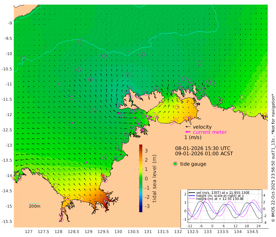 52cm/s -102T +4cm/s rms + 6cm/s 51T. Darwin_C1 52m 34cm/s -88T +4cm/s rms + 7cm/s -161T. Darwin_CW1 22m 23cm/s -112T +4cm/s rms + 8cm/s 61T. Darwin_CW2 34m 8cm/s -43T +3cm/s rms + 9cm/s 98T. Darwin_CW3 22m 6cm/s -124T +5cm/s rms + 7cm/s 88T. Darwin_C3 56m 29cm/s -117T +2cm/s rms + 9cm/s -126T. Darwin_CTbW 22m 7cm/s -28T +9cm/s rms + 2cm/s -110T. NWSLYN 196m 59cm/s -85T +1cm/s rms + 1cm/s -47T. DARBGF 30m 7cm/s -77T +7cm/s rms + 2cm/s -137T. ITFTIS 464m 18cm/s -26T +9cm/s rms + 1cm/s 74T. ITFMHB 146m 43cm/s -33T +4cm/s rms + 1cm/s -134T. ITFJBG 61m 44cm/s -50T +6cm/s rms + 4cm/s 121T. ITFFTB 108m 59cm/s -55T +4cm/s rms + 3cm/s 80T. NRSDAR 19m 83cm Carronade Island 85cm Guy Point 96cm Napier Broome Bay 73cm Lesueur Island 89cm Reveley Island 81cm Rocky Island 148cm Cape Domett 128cm Lacrosse Island 192cm Adolphus Island 279cm Pender Point 312cm Wyndham -27cm The Boxers -39cm Unnamed Shoal -36cm Loxton Shoal 118cm Pelican Island -48cm Calder Shoal -50cm Evans Shoal 250cm Quoin Island 52cm Port Keats 60cm Jones Point 278cm Catfish Island -16cm Cape Scott Offshore -64cm Cape Ford -31cm Anson Bay -60cm Goodrich Bank -35cm Peron Island North -41cm Point Jenny -42cm Native Point -38cm Fish Reef -36cm Tapa Bay -73cm Point Fawcett (Offshore) -18cm Burge Point -51cm Munkunuwa -50cm Beagle A -24cm Parsons Bank -22cm Fenton Patches -46cm Lynedoch Bank -10cm Hancox Shoal Area -22cm Nightcliff -8cm Darwin -29cm Charles Point Patches 50cm Glyde Point 126cm Chambers Bay 149cm Point Stuart 69cm Cape Hotham 113cm Christine Reef 172cm West Alligator Head 209cm East Field Island 91cm Two Hills Bay -33cm Newby Shoal 88cm Camp Point -38cm Medina Inlet South -80cm South Barlow Point -78cm St. Asaph Bay -67cm Cape Van Dieman -67cm Snake Bay -57cm Cache Point -25cm Echo Shoal -43cm Point Jahleel (Off) -7cm Cape Don -44cm Port Essington -50cm Smith Point - West -45cm NW Peacock Island -55cm North Of Jones Shoal -19cm Peacock Island -28cm Point David -49cm D'urville Point -39cm Money Shoal -26cm Copeland Island -31cm Cape Cockburn -29cm One Tree Point -14cm Hogmany Shoal -22cm New Year Island - West -20cm Grant Island -9cm Aurari Bay 18cm Cuthbert Point -8cm North Goulburn Island 36cm Paxie Shoal 56cm Entrance Island 81cm Yabooma Island