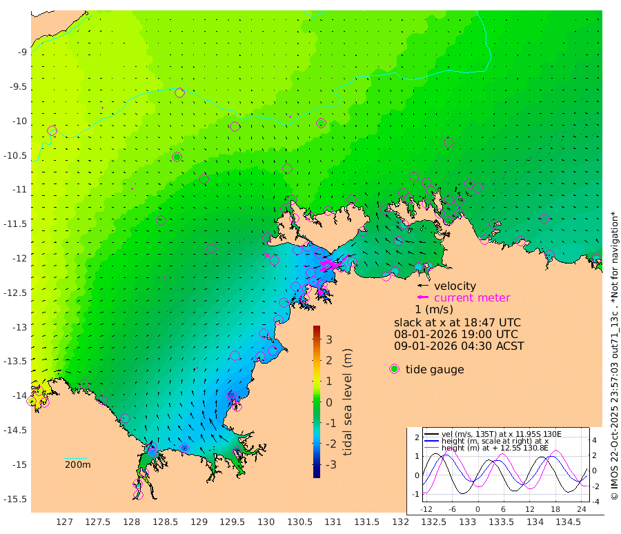 157cm/s -101T +4cm/s rms + 6cm/s 51T. Darwin_C1 52m 108cm/s -91T +4cm/s rms + 7cm/s -161T. Darwin_CW1 22m 79cm/s -106T +4cm/s rms + 8cm/s 61T. Darwin_CW2 34m 80cm/s -136T +3cm/s rms + 9cm/s 98T. Darwin_CW3 22m 127cm/s -91T +5cm/s rms + 7cm/s 88T. Darwin_C3 56m 86cm/s -116T +2cm/s rms + 9cm/s -126T. Darwin_CTbW 22m 9cm/s 158T +9cm/s rms + 2cm/s -110T. NWSLYN 196m 20cm/s -105T +1cm/s rms + 1cm/s -47T. DARBGF 30m 9cm/s 53T +7cm/s rms + 2cm/s -137T. ITFTIS 464m 12cm/s 50T +9cm/s rms + 1cm/s 74T. ITFMHB 146m 16cm/s 29T +4cm/s rms + 1cm/s -134T. ITFJBG 61m 14cm/s 70T +6cm/s rms + 4cm/s 121T. ITFFTB 108m 15cm/s -93T +4cm/s rms + 3cm/s 80T. NRSDAR 19m 73cm Carronade Island 76cm Guy Point 82cm Napier Broome Bay -22cm Lesueur Island -122cm Reveley Island -68cm Rocky Island -197cm Cape Domett -175cm Lacrosse Island -215cm Adolphus Island -138cm Pender Point -123cm Wyndham 9cm The Boxers 2cm Unnamed Shoal 61cm Loxton Shoal -223cm Pelican Island 18cm Calder Shoal 37cm Evans Shoal -256cm Quoin Island -208cm Port Keats -205cm Jones Point -234cm Catfish Island -145cm Cape Scott Offshore -136cm Cape Ford -162cm Anson Bay 24cm Goodrich Bank -153cm Peron Island North -137cm Point Jenny -132cm Native Point -159cm Fish Reef -158cm Tapa Bay -59cm Point Fawcett (Offshore) -176cm Burge Point -152cm Munkunuwa -117cm Beagle A -181cm Parsons Bank -171cm Fenton Patches 32cm Lynedoch Bank -178cm Hancox Shoal Area -185cm Nightcliff -198cm Darwin -171cm Charles Point Patches -151cm Glyde Point -137cm Chambers Bay -134cm Point Stuart -138cm Cape Hotham -119cm Christine Reef -146cm West Alligator Head -136cm East Field Island -119cm Two Hills Bay -58cm Newby Shoal -101cm Camp Point -160cm Medina Inlet South -43cm South Barlow Point -15cm St. Asaph Bay 21cm Cape Van Dieman 15cm Snake Bay 12cm Cache Point 75cm Echo Shoal -9cm Point Jahleel (Off) -58cm Cape Don -19cm Port Essington -23cm Smith Point - West -18cm NW Peacock Island -2cm North Of Jones Shoal -3cm Peacock Island -35cm Point David -26cm D'urville Point -8cm Money Shoal -40cm Copeland Island -60cm Cape Cockburn -36cm One Tree Point -46cm Hogmany Shoal -33cm New Year Island - West -40cm Grant Island -64cm Aurari Bay -81cm Cuthbert Point -63cm North Goulburn Island -75cm Paxie Shoal -104cm Entrance Island -126cm Yabooma Island