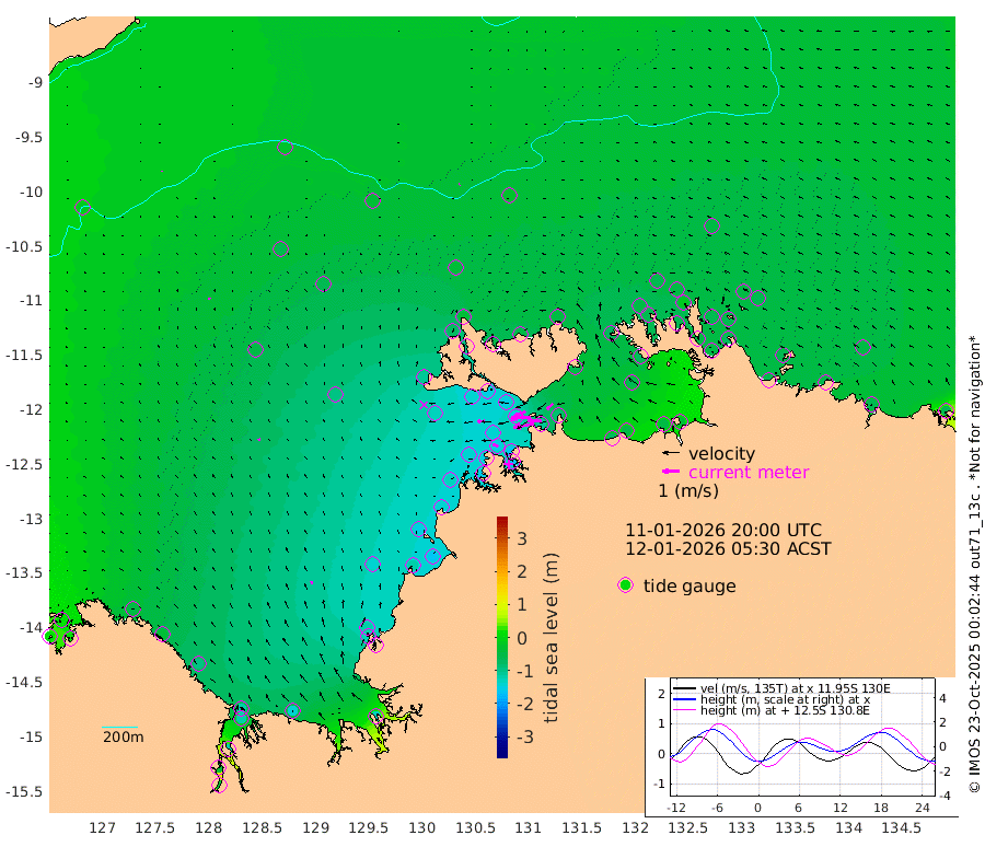 121cm/s -101T +4cm/s rms + 6cm/s 51T. Darwin_C1 52m 84cm/s -90T +4cm/s rms + 7cm/s -161T. Darwin_CW1 22m 77cm/s -106T +4cm/s rms + 8cm/s 61T. Darwin_CW2 34m 48cm/s -132T +3cm/s rms + 9cm/s 98T. Darwin_CW3 22m 117cm/s -91T +5cm/s rms + 7cm/s 88T. Darwin_C3 56m 74cm/s -115T +2cm/s rms + 9cm/s -126T. Darwin_CTbW 22m 3cm/s -121T +9cm/s rms + 2cm/s -110T. NWSLYN 196m 41cm/s -94T +1cm/s rms + 1cm/s -47T. DARBGF 30m 2cm/s 29T +7cm/s rms + 2cm/s -137T. ITFTIS 464m 12cm/s 4T +9cm/s rms + 1cm/s 74T. ITFMHB 146m 18cm/s -9T +4cm/s rms + 1cm/s -134T. ITFJBG 61m 14cm/s -26T +6cm/s rms + 4cm/s 121T. ITFFTB 108m 34cm/s -67T +4cm/s rms + 3cm/s 80T. NRSDAR 19m 14cm Carronade Island 12cm Guy Point 17cm Napier Broome Bay -51cm Lesueur Island -92cm Reveley Island -40cm Rocky Island -121cm Cape Domett -118cm Lacrosse Island -115cm Adolphus Island -43cm Pender Point -29cm Wyndham -53cm The Boxers -58cm Unnamed Shoal -23cm Loxton Shoal -139cm Pelican Island -56cm Calder Shoal -34cm Evans Shoal -130cm Quoin Island -149cm Port Keats -134cm Jones Point -120cm Catfish Island -144cm Cape Scott Offshore -116cm Cape Ford -158cm Anson Bay -40cm Goodrich Bank -148cm Peron Island North -137cm Point Jenny -134cm Native Point -145cm Fish Reef -149cm Tapa Bay -105cm Point Fawcett (Offshore) -148cm Burge Point -142cm Munkunuwa -124cm Beagle A -151cm Parsons Bank -144cm Fenton Patches -32cm Lynedoch Bank -147cm Hancox Shoal Area -164cm Nightcliff -162cm Darwin -154cm Charles Point Patches -106cm Glyde Point -73cm Chambers Bay -56cm Point Stuart -89cm Cape Hotham -64cm Christine Reef -56cm West Alligator Head -34cm East Field Island -71cm Two Hills Bay -97cm Newby Shoal -59cm Camp Point -150cm Medina Inlet South -92cm South Barlow Point -76cm St. Asaph Bay -44cm Cape Van Dieman -52cm Snake Bay -49cm Cache Point -12cm Echo Shoal -55cm Point Jahleel (Off) -70cm Cape Don -55cm Port Essington -61cm Smith Point - West -55cm NW Peacock Island -57cm North Of Jones Shoal -20cm Peacock Island -54cm Point David -60cm D'urville Point -45cm Money Shoal -54cm Copeland Island -77cm Cape Cockburn -59cm One Tree Point -60cm Hogmany Shoal -56cm New Year Island - West -57cm Grant Island -61cm Aurari Bay -58cm Cuthbert Point -64cm North Goulburn Island -54cm Paxie Shoal -58cm Entrance Island -57cm Yabooma Island
