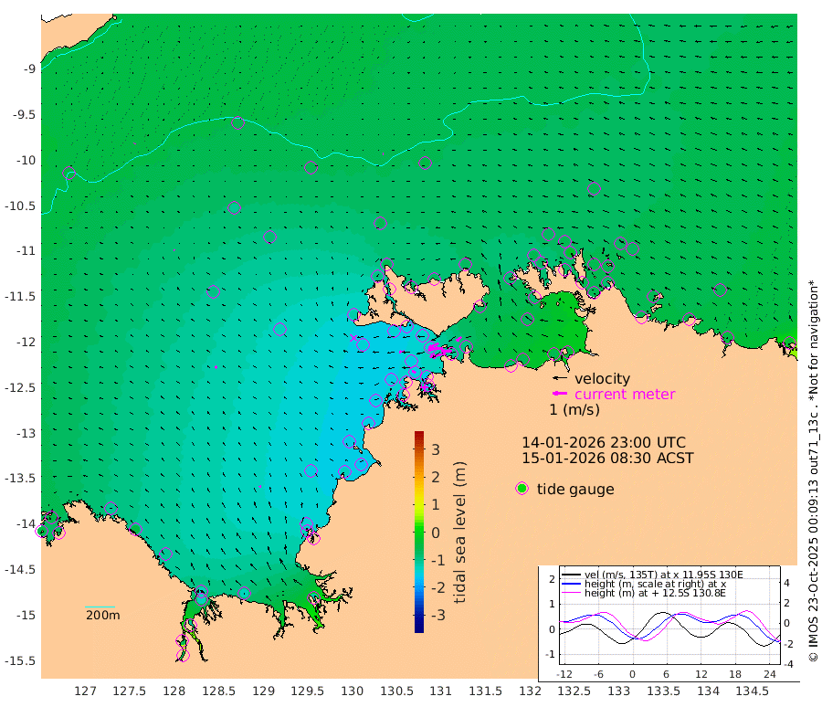 113cm/s -102T +4cm/s rms + 6cm/s 51T. Darwin_C1 52m 78cm/s -90T +4cm/s rms + 7cm/s -161T. Darwin_CW1 22m 66cm/s -107T +4cm/s rms + 8cm/s 61T. Darwin_CW2 34m 44cm/s -129T +3cm/s rms + 9cm/s 98T. Darwin_CW3 22m 95cm/s -91T +5cm/s rms + 7cm/s 88T. Darwin_C3 56m 77cm/s -115T +2cm/s rms + 9cm/s -126T. Darwin_CTbW 22m 4cm/s -86T +9cm/s rms + 2cm/s -110T. NWSLYN 196m 39cm/s -94T +1cm/s rms + 1cm/s -47T. DARBGF 30m 5cm/s -156T +7cm/s rms + 2cm/s -137T. ITFTIS 464m 7cm/s -30T +9cm/s rms + 1cm/s 74T. ITFMHB 146m 14cm/s -21T +4cm/s rms + 1cm/s -134T. ITFJBG 61m 15cm/s -53T +6cm/s rms + 4cm/s 121T. ITFFTB 108m 30cm/s -63T +4cm/s rms + 3cm/s 80T. NRSDAR 19m -55cm Carronade Island -55cm Guy Point -60cm Napier Broome Bay -105cm Lesueur Island -111cm Reveley Island -54cm Rocky Island -126cm Cape Domett -134cm Lacrosse Island -109cm Adolphus Island -65cm Pender Point -62cm Wyndham -93cm The Boxers -103cm Unnamed Shoal -57cm Loxton Shoal -134cm Pelican Island -89cm Calder Shoal -57cm Evans Shoal -120cm Quoin Island -144cm Port Keats -133cm Jones Point -146cm Catfish Island -150cm Cape Scott Offshore -124cm Cape Ford -162cm Anson Bay -64cm Goodrich Bank -147cm Peron Island North -147cm Point Jenny -147cm Native Point -148cm Fish Reef -156cm Tapa Bay -122cm Point Fawcett (Offshore) -149cm Burge Point -135cm Munkunuwa -141cm Beagle A -140cm Parsons Bank -151cm Fenton Patches -55cm Lynedoch Bank -142cm Hancox Shoal Area -163cm Nightcliff -155cm Darwin -155cm Charles Point Patches -112cm Glyde Point -80cm Chambers Bay -66cm Point Stuart -94cm Cape Hotham -76cm Christine Reef -66cm West Alligator Head -51cm East Field Island -79cm Two Hills Bay -132cm Newby Shoal -76cm Camp Point -149cm Medina Inlet South -103cm South Barlow Point -94cm St. Asaph Bay -67cm Cape Van Dieman -74cm Snake Bay -72cm Cache Point -51cm Echo Shoal -73cm Point Jahleel (Off) -80cm Cape Don -67cm Port Essington -71cm Smith Point - West -66cm NW Peacock Island -69cm North Of Jones Shoal -24cm Peacock Island -61cm Point David -68cm D'urville Point -58cm Money Shoal -58cm Copeland Island -80cm Cape Cockburn -65cm One Tree Point -71cm Hogmany Shoal -68cm New Year Island - West -65cm Grant Island -64cm Aurari Bay -58cm Cuthbert Point -63cm North Goulburn Island -59cm Paxie Shoal -52cm Entrance Island -41cm Yabooma Island