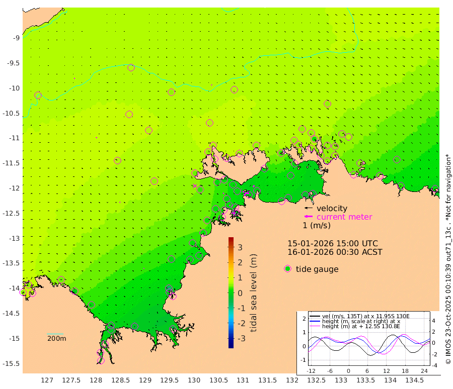 26cm/s -99T +4cm/s rms + 6cm/s 51T. Darwin_C1 52m 54cm/s -91T +4cm/s rms + 7cm/s -161T. Darwin_CW1 22m 5cm/s -109T +4cm/s rms + 8cm/s 61T. Darwin_CW2 34m 25cm/s -136T +3cm/s rms + 9cm/s 98T. Darwin_CW3 22m 18cm/s -93T +5cm/s rms + 7cm/s 88T. Darwin_C3 56m 1cm/s -45T +2cm/s rms + 9cm/s -126T. Darwin_CTbW 22m 6cm/s 128T +9cm/s rms + 2cm/s -110T. NWSLYN 196m 10cm/s 98T +1cm/s rms + 1cm/s -47T. DARBGF 30m 7cm/s 23T +7cm/s rms + 2cm/s -137T. ITFTIS 464m 8cm/s 39T +9cm/s rms + 1cm/s 74T. ITFMHB 146m 5cm/s 64T +4cm/s rms + 1cm/s -134T. ITFJBG 61m 8cm/s 81T +6cm/s rms + 4cm/s 121T. ITFFTB 108m 9cm/s 134T +4cm/s rms + 3cm/s 80T. NRSDAR 19m 55cm Carronade Island 54cm Guy Point 61cm Napier Broome Bay 44cm Lesueur Island 5cm Reveley Island -3cm Rocky Island -19cm Cape Domett -12cm Lacrosse Island -31cm Adolphus Island -29cm Pender Point -24cm Wyndham 57cm The Boxers 70cm Unnamed Shoal 63cm Loxton Shoal -31cm Pelican Island 61cm Calder Shoal 53cm Evans Shoal -57cm Quoin Island -11cm Port Keats -21cm Jones Point -74cm Catfish Island 10cm Cape Scott Offshore 10cm Cape Ford 10cm Anson Bay 57cm Goodrich Bank 16cm Peron Island North 17cm Point Jenny 20cm Native Point 8cm Fish Reef 13cm Tapa Bay 38cm Point Fawcett (Offshore) 10cm Burge Point 7cm Munkunuwa 24cm Beagle A 10cm Parsons Bank 9cm Fenton Patches 57cm Lynedoch Bank 7cm Hancox Shoal Area 10cm Nightcliff 6cm Darwin 13cm Charles Point Patches 0cm Glyde Point -14cm Chambers Bay -20cm Point Stuart -2cm Cape Hotham -7cm Christine Reef -28cm West Alligator Head -34cm East Field Island -1cm Two Hills Bay 56cm Newby Shoal 2cm Camp Point 13cm Medina Inlet South 48cm South Barlow Point 47cm St. Asaph Bay 57cm Cape Van Dieman 64cm Snake Bay 55cm Cache Point 58cm Echo Shoal 48cm Point Jahleel (Off) 34cm Cape Don 48cm Port Essington 48cm Smith Point - West 52cm NW Peacock Island 53cm North Of Jones Shoal 19cm Peacock Island 52cm Point David 51cm D'urville Point 53cm Money Shoal 47cm Copeland Island 61cm Cape Cockburn 50cm One Tree Point 59cm Hogmany Shoal 55cm New Year Island - West 54cm Grant Island 39cm Aurari Bay 35cm Cuthbert Point 46cm North Goulburn Island 33cm Paxie Shoal 29cm Entrance Island 14cm Yabooma Island