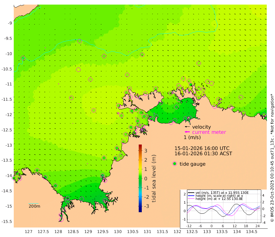 8cm/s 76T +4cm/s rms + 6cm/s 51T. Darwin_C1 52m 25cm/s -84T +4cm/s rms + 7cm/s -161T. Darwin_CW1 22m 5cm/s 81T +4cm/s rms + 8cm/s 61T. Darwin_CW2 34m 15cm/s -144T +3cm/s rms + 9cm/s 98T. Darwin_CW3 22m 5cm/s -93T +5cm/s rms + 7cm/s 88T. Darwin_C3 56m 24cm/s 61T +2cm/s rms + 9cm/s -126T. Darwin_CTbW 22m 5cm/s 127T +9cm/s rms + 2cm/s -110T. NWSLYN 196m 16cm/s 95T +1cm/s rms + 1cm/s -47T. DARBGF 30m 7cm/s 17T +7cm/s rms + 2cm/s -137T. ITFTIS 464m 8cm/s 34T +9cm/s rms + 1cm/s 74T. ITFMHB 146m 8cm/s 117T +4cm/s rms + 1cm/s -134T. ITFJBG 61m 9cm/s 97T +6cm/s rms + 4cm/s 121T. ITFFTB 108m 14cm/s 128T +4cm/s rms + 3cm/s 80T. NRSDAR 19m 26cm Carronade Island 23cm Guy Point 33cm Napier Broome Bay 31cm Lesueur Island 6cm Reveley Island -8cm Rocky Island -11cm Cape Domett -4cm Lacrosse Island -26cm Adolphus Island -39cm Pender Point -36cm Wyndham 48cm The Boxers 71cm Unnamed Shoal 41cm Loxton Shoal -14cm Pelican Island 47cm Calder Shoal 37cm Evans Shoal -41cm Quoin Island 8cm Port Keats -1cm Jones Point -37cm Catfish Island 29cm Cape Scott Offshore 4cm Cape Ford 36cm Anson Bay 45cm Goodrich Bank 33cm Peron Island North 35cm Point Jenny 37cm Native Point 28cm Fish Reef 34cm Tapa Bay 43cm Point Fawcett (Offshore) 30cm Burge Point 25cm Munkunuwa 37cm Beagle A 32cm Parsons Bank 29cm Fenton Patches 45cm Lynedoch Bank 29cm Hancox Shoal Area 36cm Nightcliff 30cm Darwin 34cm Charles Point Patches 17cm Glyde Point -2cm Chambers Bay -8cm Point Stuart 12cm Cape Hotham 2cm Christine Reef -15cm West Alligator Head -25cm East Field Island 10cm Two Hills Bay 56cm Newby Shoal 12cm Camp Point 33cm Medina Inlet South 49cm South Barlow Point 44cm St. Asaph Bay 48cm Cape Van Dieman 56cm Snake Bay 47cm Cache Point 33cm Echo Shoal 43cm Point Jahleel (Off) 39cm Cape Don 47cm Port Essington 48cm Smith Point - West 51cm NW Peacock Island 50cm North Of Jones Shoal 18cm Peacock Island 58cm Point David 53cm D'urville Point 53cm Money Shoal 55cm Copeland Island 70cm Cape Cockburn 56cm One Tree Point 64cm Hogmany Shoal 60cm New Year Island - West 59cm Grant Island 54cm Aurari Bay 50cm Cuthbert Point 56cm North Goulburn Island 50cm Paxie Shoal 47cm Entrance Island 39cm Yabooma Island