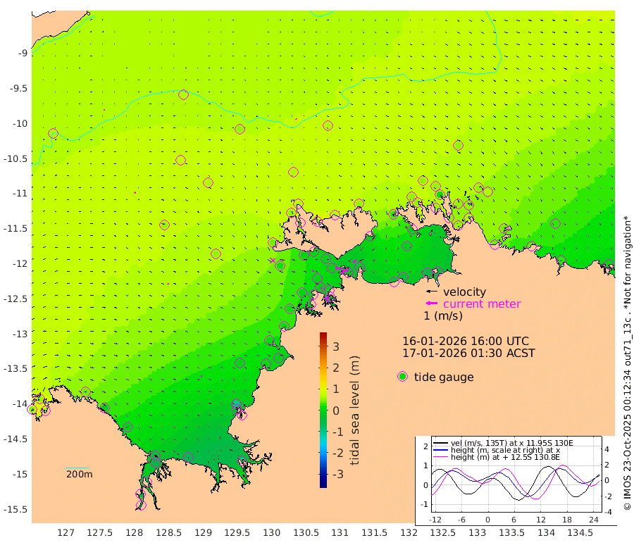 31cm/s -100T +4cm/s rms + 6cm/s 51T. Darwin_C1 52m 60cm/s -90T +4cm/s rms + 7cm/s -161T. Darwin_CW1 22m 14cm/s -108T +4cm/s rms + 8cm/s 61T. Darwin_CW2 34m 35cm/s -138T +3cm/s rms + 9cm/s 98T. Darwin_CW3 22m 36cm/s -92T +5cm/s rms + 7cm/s 88T. Darwin_C3 56m 1cm/s 11T +2cm/s rms + 9cm/s -126T. Darwin_CTbW 22m 7cm/s 136T +9cm/s rms + 2cm/s -110T. NWSLYN 196m 14cm/s 102T +1cm/s rms + 1cm/s -47T. DARBGF 30m 8cm/s 28T +7cm/s rms + 2cm/s -137T. ITFTIS 464m 9cm/s 45T +9cm/s rms + 1cm/s 74T. ITFMHB 146m 9cm/s 91T +4cm/s rms + 1cm/s -134T. ITFJBG 61m 13cm/s 94T +6cm/s rms + 4cm/s 121T. ITFFTB 108m 14cm/s 137T +4cm/s rms + 3cm/s 80T. NRSDAR 19m 51cm Carronade Island 50cm Guy Point 58cm Napier Broome Bay 34cm Lesueur Island -14cm Reveley Island -20cm Rocky Island -51cm Cape Domett -39cm Lacrosse Island -72cm Adolphus Island -67cm Pender Point -63cm Wyndham 56cm The Boxers 75cm Unnamed Shoal 61cm Loxton Shoal -60cm Pelican Island 59cm Calder Shoal 53cm Evans Shoal -105cm Quoin Island -37cm Port Keats -41cm Jones Point -105cm Catfish Island -2cm Cape Scott Offshore 5cm Cape Ford -2cm Anson Bay 58cm Goodrich Bank 4cm Peron Island North 10cm Point Jenny 13cm Native Point -2cm Fish Reef 3cm Tapa Bay 36cm Point Fawcett (Offshore) -4cm Burge Point -3cm Munkunuwa 17cm Beagle A -4cm Parsons Bank -4cm Fenton Patches 57cm Lynedoch Bank -7cm Hancox Shoal Area -6cm Nightcliff -12cm Darwin -1cm Charles Point Patches -14cm Glyde Point -32cm Chambers Bay -36cm Point Stuart -15cm Cape Hotham -22cm Christine Reef -46cm West Alligator Head -54cm East Field Island -14cm Two Hills Bay 49cm Newby Shoal -10cm Camp Point 0cm Medina Inlet South 45cm South Barlow Point 47cm St. Asaph Bay 60cm Cape Van Dieman 65cm Snake Bay 57cm Cache Point 57cm Echo Shoal 48cm Point Jahleel (Off) 29cm Cape Don 48cm Port Essington 49cm Smith Point - West 53cm NW Peacock Island 53cm North Of Jones Shoal 19cm Peacock Island 54cm Point David 53cm D'urville Point 55cm Money Shoal 49cm Copeland Island 61cm Cape Cockburn 51cm One Tree Point 62cm Hogmany Shoal 56cm New Year Island - West 55cm Grant Island 40cm Aurari Bay 34cm Cuthbert Point 44cm North Goulburn Island 32cm Paxie Shoal 25cm Entrance Island 9cm Yabooma Island