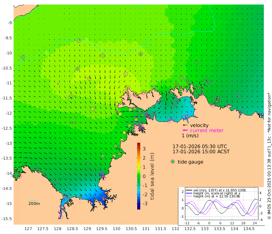 58cm/s 77T +4cm/s rms + 6cm/s 51T. Darwin_C1 52m 14cm/s 83T +4cm/s rms + 7cm/s -161T. Darwin_CW1 22m 23cm/s 74T +4cm/s rms + 8cm/s 61T. Darwin_CW2 34m 17cm/s -175T +3cm/s rms + 9cm/s 98T. Darwin_CW3 22m 3cm/s -50T +5cm/s rms + 7cm/s 88T. Darwin_C3 56m 56cm/s 63T +2cm/s rms + 9cm/s -126T. Darwin_CTbW 22m 4cm/s -179T +9cm/s rms + 2cm/s -110T. NWSLYN 196m 56cm/s 94T +1cm/s rms + 1cm/s -47T. DARBGF 30m 9cm/s 131T +7cm/s rms + 2cm/s -137T. ITFTIS 464m 28cm/s 165T +9cm/s rms + 1cm/s 74T. ITFMHB 146m 40cm/s 146T +4cm/s rms + 1cm/s -134T. ITFJBG 61m 46cm/s 135T +6cm/s rms + 4cm/s 121T. ITFFTB 108m 60cm/s 123T +4cm/s rms + 3cm/s 80T. NRSDAR 19m -23cm Carronade Island -22cm Guy Point -25cm Napier Broome Bay -39cm Lesueur Island -47cm Reveley Island 0cm Rocky Island -95cm Cape Domett -81cm Lacrosse Island -132cm Adolphus Island -192cm Pender Point -215cm Wyndham 35cm The Boxers 25cm Unnamed Shoal 36cm Loxton Shoal -80cm Pelican Island 50cm Calder Shoal 43cm Evans Shoal -194cm Quoin Island -33cm Port Keats -45cm Jones Point -203cm Catfish Island 23cm Cape Scott Offshore 54cm Cape Ford 29cm Anson Bay 46cm Goodrich Bank 28cm Peron Island North 57cm Point Jenny 57cm Native Point 39cm Fish Reef 43cm Tapa Bay 63cm Point Fawcett (Offshore) 27cm Burge Point 53cm Munkunuwa 62cm Beagle A 22cm Parsons Bank 38cm Fenton Patches 30cm Lynedoch Bank 14cm Hancox Shoal Area 32cm Nightcliff 2cm Darwin 18cm Charles Point Patches -37cm Glyde Point -88cm Chambers Bay -114cm Point Stuart -58cm Cape Hotham -67cm Christine Reef -127cm West Alligator Head -157cm East Field Island -71cm Two Hills Bay 51cm Newby Shoal -70cm Camp Point 35cm Medina Inlet South 63cm South Barlow Point 65cm St. Asaph Bay 50cm Cape Van Dieman 43cm Snake Bay 43cm Cache Point 31cm Echo Shoal 30cm Point Jahleel (Off) 0cm Cape Don 19cm Port Essington 30cm Smith Point - West 21cm NW Peacock Island 26cm North Of Jones Shoal 8cm Peacock Island -12cm Point David 23cm D'urville Point 5cm Money Shoal -13cm Copeland Island -18cm Cape Cockburn -9cm One Tree Point -28cm Hogmany Shoal -13cm New Year Island - West -14cm Grant Island -31cm Aurari Bay -47cm Cuthbert Point -32cm North Goulburn Island -70cm Paxie Shoal -78cm Entrance Island -112cm Yabooma Island