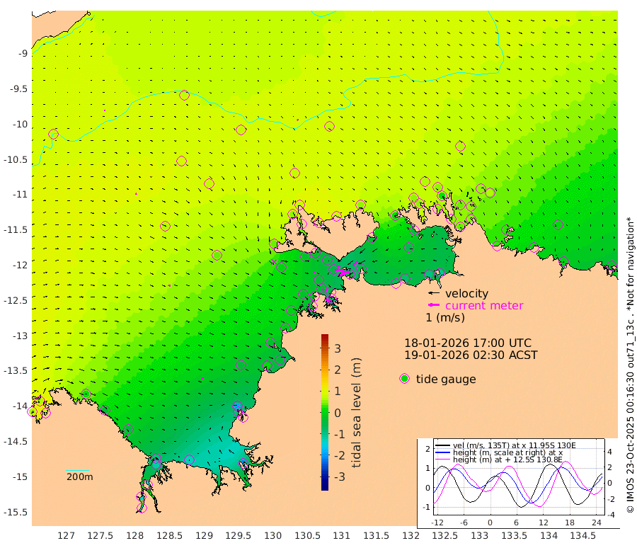 65cm/s -101T +4cm/s rms + 6cm/s 51T. Darwin_C1 52m 77cm/s -92T +4cm/s rms + 7cm/s -161T. Darwin_CW1 22m 34cm/s -107T +4cm/s rms + 8cm/s 61T. Darwin_CW2 34m 57cm/s -137T +3cm/s rms + 9cm/s 98T. Darwin_CW3 22m 68cm/s -92T +5cm/s rms + 7cm/s 88T. Darwin_C3 56m 22cm/s -113T +2cm/s rms + 9cm/s -126T. Darwin_CTbW 22m 11cm/s 146T +9cm/s rms + 2cm/s -110T. NWSLYN 196m 17cm/s 107T +1cm/s rms + 1cm/s -47T. DARBGF 30m 10cm/s 38T +7cm/s rms + 2cm/s -137T. ITFTIS 464m 11cm/s 61T +9cm/s rms + 1cm/s 74T. ITFMHB 146m 14cm/s 95T +4cm/s rms + 1cm/s -134T. ITFJBG 61m 21cm/s 100T +6cm/s rms + 4cm/s 121T. ITFFTB 108m 20cm/s 141T +4cm/s rms + 3cm/s 80T. NRSDAR 19m 63cm Carronade Island 61cm Guy Point 69cm Napier Broome Bay 21cm Lesueur Island -53cm Reveley Island -39cm Rocky Island -117cm Cape Domett -98cm Lacrosse Island -151cm Adolphus Island -135cm Pender Point -133cm Wyndham 63cm The Boxers 80cm Unnamed Shoal 79cm Loxton Shoal -126cm Pelican Island 68cm Calder Shoal 69cm Evans Shoal -207cm Quoin Island -95cm Port Keats -90cm Jones Point -186cm Catfish Island -37cm Cape Scott Offshore 19cm Cape Ford -41cm Anson Bay 73cm Goodrich Bank -27cm Peron Island North -14cm Point Jenny -10cm Native Point -29cm Fish Reef -27cm Tapa Bay 35cm Point Fawcett (Offshore) -42cm Burge Point -32cm Munkunuwa 0cm Beagle A -44cm Parsons Bank -39cm Fenton Patches 69cm Lynedoch Bank -49cm Hancox Shoal Area -55cm Nightcliff -59cm Darwin -36cm Charles Point Patches -53cm Glyde Point -78cm Chambers Bay -79cm Point Stuart -54cm Cape Hotham -63cm Christine Reef -94cm West Alligator Head -104cm East Field Island -49cm Two Hills Bay 40cm Newby Shoal -43cm Camp Point -33cm Medina Inlet South 43cm South Barlow Point 54cm St. Asaph Bay 75cm Cape Van Dieman 75cm Snake Bay 70cm Cache Point 76cm Echo Shoal 52cm Point Jahleel (Off) 18cm Cape Don 52cm Port Essington 51cm Smith Point - West 55cm NW Peacock Island 57cm North Of Jones Shoal 19cm Peacock Island 48cm Point David 54cm D'urville Point 57cm Money Shoal 43cm Copeland Island 50cm Cape Cockburn 44cm One Tree Point 59cm Hogmany Shoal 49cm New Year Island - West 47cm Grant Island 23cm Aurari Bay 16cm Cuthbert Point 29cm North Goulburn Island 7cm Paxie Shoal -6cm Entrance Island -33cm Yabooma Island