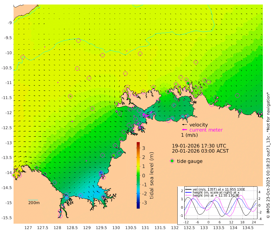 79cm/s -100T +4cm/s rms + 6cm/s 51T. Darwin_C1 52m 78cm/s -92T +4cm/s rms + 7cm/s -161T. Darwin_CW1 22m 40cm/s -107T +4cm/s rms + 8cm/s 61T. Darwin_CW2 34m 65cm/s -137T +3cm/s rms + 9cm/s 98T. Darwin_CW3 22m 77cm/s -91T +5cm/s rms + 7cm/s 88T. Darwin_C3 56m 33cm/s -114T +2cm/s rms + 9cm/s -126T. Darwin_CTbW 22m 12cm/s 148T +9cm/s rms + 2cm/s -110T. NWSLYN 196m 20cm/s 107T +1cm/s rms + 1cm/s -47T. DARBGF 30m 11cm/s 43T +7cm/s rms + 2cm/s -137T. ITFTIS 464m 12cm/s 70T +9cm/s rms + 1cm/s 74T. ITFMHB 146m 17cm/s 99T +4cm/s rms + 1cm/s -134T. ITFJBG 61m 25cm/s 103T +6cm/s rms + 4cm/s 121T. ITFFTB 108m 24cm/s 141T +4cm/s rms + 3cm/s 80T. NRSDAR 19m 65cm Carronade Island 62cm Guy Point 70cm Napier Broome Bay 11cm Lesueur Island -73cm Reveley Island -46cm Rocky Island -148cm Cape Domett -127cm Lacrosse Island -188cm Adolphus Island -169cm Pender Point -169cm Wyndham 66cm The Boxers 78cm Unnamed Shoal 87cm Loxton Shoal -156cm Pelican Island 72cm Calder Shoal 77cm Evans Shoal -253cm Quoin Island -120cm Port Keats -113cm Jones Point -221cm Catfish Island -52cm Cape Scott Offshore 25cm Cape Ford -58cm Anson Bay 79cm Goodrich Bank -39cm Peron Island North -24cm Point Jenny -20cm Native Point -40cm Fish Reef -41cm Tapa Bay 36cm Point Fawcett (Offshore) -57cm Burge Point -43cm Munkunuwa -7cm Beagle A -61cm Parsons Bank -54cm Fenton Patches 74cm Lynedoch Bank -68cm Hancox Shoal Area -77cm Nightcliff -79cm Darwin -50cm Charles Point Patches -72cm Glyde Point -101cm Chambers Bay -102cm Point Stuart -74cm Cape Hotham -84cm Christine Reef -120cm West Alligator Head -130cm East Field Island -68cm Two Hills Bay 36cm Newby Shoal -61cm Camp Point -46cm Medina Inlet South 44cm South Barlow Point 58cm St. Asaph Bay 82cm Cape Van Dieman 78cm Snake Bay 76cm Cache Point 85cm Echo Shoal 54cm Point Jahleel (Off) 13cm Cape Don 53cm Port Essington 52cm Smith Point - West 56cm NW Peacock Island 59cm North Of Jones Shoal 20cm Peacock Island 43cm Point David 53cm D'urville Point 57cm Money Shoal 36cm Copeland Island 42cm Cape Cockburn 39cm One Tree Point 53cm Hogmany Shoal 43cm New Year Island - West 41cm Grant Island 12cm Aurari Bay 4cm Cuthbert Point 19cm North Goulburn Island -8cm Paxie Shoal -25cm Entrance Island -58cm Yabooma Island