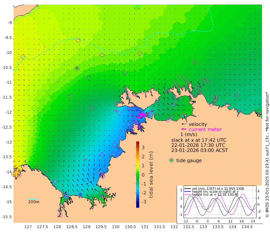 195cm/s -101T +4cm/s rms + 6cm/s 51T. Darwin_C1 52m 137cm/s -90T +4cm/s rms + 7cm/s -161T. Darwin_CW1 22m 103cm/s -107T +4cm/s rms + 8cm/s 61T. Darwin_CW2 34m 92cm/s -134T +3cm/s rms + 9cm/s 98T. Darwin_CW3 22m 146cm/s -91T +5cm/s rms + 7cm/s 88T. Darwin_C3 56m 108cm/s -115T +2cm/s rms + 9cm/s -126T. Darwin_CTbW 22m 9cm/s 162T +9cm/s rms + 2cm/s -110T. NWSLYN 196m 37cm/s -97T +1cm/s rms + 1cm/s -47T. DARBGF 30m 8cm/s 54T +7cm/s rms + 2cm/s -137T. ITFTIS 464m 11cm/s 47T +9cm/s rms + 1cm/s 74T. ITFMHB 146m 23cm/s 5T +4cm/s rms + 1cm/s -134T. ITFJBG 61m 13cm/s 39T +6cm/s rms + 4cm/s 121T. ITFFTB 108m 30cm/s -77T +4cm/s rms + 3cm/s 80T. NRSDAR 19m 117cm Carronade Island 117cm Guy Point 130cm Napier Broome Bay -5cm Lesueur Island -125cm Reveley Island -40cm Rocky Island -191cm Cape Domett -172cm Lacrosse Island -192cm Adolphus Island -89cm Pender Point -56cm Wyndham 12cm The Boxers -17cm Unnamed Shoal 73cm Loxton Shoal -227cm Pelican Island 16cm Calder Shoal 46cm Evans Shoal -215cm Quoin Island -234cm Port Keats -224cm Jones Point -102cm Catfish Island -170cm Cape Scott Offshore -175cm Cape Ford -197cm Anson Bay 21cm Goodrich Bank -173cm Peron Island North -171cm Point Jenny -170cm Native Point -181cm Fish Reef -201cm Tapa Bay -71cm Point Fawcett (Offshore) -213cm Burge Point -196cm Munkunuwa -145cm Beagle A -219cm Parsons Bank -208cm Fenton Patches 35cm Lynedoch Bank -215cm Hancox Shoal Area -231cm Nightcliff -232cm Darwin -202cm Charles Point Patches -157cm Glyde Point -112cm Chambers Bay -99cm Point Stuart -132cm Cape Hotham -102cm Christine Reef -105cm West Alligator Head -83cm East Field Island -96cm Two Hills Bay -68cm Newby Shoal -92cm Camp Point -193cm Medina Inlet South -63cm South Barlow Point -29cm St. Asaph Bay 16cm Cape Van Dieman 7cm Snake Bay 14cm Cache Point 97cm Echo Shoal -9cm Point Jahleel (Off) -51cm Cape Don -13cm Port Essington -20cm Smith Point - West -15cm NW Peacock Island 5cm North Of Jones Shoal -1cm Peacock Island -39cm Point David -24cm D'urville Point -3cm Money Shoal -43cm Copeland Island -53cm Cape Cockburn -32cm One Tree Point -43cm Hogmany Shoal -34cm New Year Island - West -41cm Grant Island -63cm Aurari Bay -69cm Cuthbert Point -59cm North Goulburn Island -71cm Paxie Shoal -96cm Entrance Island -111cm Yabooma Island