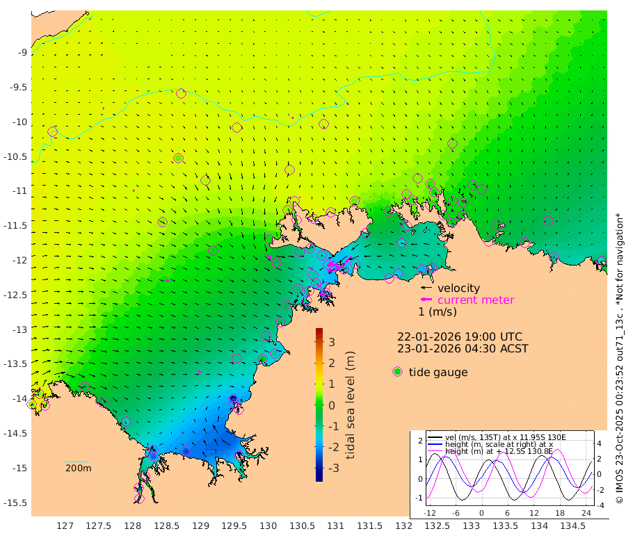 111cm/s -100T +4cm/s rms + 6cm/s 51T. Darwin_C1 52m 77cm/s -92T +4cm/s rms + 7cm/s -161T. Darwin_CW1 22m 53cm/s -106T +4cm/s rms + 8cm/s 61T. Darwin_CW2 34m 77cm/s -138T +3cm/s rms + 9cm/s 98T. Darwin_CW3 22m 99cm/s -91T +5cm/s rms + 7cm/s 88T. Darwin_C3 56m 57cm/s -116T +2cm/s rms + 9cm/s -126T. Darwin_CTbW 22m 15cm/s 155T +9cm/s rms + 2cm/s -110T. NWSLYN 196m 23cm/s 108T +1cm/s rms + 1cm/s -47T. DARBGF 30m 12cm/s 58T +7cm/s rms + 2cm/s -137T. ITFTIS 464m 13cm/s 97T +9cm/s rms + 1cm/s 74T. ITFMHB 146m 23cm/s 108T +4cm/s rms + 1cm/s -134T. ITFJBG 61m 34cm/s 110T +6cm/s rms + 4cm/s 121T. ITFFTB 108m 31cm/s 140T +4cm/s rms + 3cm/s 80T. NRSDAR 19m 48cm Carronade Island 45cm Guy Point 54cm Napier Broome Bay -36cm Lesueur Island -135cm Reveley Island -64cm Rocky Island -227cm Cape Domett -203cm Lacrosse Island -274cm Adolphus Island -246cm Pender Point -251cm Wyndham 51cm The Boxers 44cm Unnamed Shoal 91cm Loxton Shoal -237cm Pelican Island 63cm Calder Shoal 80cm Evans Shoal -345cm Quoin Island -189cm Port Keats -181cm Jones Point -288cm Catfish Island -100cm Cape Scott Offshore -12cm Cape Ford -109cm Anson Bay 74cm Goodrich Bank -85cm Peron Island North -69cm Point Jenny -67cm Native Point -82cm Fish Reef -96cm Tapa Bay 18cm Point Fawcett (Offshore) -114cm Burge Point -84cm Munkunuwa -47cm Beagle A -120cm Parsons Bank -112cm Fenton Patches 70cm Lynedoch Bank -133cm Hancox Shoal Area -141cm Nightcliff -143cm Darwin -103cm Charles Point Patches -133cm Glyde Point -164cm Chambers Bay -166cm Point Stuart -133cm Cape Hotham -144cm Christine Reef -188cm West Alligator Head -200cm East Field Island -123cm Two Hills Bay 1cm Newby Shoal -115cm Camp Point -92cm Medina Inlet South 27cm South Barlow Point 49cm St. Asaph Bay 76cm Cape Van Dieman 67cm Snake Bay 67cm Cache Point 94cm Echo Shoal 37cm Point Jahleel (Off) -18cm Cape Don 36cm Port Essington 32cm Smith Point - West 32cm NW Peacock Island 48cm North Of Jones Shoal 15cm Peacock Island 4cm Point David 29cm D'urville Point 36cm Money Shoal -3cm Copeland Island -5cm Cape Cockburn 7cm One Tree Point 0cm Hogmany Shoal 3cm New Year Island - West -2cm Grant Island -35cm Aurari Bay -51cm Cuthbert Point -27cm North Goulburn Island -65cm Paxie Shoal -97cm Entrance Island -135cm Yabooma Island