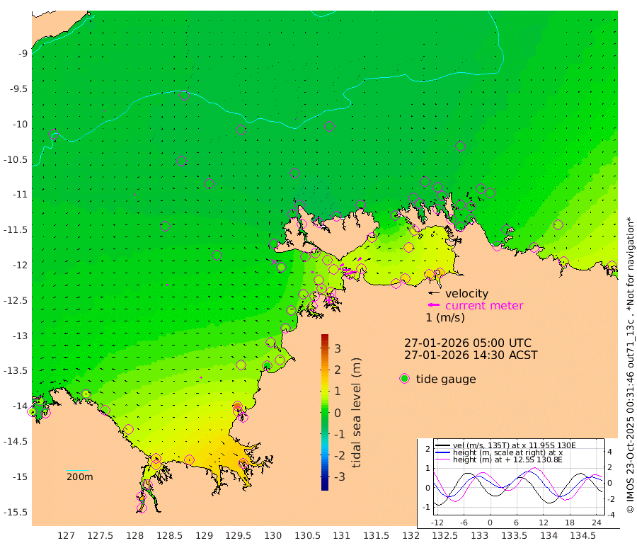 64cm/s 78T +4cm/s rms + 6cm/s 51T. Darwin_C1 52m 56cm/s 91T +4cm/s rms + 7cm/s -161T. Darwin_CW1 22m 21cm/s 74T +4cm/s rms + 8cm/s 61T. Darwin_CW2 34m 42cm/s 43T +3cm/s rms + 9cm/s 98T. Darwin_CW3 22m 48cm/s 91T +5cm/s rms + 7cm/s 88T. Darwin_C3 56m 36cm/s 66T +2cm/s rms + 9cm/s -126T. Darwin_CTbW 22m 4cm/s -6T +9cm/s rms + 2cm/s -110T. NWSLYN 196m 17cm/s -76T +1cm/s rms + 1cm/s -47T. DARBGF 30m 7cm/s -125T +7cm/s rms + 2cm/s -137T. ITFTIS 464m 7cm/s -122T +9cm/s rms + 1cm/s 74T. ITFMHB 146m 15cm/s -48T +4cm/s rms + 1cm/s -134T. ITFJBG 61m 16cm/s -66T +6cm/s rms + 4cm/s 121T. ITFFTB 108m 24cm/s -49T +4cm/s rms + 3cm/s 80T. NRSDAR 19m 54cm Carronade Island 62cm Guy Point 52cm Napier Broome Bay 68cm Lesueur Island 98cm Reveley Island 34cm Rocky Island 147cm Cape Domett 139cm Lacrosse Island 176cm Adolphus Island 184cm Pender Point 205cm Wyndham -7cm The Boxers -26cm Unnamed Shoal -32cm Loxton Shoal 149cm Pelican Island -19cm Calder Shoal -28cm Evans Shoal 215cm Quoin Island 107cm Port Keats 100cm Jones Point 247cm Catfish Island 64cm Cape Scott Offshore 22cm Cape Ford 63cm Anson Bay -33cm Goodrich Bank 46cm Peron Island North 54cm Point Jenny 49cm Native Point 47cm Fish Reef 59cm Tapa Bay 2cm Point Fawcett (Offshore) 63cm Burge Point 32cm Munkunuwa 37cm Beagle A 56cm Parsons Bank 65cm Fenton Patches -33cm Lynedoch Bank 76cm Hancox Shoal Area 79cm Nightcliff 67cm Darwin 55cm Charles Point Patches 86cm Glyde Point 128cm Chambers Bay 128cm Point Stuart 90cm Cape Hotham 124cm Christine Reef 145cm West Alligator Head 160cm East Field Island 94cm Two Hills Bay 21cm Newby Shoal 90cm Camp Point 43cm Medina Inlet South -19cm South Barlow Point -20cm St. Asaph Bay -35cm Cape Van Dieman -40cm Snake Bay -22cm Cache Point -24cm Echo Shoal -10cm Point Jahleel (Off) 24cm Cape Don -12cm Port Essington -8cm Smith Point - West -9cm NW Peacock Island -17cm North Of Jones Shoal -6cm Peacock Island 0cm Point David -9cm D'urville Point -10cm Money Shoal 5cm Copeland Island 9cm Cape Cockburn 0cm One Tree Point 17cm Hogmany Shoal 3cm New Year Island - West 6cm Grant Island 22cm Aurari Bay 43cm Cuthbert Point 20cm North Goulburn Island 53cm Paxie Shoal 68cm Entrance Island 96cm Yabooma Island