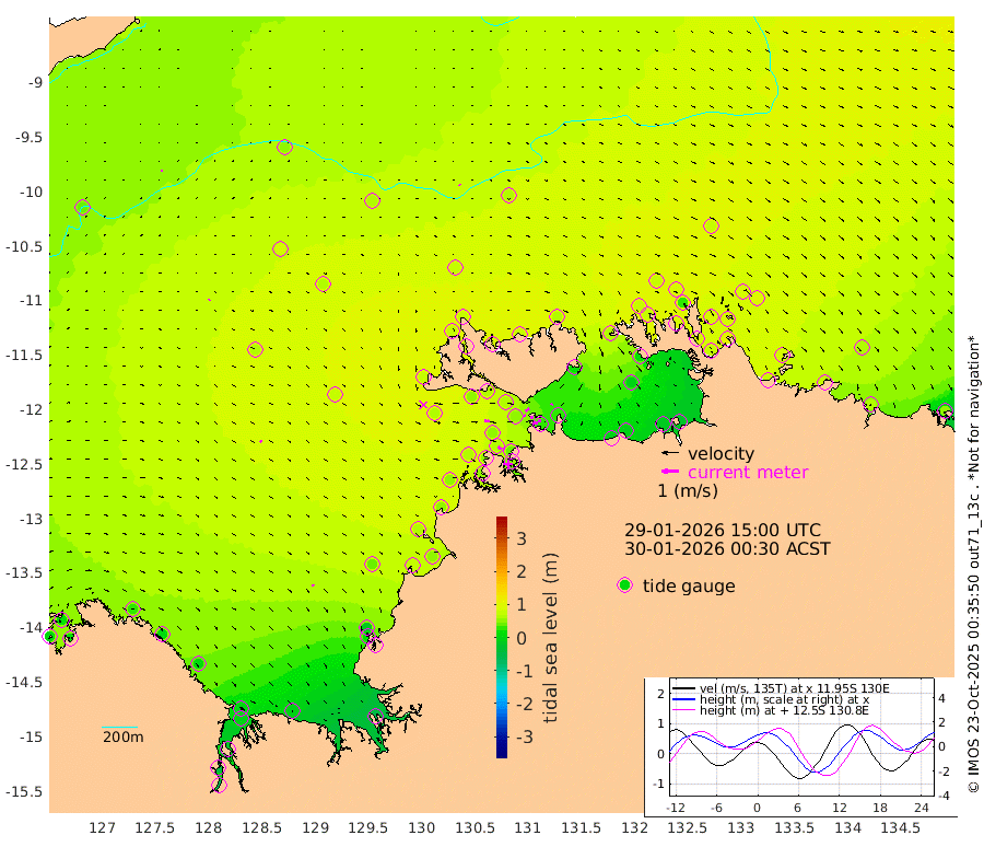 22cm/s 77T +4cm/s rms + 6cm/s 51T. Darwin_C1 52m 16cm/s -87T +4cm/s rms + 7cm/s -161T. Darwin_CW1 22m 15cm/s 79T +4cm/s rms + 8cm/s 61T. Darwin_CW2 34m 9cm/s -148T +3cm/s rms + 9cm/s 98T. Darwin_CW3 22m 13cm/s 91T +5cm/s rms + 7cm/s 88T. Darwin_C3 56m 26cm/s 61T +2cm/s rms + 9cm/s -126T. Darwin_CTbW 22m 6cm/s 133T +9cm/s rms + 2cm/s -110T. NWSLYN 196m 26cm/s 93T +1cm/s rms + 1cm/s -47T. DARBGF 30m 7cm/s 17T +7cm/s rms + 2cm/s -137T. ITFTIS 464m 6cm/s 48T +9cm/s rms + 1cm/s 74T. ITFMHB 146m 11cm/s 133T +4cm/s rms + 1cm/s -134T. ITFJBG 61m 13cm/s 111T +6cm/s rms + 4cm/s 121T. ITFFTB 108m 24cm/s 124T +4cm/s rms + 3cm/s 80T. NRSDAR 19m 17cm Carronade Island 11cm Guy Point 22cm Napier Broome Bay 32cm Lesueur Island 9cm Reveley Island 11cm Rocky Island -8cm Cape Domett -6cm Lacrosse Island -26cm Adolphus Island -55cm Pender Point -60cm Wyndham 67cm The Boxers 86cm Unnamed Shoal 56cm Loxton Shoal -3cm Pelican Island 64cm Calder Shoal 59cm Evans Shoal -49cm Quoin Island 18cm Port Keats 21cm Jones Point -18cm Catfish Island 44cm Cape Scott Offshore 74cm Cape Ford 50cm Anson Bay 69cm Goodrich Bank 63cm Peron Island North 55cm Point Jenny 56cm Native Point 60cm Fish Reef 53cm Tapa Bay 73cm Point Fawcett (Offshore) 50cm Burge Point 48cm Munkunuwa 59cm Beagle A 57cm Parsons Bank 48cm Fenton Patches 64cm Lynedoch Bank 45cm Hancox Shoal Area 40cm Nightcliff 55cm Darwin 64cm Charles Point Patches 32cm Glyde Point -2cm Chambers Bay -3cm Point Stuart 24cm Cape Hotham -1cm Christine Reef -12cm West Alligator Head -28cm East Field Island 22cm Two Hills Bay 75cm Newby Shoal 13cm Camp Point 58cm Medina Inlet South 76cm South Barlow Point 68cm St. Asaph Bay 72cm Cape Van Dieman 79cm Snake Bay 73cm Cache Point 44cm Echo Shoal 66cm Point Jahleel (Off) 61cm Cape Don 77cm Port Essington 77cm Smith Point - West 79cm NW Peacock Island 74cm North Of Jones Shoal 27cm Peacock Island 81cm Point David 82cm D'urville Point 76cm Money Shoal 77cm Copeland Island 103cm Cape Cockburn 81cm One Tree Point 97cm Hogmany Shoal 82cm New Year Island - West 83cm Grant Island 73cm Aurari Bay 76cm Cuthbert Point 79cm North Goulburn Island 61cm Paxie Shoal 61cm Entrance Island 46cm Yabooma Island