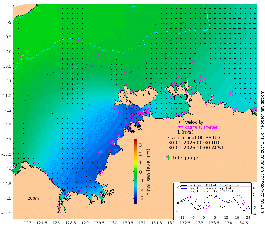 166cm/s -102T +4cm/s rms + 6cm/s 51T. Darwin_C1 52m 135cm/s -90T +4cm/s rms + 7cm/s -161T. Darwin_CW1 22m 77cm/s -106T +4cm/s rms + 8cm/s 61T. Darwin_CW2 34m 85cm/s -136T +3cm/s rms + 9cm/s 98T. Darwin_CW3 22m 121cm/s -90T +5cm/s rms + 7cm/s 88T. Darwin_C3 56m 99cm/s -115T +2cm/s rms + 9cm/s -126T. Darwin_CTbW 22m 5cm/s -115T +9cm/s rms + 2cm/s -110T. NWSLYN 196m 28cm/s -101T +1cm/s rms + 1cm/s -47T. DARBGF 30m 9cm/s 164T +7cm/s rms + 2cm/s -137T. ITFTIS 464m 5cm/s 178T +9cm/s rms + 1cm/s 74T. ITFMHB 146m 8cm/s 6T +4cm/s rms + 1cm/s -134T. ITFJBG 61m 2cm/s 164T +6cm/s rms + 4cm/s 121T. ITFFTB 108m 17cm/s -75T +4cm/s rms + 3cm/s 80T. NRSDAR 19m -57cm Carronade Island -56cm Guy Point -62cm Napier Broome Bay -134cm Lesueur Island -181cm Reveley Island -83cm Rocky Island -241cm Cape Domett -230cm Lacrosse Island -234cm Adolphus Island -187cm Pender Point -184cm Wyndham -89cm The Boxers -101cm Unnamed Shoal -18cm Loxton Shoal -249cm Pelican Island -68cm Calder Shoal -27cm Evans Shoal -253cm Quoin Island -254cm Port Keats -245cm Jones Point -257cm Catfish Island -200cm Cape Scott Offshore -245cm Cape Ford -218cm Anson Bay -45cm Goodrich Bank -201cm Peron Island North -211cm Point Jenny -208cm Native Point -216cm Fish Reef -224cm Tapa Bay -131cm Point Fawcett (Offshore) -242cm Burge Point -191cm Munkunuwa -194cm Beagle A -222cm Parsons Bank -236cm Fenton Patches -32cm Lynedoch Bank -224cm Hancox Shoal Area -237cm Nightcliff -247cm Darwin -234cm Charles Point Patches -200cm Glyde Point -170cm Chambers Bay -167cm Point Stuart -176cm Cape Hotham -166cm Christine Reef -174cm West Alligator Head -167cm East Field Island -154cm Two Hills Bay -167cm Newby Shoal -156cm Camp Point -213cm Medina Inlet South -106cm South Barlow Point -83cm St. Asaph Bay -49cm Cape Van Dieman -52cm Snake Bay -60cm Cache Point -3cm Echo Shoal -69cm Point Jahleel (Off) -113cm Cape Don -75cm Port Essington -76cm Smith Point - West -73cm NW Peacock Island -58cm North Of Jones Shoal -22cm Peacock Island -86cm Point David -78cm D'urville Point -70cm Money Shoal -86cm Copeland Island -119cm Cape Cockburn -86cm One Tree Point -116cm Hogmany Shoal -93cm New Year Island - West -95cm Grant Island -103cm Aurari Bay -124cm Cuthbert Point -107cm North Goulburn Island -129cm Paxie Shoal -137cm Entrance Island -144cm Yabooma Island