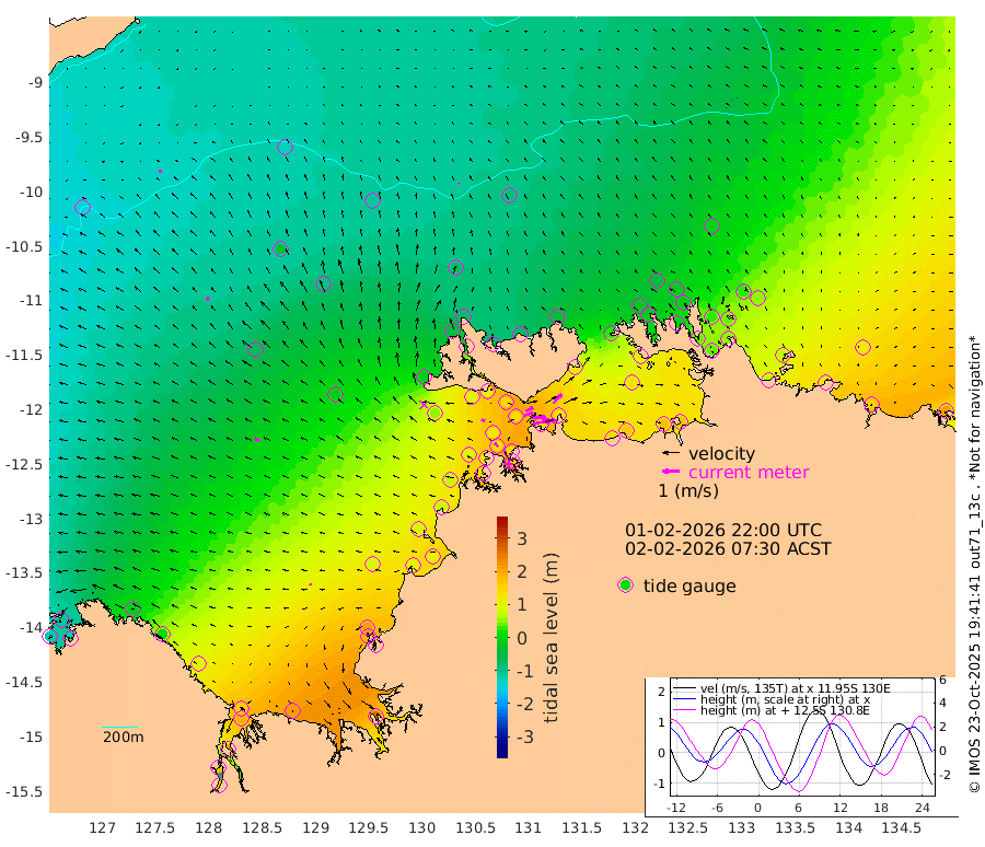106cm/s 80T +4cm/s rms + 6cm/s 51T. Darwin_C1 52m 88cm/s 92T +4cm/s rms + 7cm/s -161T. Darwin_CW1 22m 58cm/s 69T +4cm/s rms + 8cm/s 61T. Darwin_CW2 34m 76cm/s 42T +3cm/s rms + 9cm/s 98T. Darwin_CW3 22m 87cm/s 89T +5cm/s rms + 7cm/s 88T. Darwin_C3 56m 48cm/s 64T +2cm/s rms + 9cm/s -126T. Darwin_CTbW 22m 9cm/s -20T +9cm/s rms + 2cm/s -110T. NWSLYN 196m 21cm/s -73T +1cm/s rms + 1cm/s -47T. DARBGF 30m 12cm/s -87T +7cm/s rms + 2cm/s -137T. ITFTIS 464m 20cm/s -42T +9cm/s rms + 1cm/s 74T. ITFMHB 146m 15cm/s -86T +4cm/s rms + 1cm/s -134T. ITFJBG 61m 33cm/s -64T +6cm/s rms + 4cm/s 121T. ITFFTB 108m 33cm/s -50T +4cm/s rms + 3cm/s 80T. NRSDAR 19m -111cm Carronade Island -114cm Guy Point -124cm Napier Broome Bay -15cm Lesueur Island 97cm Reveley Island 1cm Rocky Island 182cm Cape Domett 154cm Lacrosse Island 210cm Adolphus Island 170cm Pender Point 162cm Wyndham -71cm The Boxers -42cm Unnamed Shoal -129cm Loxton Shoal 211cm Pelican Island -94cm Calder Shoal -103cm Evans Shoal 265cm Quoin Island 182cm Port Keats 191cm Jones Point 211cm Catfish Island 87cm Cape Scott Offshore 96cm Cape Ford 109cm Anson Bay -78cm Goodrich Bank 87cm Peron Island North 79cm Point Jenny 76cm Native Point 96cm Fish Reef 107cm Tapa Bay -19cm Point Fawcett (Offshore) 132cm Burge Point 93cm Munkunuwa 51cm Beagle A 140cm Parsons Bank 122cm Fenton Patches -80cm Lynedoch Bank 144cm Hancox Shoal Area 136cm Nightcliff 160cm Darwin 125cm Charles Point Patches 139cm Glyde Point 146cm Chambers Bay 158cm Point Stuart 135cm Cape Hotham 128cm Christine Reef 172cm West Alligator Head 179cm East Field Island 117cm Two Hills Bay -15cm Newby Shoal 117cm Camp Point 101cm Medina Inlet South -26cm South Barlow Point -56cm St. Asaph Bay -76cm Cape Van Dieman -71cm Snake Bay -69cm Cache Point -143cm Echo Shoal -40cm Point Jahleel (Off) 27cm Cape Don -17cm Port Essington -21cm Smith Point - West -17cm NW Peacock Island -46cm North Of Jones Shoal -12cm Peacock Island 34cm Point David -9cm D'urville Point -10cm Money Shoal 42cm Copeland Island 50cm Cape Cockburn 23cm One Tree Point 54cm Hogmany Shoal 27cm New Year Island - West 36cm Grant Island 75cm Aurari Bay 105cm Cuthbert Point 70cm North Goulburn Island 121cm Paxie Shoal 154cm Entrance Island 206cm Yabooma Island