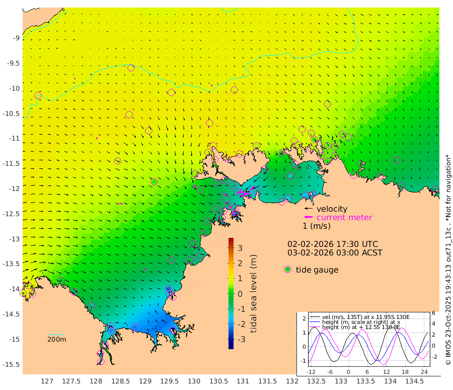 70cm/s -101T +4cm/s rms + 6cm/s 51T. Darwin_C1 52m 70cm/s -91T +4cm/s rms + 7cm/s -161T. Darwin_CW1 22m 42cm/s -108T +4cm/s rms + 8cm/s 61T. Darwin_CW2 34m 72cm/s -139T +3cm/s rms + 9cm/s 98T. Darwin_CW3 22m 82cm/s -91T +5cm/s rms + 7cm/s 88T. Darwin_C3 56m 22cm/s -114T +2cm/s rms + 9cm/s -126T. Darwin_CTbW 22m 16cm/s 150T +9cm/s rms + 2cm/s -110T. NWSLYN 196m 35cm/s 102T +1cm/s rms + 1cm/s -47T. DARBGF 30m 13cm/s 54T +7cm/s rms + 2cm/s -137T. ITFTIS 464m 14cm/s 94T +9cm/s rms + 1cm/s 74T. ITFMHB 146m 26cm/s 112T +4cm/s rms + 1cm/s -134T. ITFJBG 61m 37cm/s 111T +6cm/s rms + 4cm/s 121T. ITFFTB 108m 39cm/s 135T +4cm/s rms + 3cm/s 80T. NRSDAR 19m 58cm Carronade Island 56cm Guy Point 66cm Napier Broome Bay -8cm Lesueur Island -109cm Reveley Island -71cm Rocky Island -198cm Cape Domett -168cm Lacrosse Island -245cm Adolphus Island -236cm Pender Point -236cm Wyndham 74cm The Boxers 79cm Unnamed Shoal 106cm Loxton Shoal -204cm Pelican Island 87cm Calder Shoal 96cm Evans Shoal -301cm Quoin Island -155cm Port Keats -156cm Jones Point -220cm Catfish Island -55cm Cape Scott Offshore -41cm Cape Ford -58cm Anson Bay 91cm Goodrich Bank -44cm Peron Island North -37cm Point Jenny -34cm Native Point -50cm Fish Reef -59cm Tapa Bay 50cm Point Fawcett (Offshore) -84cm Burge Point -55cm Munkunuwa -19cm Beagle A -84cm Parsons Bank -81cm Fenton Patches 89cm Lynedoch Bank -93cm Hancox Shoal Area -91cm Nightcliff -102cm Darwin -65cm Charles Point Patches -103cm Glyde Point -135cm Chambers Bay -145cm Point Stuart -103cm Cape Hotham -121cm Christine Reef -168cm West Alligator Head -185cm East Field Island -95cm Two Hills Bay 31cm Newby Shoal -92cm Camp Point -55cm Medina Inlet South 56cm South Barlow Point 74cm St. Asaph Bay 94cm Cape Van Dieman 93cm Snake Bay 88cm Cache Point 109cm Echo Shoal 60cm Point Jahleel (Off) 11cm Cape Don 61cm Port Essington 59cm Smith Point - West 60cm NW Peacock Island 80cm North Of Jones Shoal 27cm Peacock Island 39cm Point David 58cm D'urville Point 65cm Money Shoal 32cm Copeland Island 41cm Cape Cockburn 44cm One Tree Point 37cm Hogmany Shoal 41cm New Year Island - West 34cm Grant Island 7cm Aurari Bay -14cm Cuthbert Point 13cm North Goulburn Island -23cm Paxie Shoal -58cm Entrance Island -92cm Yabooma Island