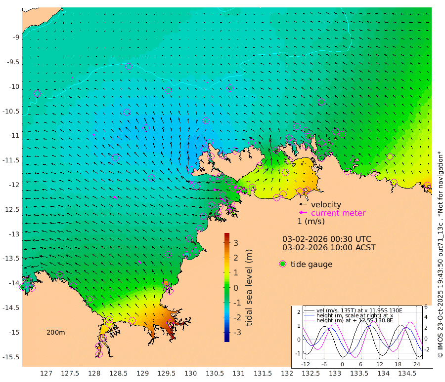62cm/s -104T +4cm/s rms + 6cm/s 51T. Darwin_C1 52m 28cm/s -81T +4cm/s rms + 7cm/s -161T. Darwin_CW1 22m 33cm/s -107T +4cm/s rms + 8cm/s 61T. Darwin_CW2 34m 11cm/s -31T +3cm/s rms + 9cm/s 98T. Darwin_CW3 22m 24cm/s -95T +5cm/s rms + 7cm/s 88T. Darwin_C3 56m 44cm/s -116T +2cm/s rms + 9cm/s -126T. Darwin_CTbW 22m 13cm/s -32T +9cm/s rms + 2cm/s -110T. NWSLYN 196m 78cm/s -87T +1cm/s rms + 1cm/s -47T. DARBGF 30m 15cm/s -113T +7cm/s rms + 2cm/s -137T. ITFTIS 464m 24cm/s -42T +9cm/s rms + 1cm/s 74T. ITFMHB 146m 46cm/s -39T +4cm/s rms + 1cm/s -134T. ITFJBG 61m 57cm/s -57T +6cm/s rms + 4cm/s 121T. ITFFTB 108m 82cm/s -55T +4cm/s rms + 3cm/s 80T. NRSDAR 19m -41cm Carronade Island -36cm Guy Point -52cm Napier Broome Bay -27cm Lesueur Island 28cm Reveley Island -19cm Rocky Island 99cm Cape Domett 73cm Lacrosse Island 175cm Adolphus Island 221cm Pender Point 254cm Wyndham -130cm The Boxers -137cm Unnamed Shoal -130cm Loxton Shoal 97cm Pelican Island -146cm Calder Shoal -124cm Evans Shoal 242cm Quoin Island 18cm Port Keats 28cm Jones Point 215cm Catfish Island -72cm Cape Scott Offshore -134cm Cape Ford -79cm Anson Bay -127cm Goodrich Bank -85cm Peron Island North -103cm Point Jenny -106cm Native Point -95cm Fish Reef -89cm Tapa Bay -150cm Point Fawcett (Offshore) -69cm Burge Point -99cm Munkunuwa -118cm Beagle A -53cm Parsons Bank -71cm Fenton Patches -110cm Lynedoch Bank -32cm Hancox Shoal Area -56cm Nightcliff -43cm Darwin -74cm Charles Point Patches 22cm Glyde Point 112cm Chambers Bay 136cm Point Stuart 52cm Cape Hotham 96cm Christine Reef 160cm West Alligator Head 201cm East Field Island 70cm Two Hills Bay -134cm Newby Shoal 65cm Camp Point -92cm Medina Inlet South -145cm South Barlow Point -148cm St. Asaph Bay -133cm Cape Van Dieman -133cm Snake Bay -123cm Cache Point -119cm Echo Shoal -96cm Point Jahleel (Off) -46cm Cape Don -83cm Port Essington -86cm Smith Point - West -76cm NW Peacock Island -96cm North Of Jones Shoal -31cm Peacock Island -33cm Point David -76cm D'urville Point -63cm Money Shoal -23cm Copeland Island -34cm Cape Cockburn -42cm One Tree Point -19cm Hogmany Shoal -38cm New Year Island - West -30cm Grant Island 6cm Aurari Bay 39cm Cuthbert Point 0cm North Goulburn Island 57cm Paxie Shoal 97cm Entrance Island 161cm Yabooma Island