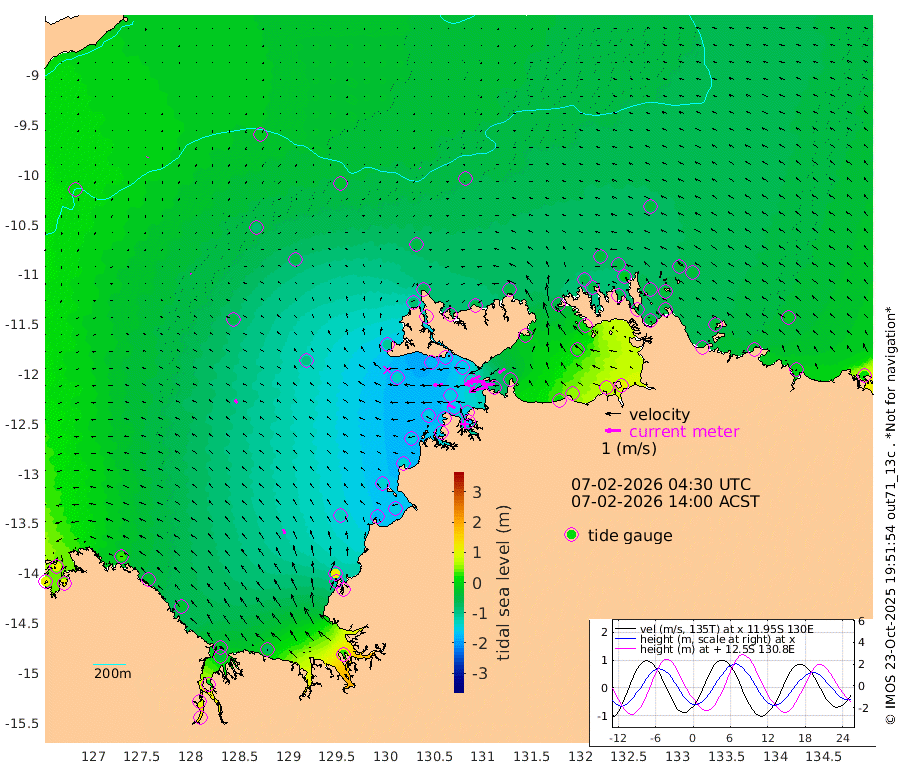 125cm/s -103T +4cm/s rms + 6cm/s 51T. Darwin_C1 52m 90cm/s -89T +4cm/s rms + 7cm/s -161T. Darwin_CW1 22m 96cm/s -109T +4cm/s rms + 8cm/s 61T. Darwin_CW2 34m 46cm/s -120T +3cm/s rms + 9cm/s 98T. Darwin_CW3 22m 117cm/s -92T +5cm/s rms + 7cm/s 88T. Darwin_C3 56m 70cm/s -116T +2cm/s rms + 9cm/s -126T. Darwin_CTbW 22m 4cm/s -37T +9cm/s rms + 2cm/s -110T. NWSLYN 196m 61cm/s -91T +1cm/s rms + 1cm/s -47T. DARBGF 30m 6cm/s -147T +7cm/s rms + 2cm/s -137T. ITFTIS 464m 5cm/s -30T +9cm/s rms + 1cm/s 74T. ITFMHB 146m 35cm/s -23T +4cm/s rms + 1cm/s -134T. ITFJBG 61m 25cm/s -45T +6cm/s rms + 4cm/s 121T. ITFFTB 108m 52cm/s -63T +4cm/s rms + 3cm/s 80T. NRSDAR 19m 107cm Carronade Island 112cm Guy Point 105cm Napier Broome Bay 28cm Lesueur Island -32cm Reveley Island -33cm Rocky Island -38cm Cape Domett -29cm Lacrosse Island 3cm Adolphus Island 93cm Pender Point 144cm Wyndham -52cm The Boxers -80cm Unnamed Shoal -16cm Loxton Shoal -69cm Pelican Island -51cm Calder Shoal -27cm Evans Shoal 23cm Quoin Island -123cm Port Keats -114cm Jones Point 106cm Catfish Island -127cm Cape Scott Offshore -171cm Cape Ford -155cm Anson Bay -53cm Goodrich Bank -137cm Peron Island North -144cm Point Jenny -149cm Native Point -149cm Fish Reef -161cm Tapa Bay -110cm Point Fawcett (Offshore) -157cm Burge Point -170cm Munkunuwa -132cm Beagle A -160cm Parsons Bank -150cm Fenton Patches -38cm Lynedoch Bank -141cm Hancox Shoal Area -154cm Nightcliff -167cm Darwin -167cm Charles Point Patches -70cm Glyde Point 22cm Chambers Bay 46cm Point Stuart -29cm Cape Hotham 23cm Christine Reef 61cm West Alligator Head 102cm East Field Island 6cm Two Hills Bay -91cm Newby Shoal -4cm Camp Point -164cm Medina Inlet South -115cm South Barlow Point -89cm St. Asaph Bay -60cm Cape Van Dieman -69cm Snake Bay -49cm Cache Point 16cm Echo Shoal -48cm Point Jahleel (Off) -49cm Cape Don -55cm Port Essington -55cm Smith Point - West -49cm NW Peacock Island -44cm North Of Jones Shoal -16cm Peacock Island -47cm Point David -55cm D'urville Point -40cm Money Shoal -43cm Copeland Island -50cm Cape Cockburn -45cm One Tree Point -39cm Hogmany Shoal -43cm New Year Island - West -44cm Grant Island -37cm Aurari Bay -26cm Cuthbert Point -39cm North Goulburn Island -18cm Paxie Shoal -9cm Entrance Island 18cm Yabooma Island