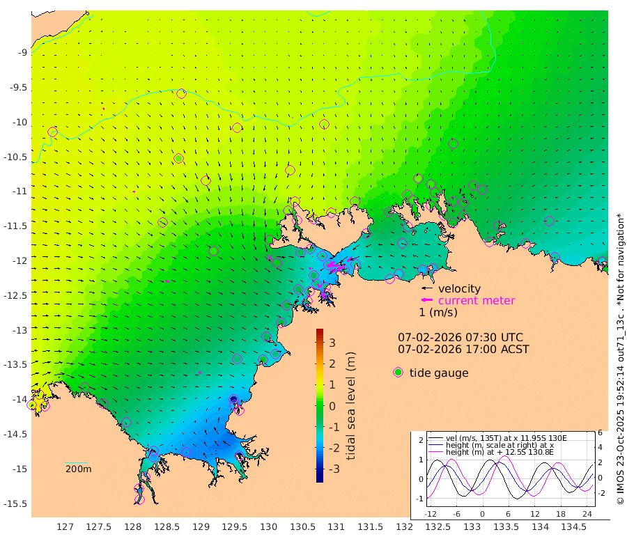 90cm/s -100T +4cm/s rms + 6cm/s 51T. Darwin_C1 52m 63cm/s -92T +4cm/s rms + 7cm/s -161T. Darwin_CW1 22m 50cm/s -106T +4cm/s rms + 8cm/s 61T. Darwin_CW2 34m 59cm/s -135T +3cm/s rms + 9cm/s 98T. Darwin_CW3 22m 103cm/s -91T +5cm/s rms + 7cm/s 88T. Darwin_C3 56m 42cm/s -116T +2cm/s rms + 9cm/s -126T. Darwin_CTbW 22m 4cm/s 149T +9cm/s rms + 2cm/s -110T. NWSLYN 196m 24cm/s 107T +1cm/s rms + 1cm/s -47T. DARBGF 30m 10cm/s 79T +7cm/s rms + 2cm/s -137T. ITFTIS 464m 15cm/s 121T +9cm/s rms + 1cm/s 74T. ITFMHB 146m 23cm/s 115T +4cm/s rms + 1cm/s -134T. ITFJBG 61m 34cm/s 113T +6cm/s rms + 4cm/s 121T. ITFFTB 108m 32cm/s 138T +4cm/s rms + 3cm/s 80T. NRSDAR 19m 71cm Carronade Island 70cm Guy Point 68cm Napier Broome Bay -1cm Lesueur Island -104cm Reveley Island -53cm Rocky Island -184cm Cape Domett -154cm Lacrosse Island -209cm Adolphus Island -212cm Pender Point -209cm Wyndham 52cm The Boxers 35cm Unnamed Shoal 92cm Loxton Shoal -202cm Pelican Island 73cm Calder Shoal 76cm Evans Shoal -293cm Quoin Island -149cm Port Keats -160cm Jones Point -295cm Catfish Island -80cm Cape Scott Offshore -15cm Cape Ford -91cm Anson Bay 69cm Goodrich Bank -70cm Peron Island North -49cm Point Jenny -47cm Native Point -65cm Fish Reef -76cm Tapa Bay 19cm Point Fawcett (Offshore) -84cm Burge Point -69cm Munkunuwa -13cm Beagle A -103cm Parsons Bank -70cm Fenton Patches 64cm Lynedoch Bank -107cm Hancox Shoal Area -94cm Nightcliff -123cm Darwin -91cm Charles Point Patches -113cm Glyde Point -138cm Chambers Bay -151cm Point Stuart -113cm Cape Hotham -113cm Christine Reef -170cm West Alligator Head -174cm East Field Island -112cm Two Hills Bay 32cm Newby Shoal -98cm Camp Point -77cm Medina Inlet South 31cm South Barlow Point 53cm St. Asaph Bay 68cm Cape Van Dieman 61cm Snake Bay 62cm Cache Point 104cm Echo Shoal 36cm Point Jahleel (Off) -23cm Cape Don 20cm Port Essington 25cm Smith Point - West 23cm NW Peacock Island 41cm North Of Jones Shoal 12cm Peacock Island -16cm Point David 18cm D'urville Point 22cm Money Shoal -21cm Copeland Island -23cm Cape Cockburn -11cm One Tree Point -34cm Hogmany Shoal -10cm New Year Island - West -19cm Grant Island -46cm Aurari Bay -74cm Cuthbert Point -45cm North Goulburn Island -93cm Paxie Shoal -114cm Entrance Island -151cm Yabooma Island